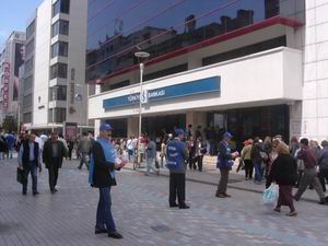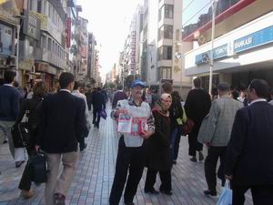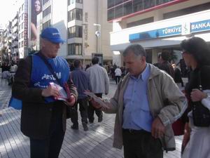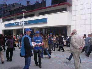 Petkim’in Halka arzına karşı İzmir Karşıyaka Çarşı girişinde, Petrol iş Sendikası Aliağa Şubesi Yönetici ve temsilcileri Geleceğimizi Satan Kim? başlıklı bildirileri dağıttılar.