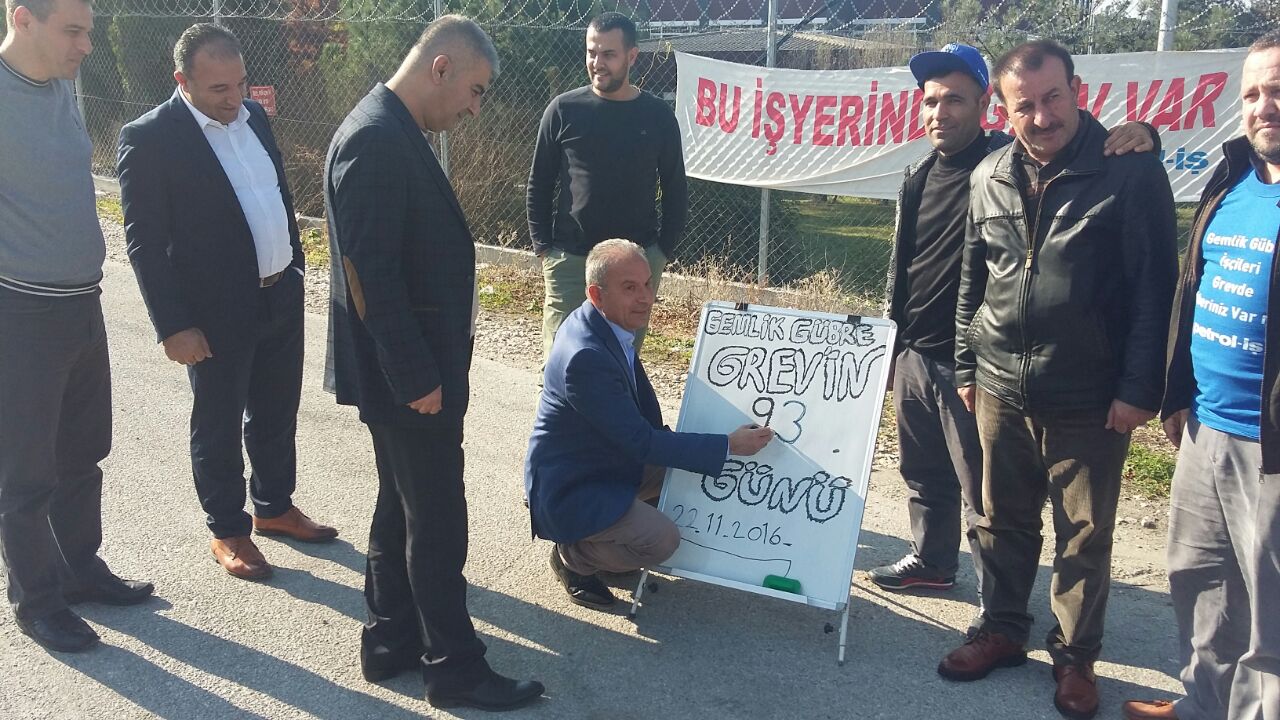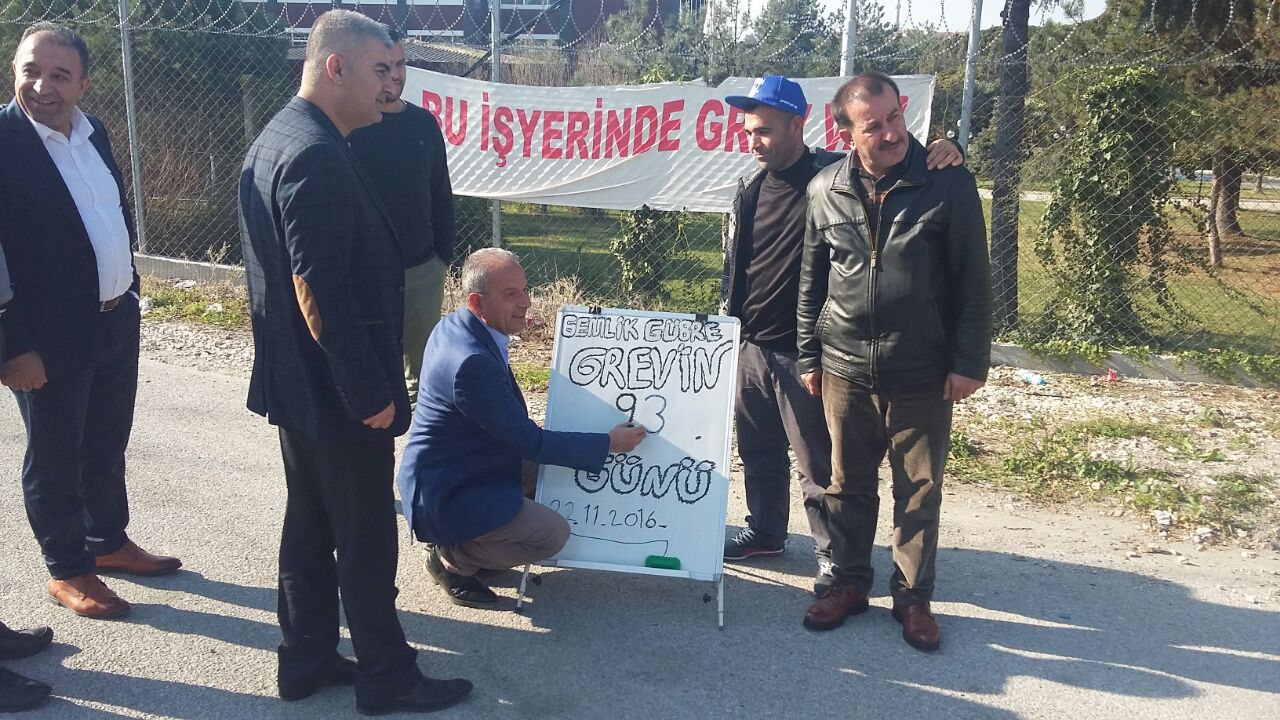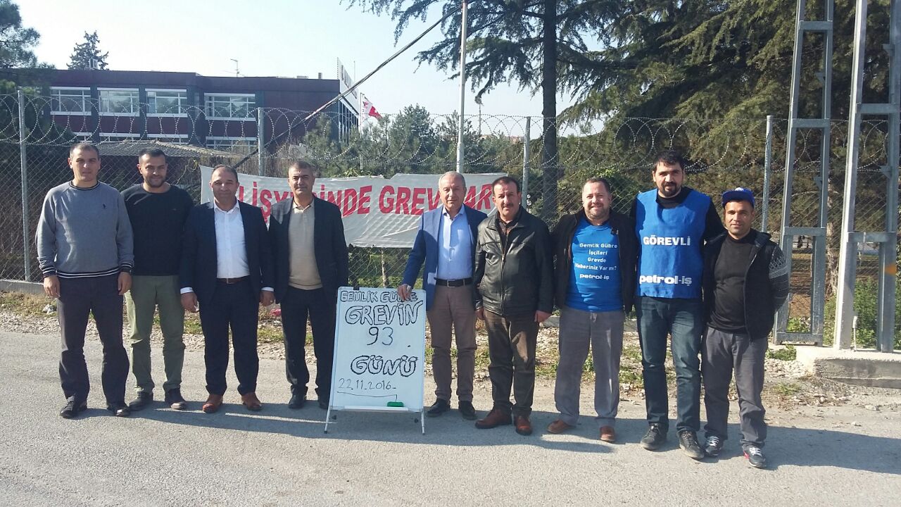 Genel Sekreterimiz Ahmet Kabaca ve Genel Örgütlenme ve Eğitim Sekreterimiz Mustafa Mesut Tekik 22 Kasım Salı günü, Bursa Şubemizin örgütlü olduğu Gemlik Gübre San. A.Ş. işyerinde toplu iş sözleşmesindeki yaşanan anlaşmazlıktan dolayı greve çıkan üyelerimizi ziyaret etti. Kabaca ve Tekik grevdeki üyelerimizin sorunlarını dinlediler.