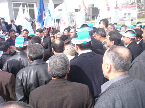 Tüpraş özelleştirmesine ilişkin Batman’ı ziyaret eden Sendikamız Genel Başkanı Sn. Mustafa ÖZTAŞKIN, şehir dışında yaklaşık 150 araçlık bir konvoyla karşılandı. Petrol-İş bayraklarıyla şehir turu atıldıktan sonra Tüpraş Batman Rafineri önünde basın açıklaması yapıldı. Basın açıklaması sırasında söz alan Batman Şube Başkanı Sn. Nimetullah SÖZEN; Genel Başkanın Batman’da bulunmasından dolayı memnuniyetlerini dile getirerek şöyle devam etti , “Tupraş özelleştirmesi ile ilgili demokratik eylemlerimiz devam edecektir. Yargı kararlarının muhakkak uygulanması gerekmektedir.”