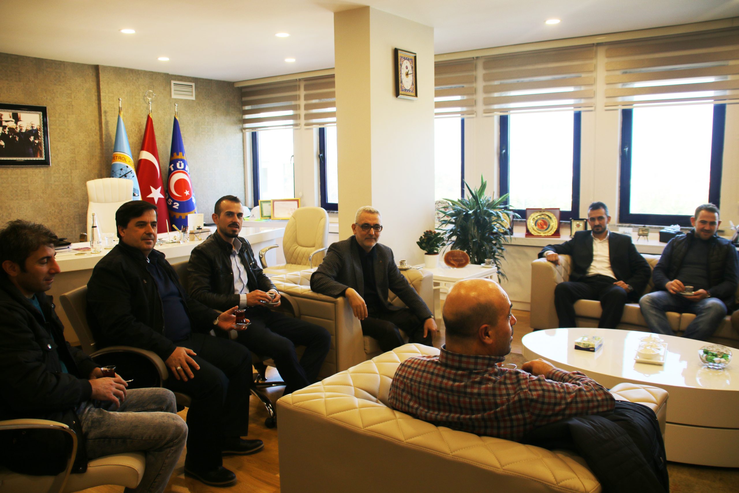 17 Kasım Perşembe günü Kocaeli Şube Başkanımız Salih Akduman , Başkan Yardımcılarımız Nesimi Yetişoğlu ve Tekin Kara ve Kocaeli Şubemizin örgütlü olduğu Gübretaş, Ege Kimya ve Ege Sil Kimya işyeri temsilcilerinden oluşan heyet Genel Başkanımız Ali Ufuk Yaşar’ı makamında ziyaret ettiler. Genel Başkanımız bu nezaket dolu ziyaretlerinden dolayı heyete teşekkürlerini iletti.