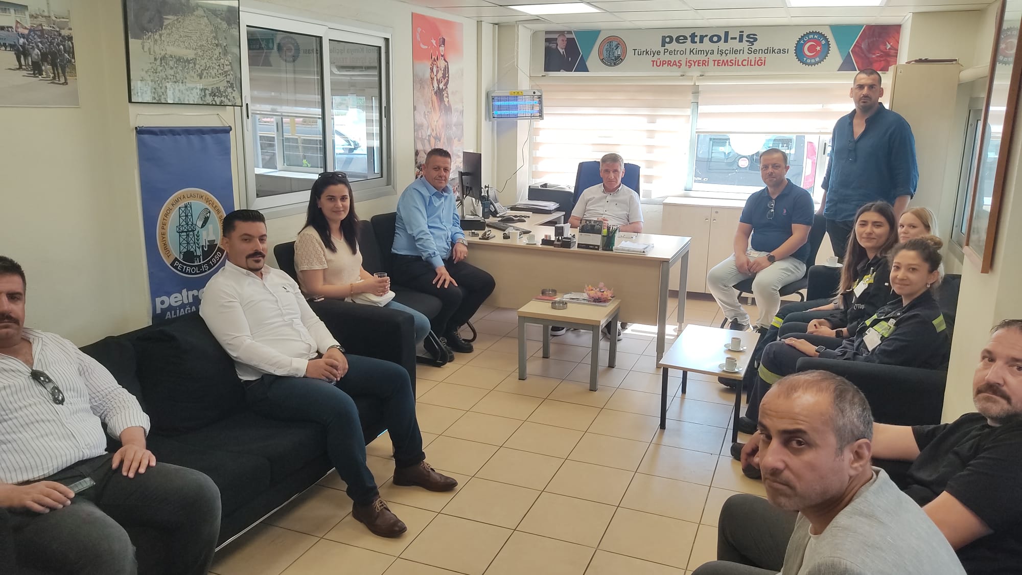 Genel Başkan Akyüz’ün son ziyareti Tüpraş İzmir Rafinerisi’ne oldu. Burada Tüpraş Bakım Grubunda çalışan üyelerimizle bir araya gelen Akyüz, 2025 yılında başlayacak olan sözleşme görüşmeleri başta olmak üzere güncel gelişmeler ile ilgili üyelerimizle değerlendirme yapma fırsatı buldu. Ardında Tüpraş İzmir Rafinerisi Fabrika Müdürü Volkan Demirtaş ve İnsan Kaynakları Müdürü Ersin Ulusoy ile toplantı yapıldı.