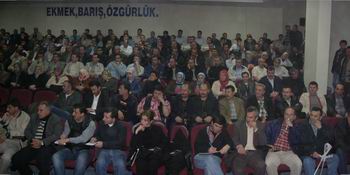 Genel Başkanımız Mustafa Öztaşkın ve Genel Sekreterimiz Mustafa Çavdar 10 Nisan 2006 günü Aliağa’da idi. Öğle paydosunda Tüpraş Bakım Müdürlüğü Atölyesinde işçi arkadaşlarımıza hitaben bir konuşma yapan Öztaşkın, “Sendika olarak bugüne kadar çok önemli bir mücadeleyi hep beraber verdik. Bunda emeği geçen herkese, özellikle de Aliağa işçilerine teşekkür ediyorum, kutluyorum. Bundan sonra da yine hep beraber, sonuna kadar sürdüreceğiz bu mücadeleyi. Bu mücadele artık sadece Petrol-İş’in mücadelesi olmaktan çıkmıştır. Hukukun üstünlüğü ilkesine inanan, ülkesini seven herkese görev düşüyor. Ayrıca Tüpraş işverenini, Aliağa işçisine uyguladığı baskıcı tavır nedeniyle kınıyorum. 27 Mart 2006 günü yapılan eylem, tüm şubelerimizle ortaklaşa aldığımız karar gereğince ve yine tüm rafinerilerde birlikte hayata geçirdiğimiz bir eylemdir. Aliağa işçileri buna tam olarak uymuştur. Bu nedenle de kimse Aliağa işçisine bir eleştiri de bulunamaz, farklı muameleye tabi tutamaz. Tüpraş işverenini buradaki sendikal örgütlülüğe saygılı olmaya davet ediyorum. BM sözleşmesinin altına imza atmakla olmuyor, pratik hayatın içinde demokrasi ve hukuk kurallarına uyduğunuzu gösterin. Gerekirse bu konuda da uluslararası kurumlar düzeyinde de girişimlerde bulunacağız.; bu hafta sonuna kadar hazırlıklarımızı tamamlayıp, Avrupa İnsan Hakları Mahkemesine kurumsal başvuruda bulunacağız, ardından da sizin onayınızla kişisel başvurularda da bulunmayı planlıyoruz. Hiç merak etmeyin, bu işin peşini bırakmayacağız, ne gerekiyorsa yapıp TÜPRAŞ’I tekrar kamuya döndüreceğiz” dedi. Saat 17.30’da başlayan ve saat 21.00’e kadar süren “Petkim’deki geçici işçilerin ve yeni işe girenlerin sorunları ile Tüpraş’taki son gelişmeler” konulu Şube Konferans Salonunda, Petkim ve Tüpraş işçilerinin yoğun katılımı ile yapılan toplantıda üyelerin sorularını yanıtlayan Genel Başkanımız ve Genel Sekreterimiz aynı akşam aramızdan ayrıldı.