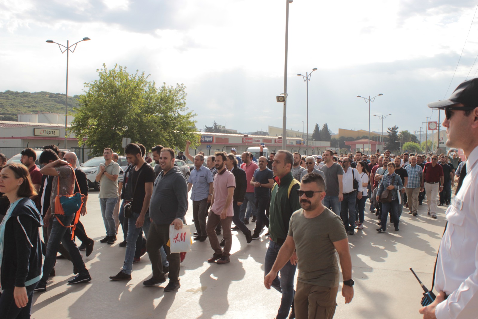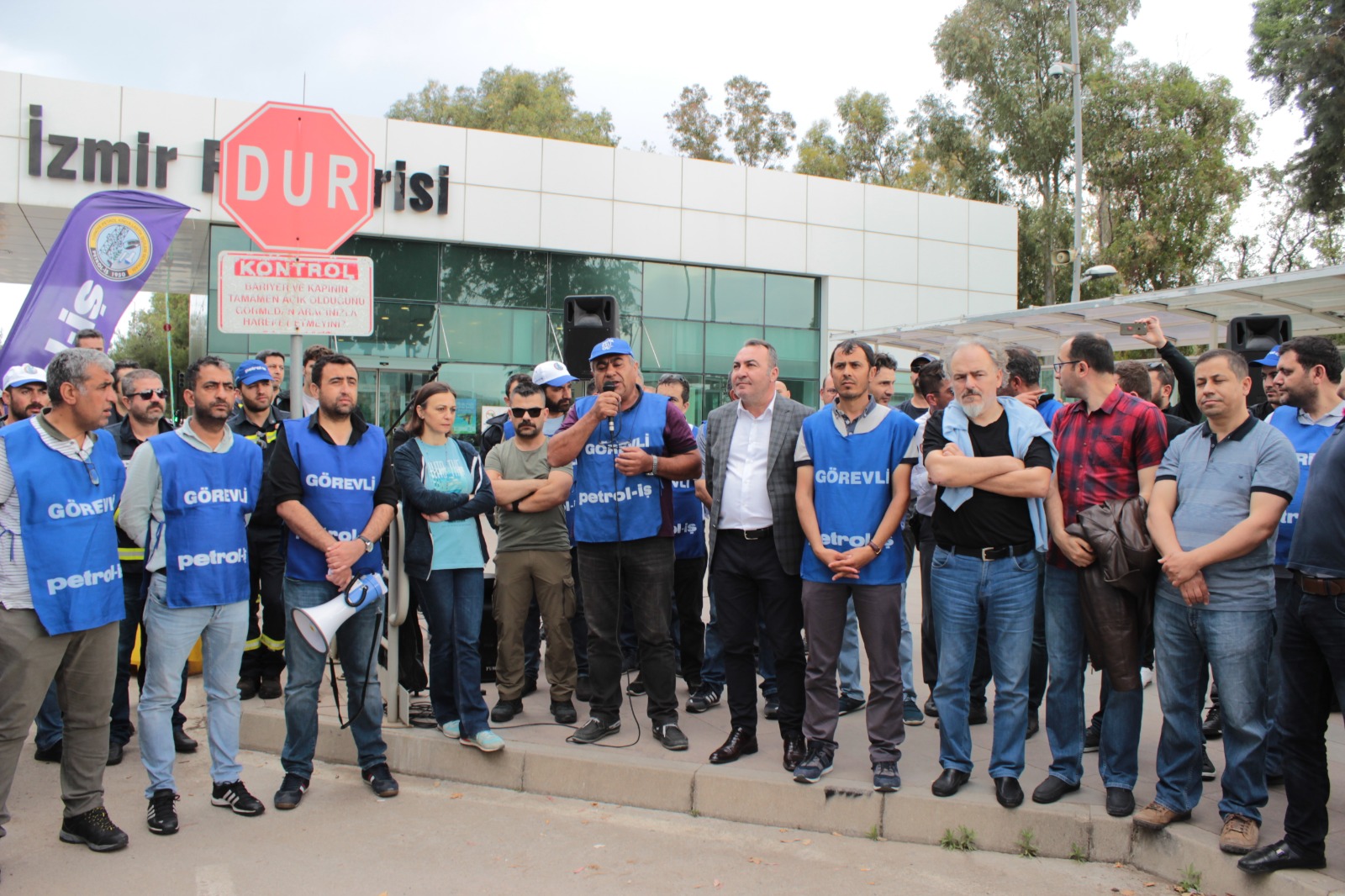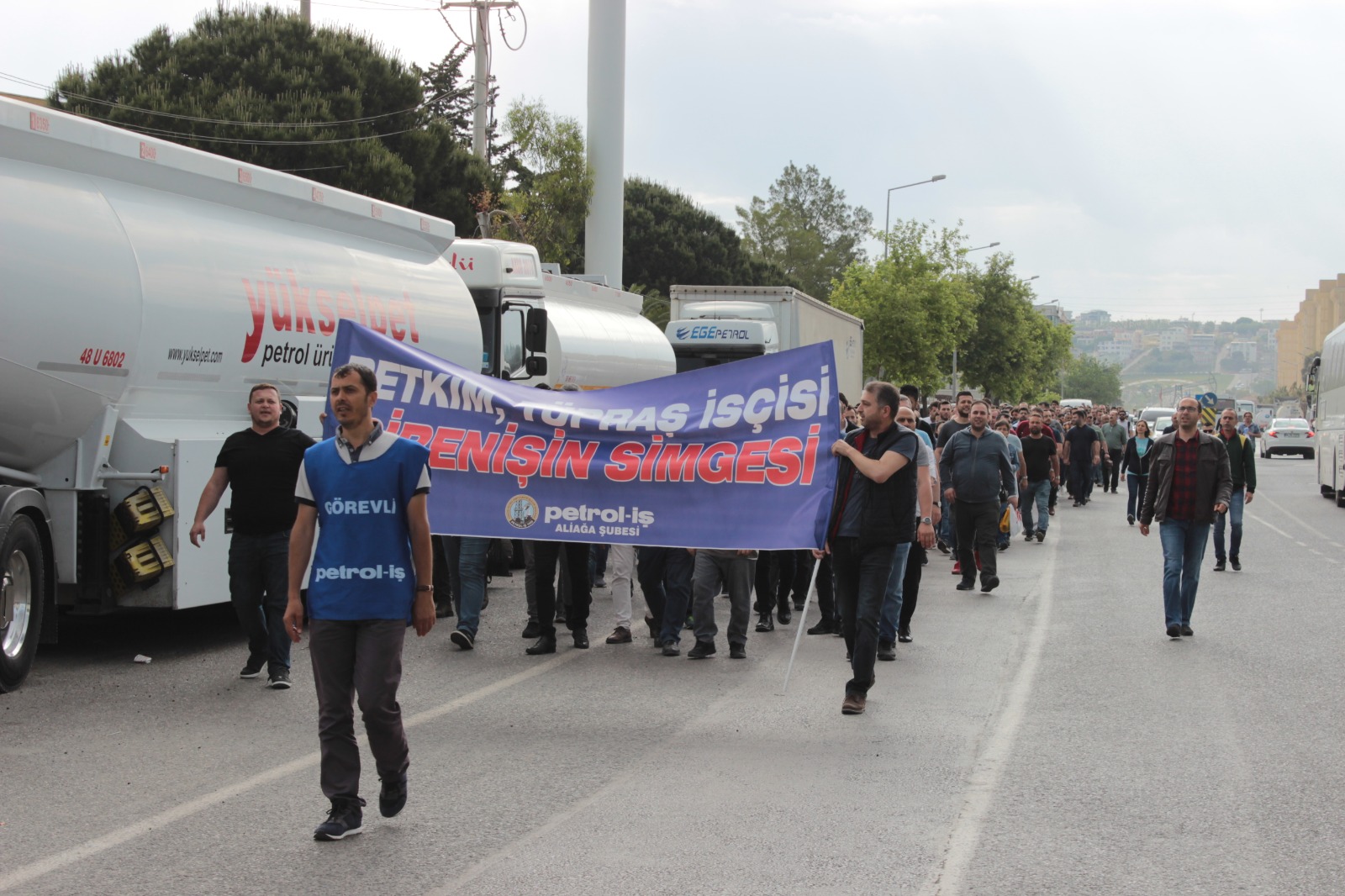 Tüpraş işçisinin yaklaşık bir aydır sürdürdüğü eylemler bugün de devam etti. Bu sabah Tüpraş işçisinin ziyaretine Petkim işçileri de katılarak eylemlerine güç kattılar. Şube Başkanımız Ahmet Oktay, üyelerimize dönük yaptığı konuşmasına, Tüpraş işçisine destek ziyaretinde bulunan PETKİM işçisini selamlayarak başladı. Şube Başkanımız Petkim işçisine verdikleri coşkulu destekten dolayı teşekkür ederek dün yapmış olduğu konuşmayı hatırlattı. Tüpraş Genel Müdürü İbrahim Yelmenoğluna tekrar çağrıda bulunan Şube Başkanımız “değerli arkadaşlar dün de yaptığım konuşmamda değindim. Tüpraş Genel Müdürü İbrahim Yelmenoğlu yayınladığı bildiride üyelerimize yönelik ‘sendikanız sizi yanlış yönlendiriyor’ demiş. Biz hep aynı şeffaflıkla işçimizden hiçbir şey saklamadan bugüne kadar tüm müzakerelerimizi yürüttük. Buradan Yelmenoğluna tekrar sesleniyorum, buyurun 4300 üyemizin gözü önünde müzakerelerimizi yürütelim. Biz hazırız.” diye çağrıda bulundu.