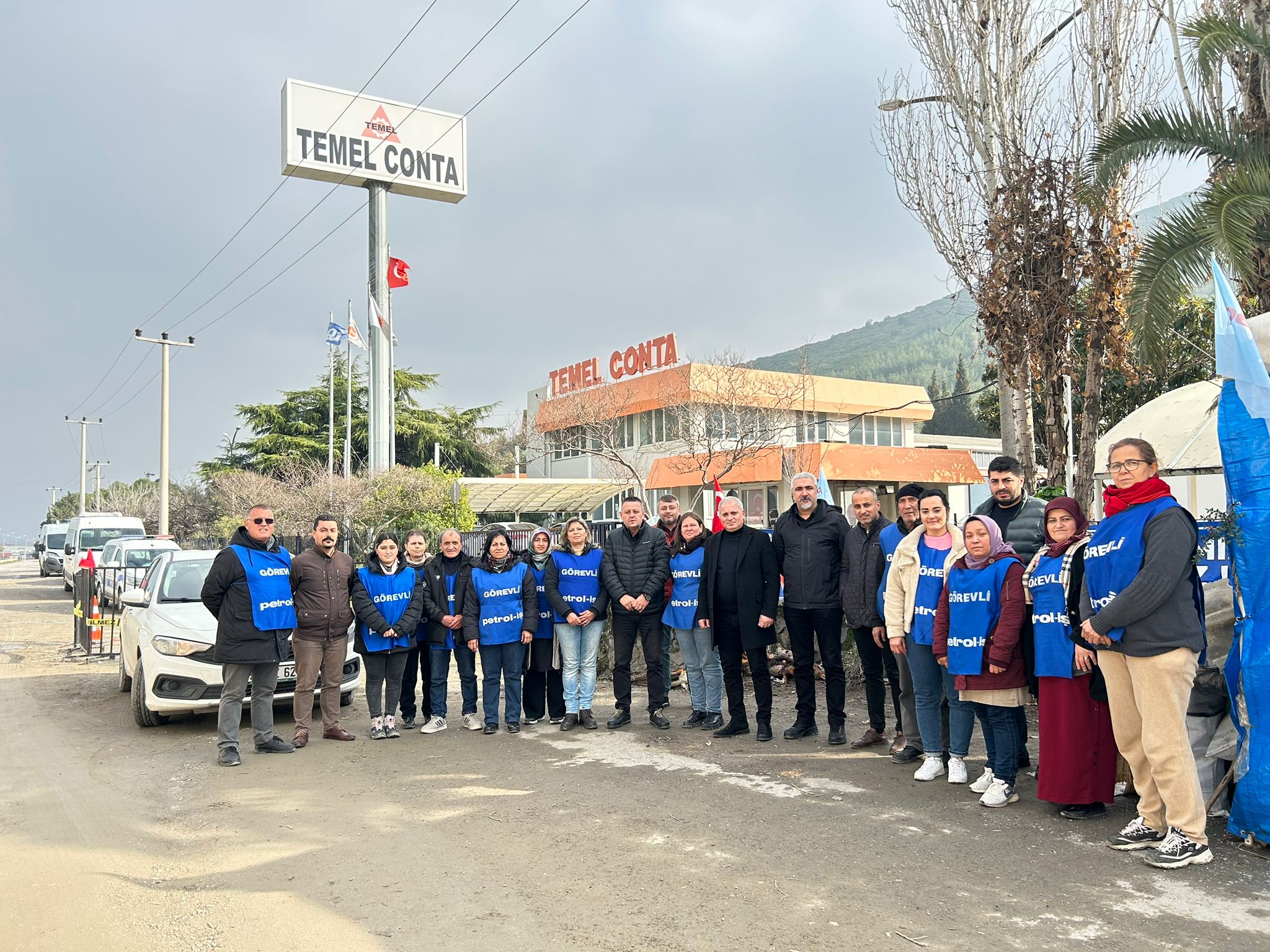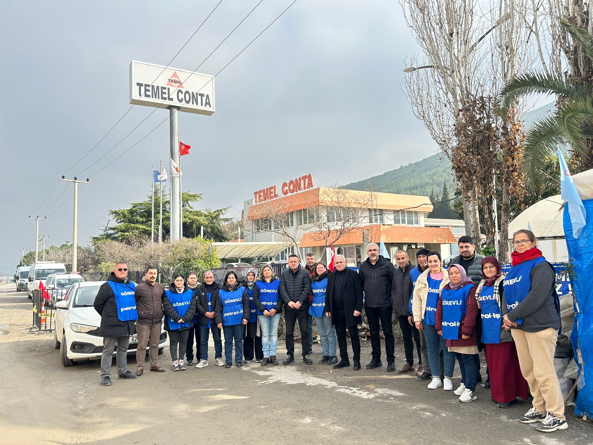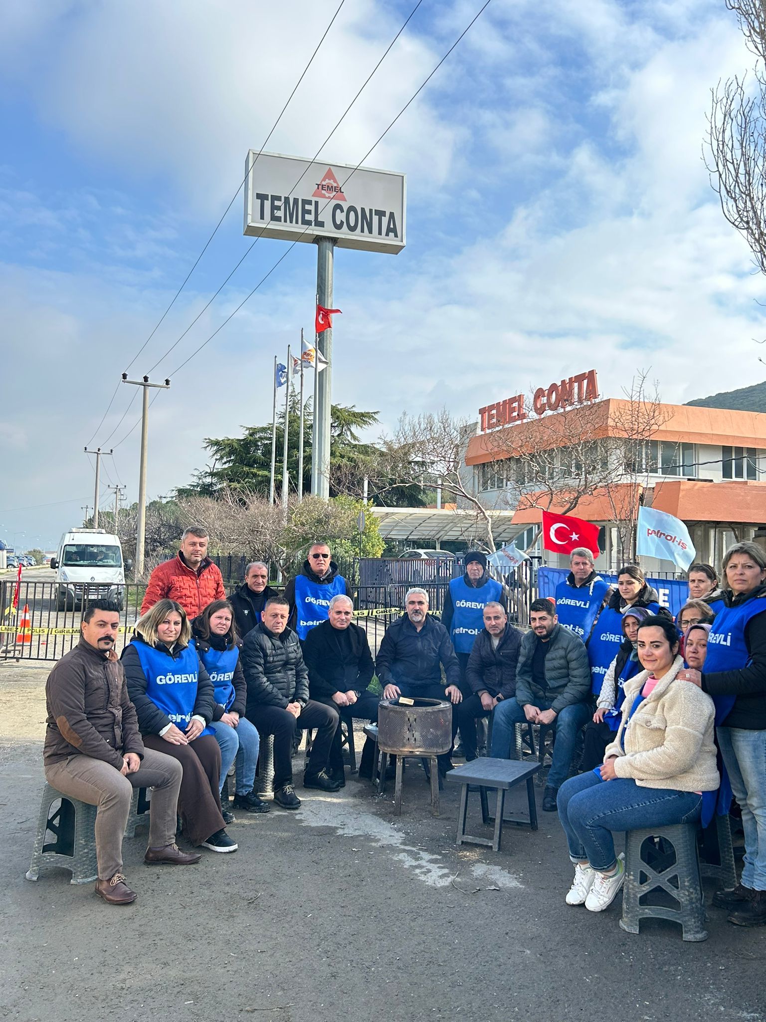 Temel Conta Grevimiz bugün 38. Günü geride bırakıyor. Sendikamız bütün örgütüyle grev alanına dayanışma ziyareti gerçekleştirerek üyelerimizle dayanışma içerisinde. 16 Ocak Perşembe günü sendikamız Genel Mali Sekreteri Mehmet Kaya, Disiplin Kurulu Başkanımız Ziya Selvi ve Gebze Şube Başkanımız Şivan Kırmızıçiçek grev alanı ziyaret ederek üyelerimiz ve Aliağa Şube Yöneticilerimizle bir araya geldi. Grev alanında yapılan konuşmalarda grevimizin başarıyla sonuçlanması için mücadelenin, dayanışmanın, kararlılığımızın ve inancımızın artarak devam ettiğini ve haklı davamızın zaferle sonuçlanana kadar devam edeceğinin mesajı verildi. Grev ziyareti başarı dileğiyle sona erdi.