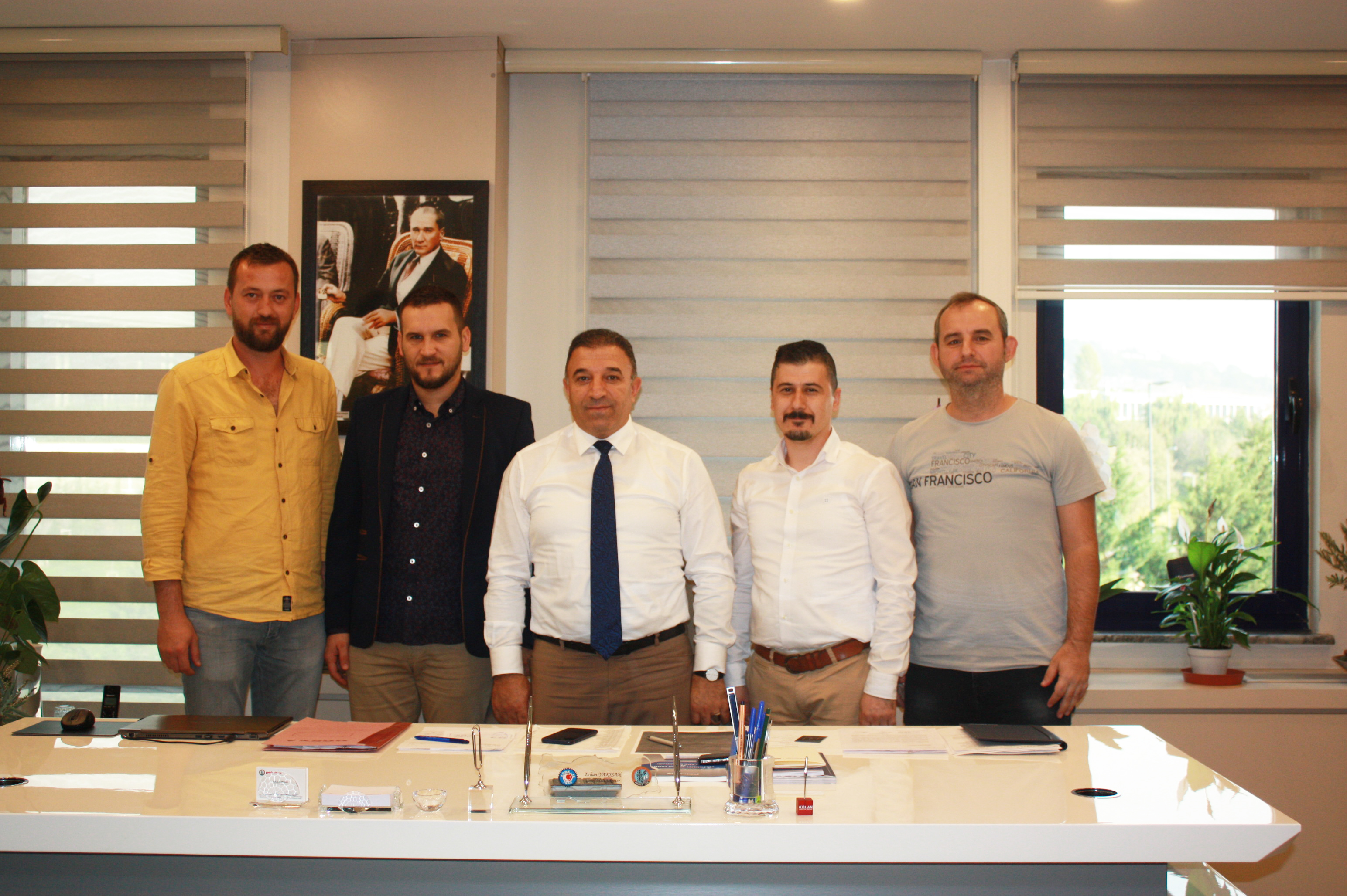 Bursa Şubemizin örgütlü olduğu Faurecia Polifleks A.Ş. İşyeri Baştemsilcisi Murat Akdağ, İşyeri Temsilcileri Abdullah Şengüzel, Selçuk Kayrak ve Serkan Demirhan, 18 Ekim Cuma günü sendikamıza gelerek, Genel Mali Sekreterimiz Erhan Yakışan’a bir hayırlı olsun ziyareti gerçekleştirdiler. Genel Mali Sekreterimiz Erhan Yakışan da Faurecia işyerinde çalışan temsilcilerimize, temennilerinden dolayı teşekkürlerini iletti.