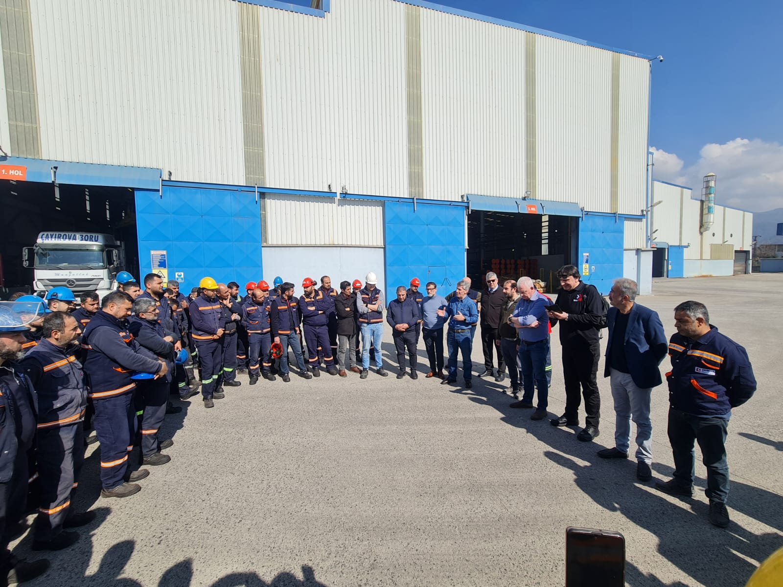 22 Şubat Çarşamba günü sendikamız Genel Başkanı Süleyman Akyüz, Genel Sekreteri Salih Akduman, Genel Mali Sekreteri Erhan Yakışan ve Genel Yönetim Sekreteri Ünal Akbulut, örgütlü olduğumuz BOTAŞ Dörtyol işyeri ziyaretinin ardından yine bölgede kurulu örgütlü işyerlerinde çalışan işçilerle bir araya geldiler. IndustriALL Küresel Sendika Genel Sekreter Yardımcısı Kemal Özkan ve IndustriALL Avrupa Genel Sekreteri Luc Triangle ile ortak yapılan bu ziyaretlerde işçi sınıfının deprem sonrası yaşadıkları sorunlar tartışıldı, ortak atılması gereken adımlar üzerine fikir alışverişinde bulunuldu.