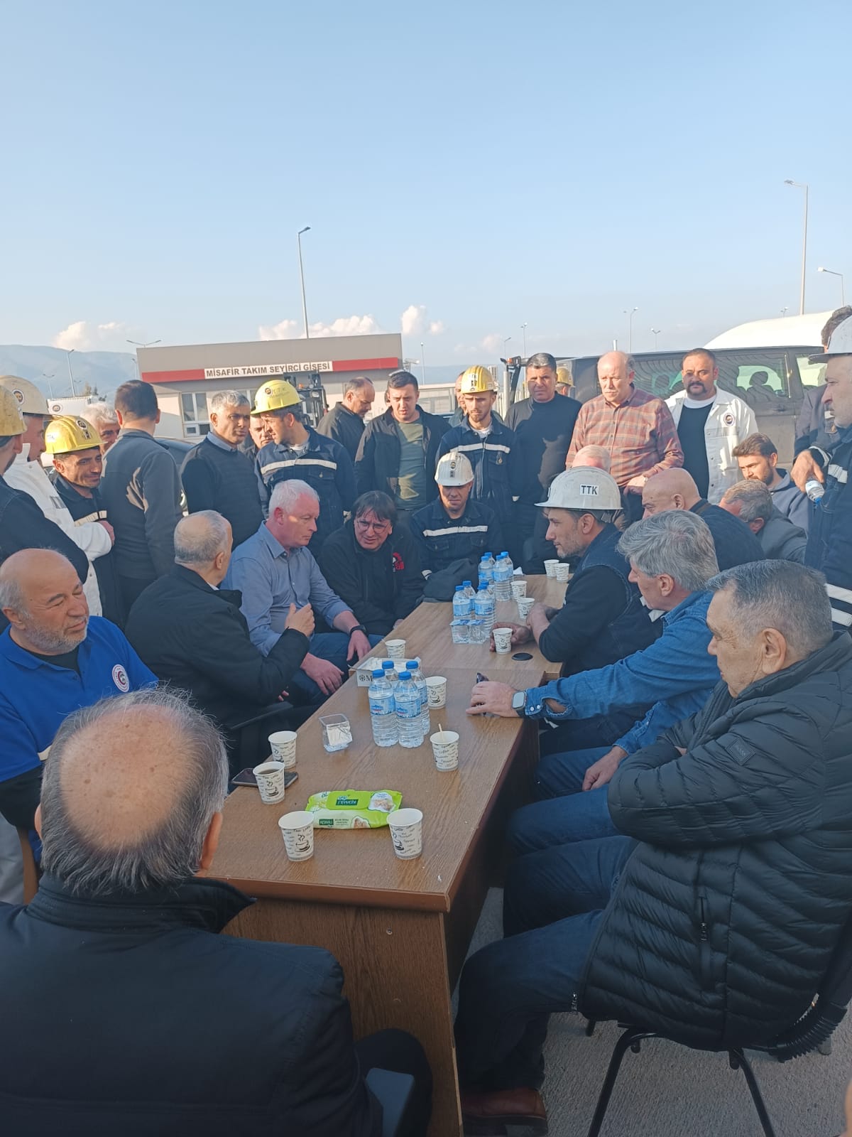 Petrol-İş ve IndustriALL Heyeti işyeri ziyaretleri sonrasında ise Hatay’da afet merkezi haline çevrilen stadyumda Türk-İş Genel Başkanı Ergün Atalay ve Türk-İş Mali Sekreteri Ramazan Ağar ile bir araya gelerek Türk-İş Bölge ve İl Temsilcilerinin koordinasyonunda oluşturulan Türk-İş Kriz Masası çalışmalarına ilişkin değerlendirmelerde bulunup, bölgedeki gelişmeler değerlendirdiler.