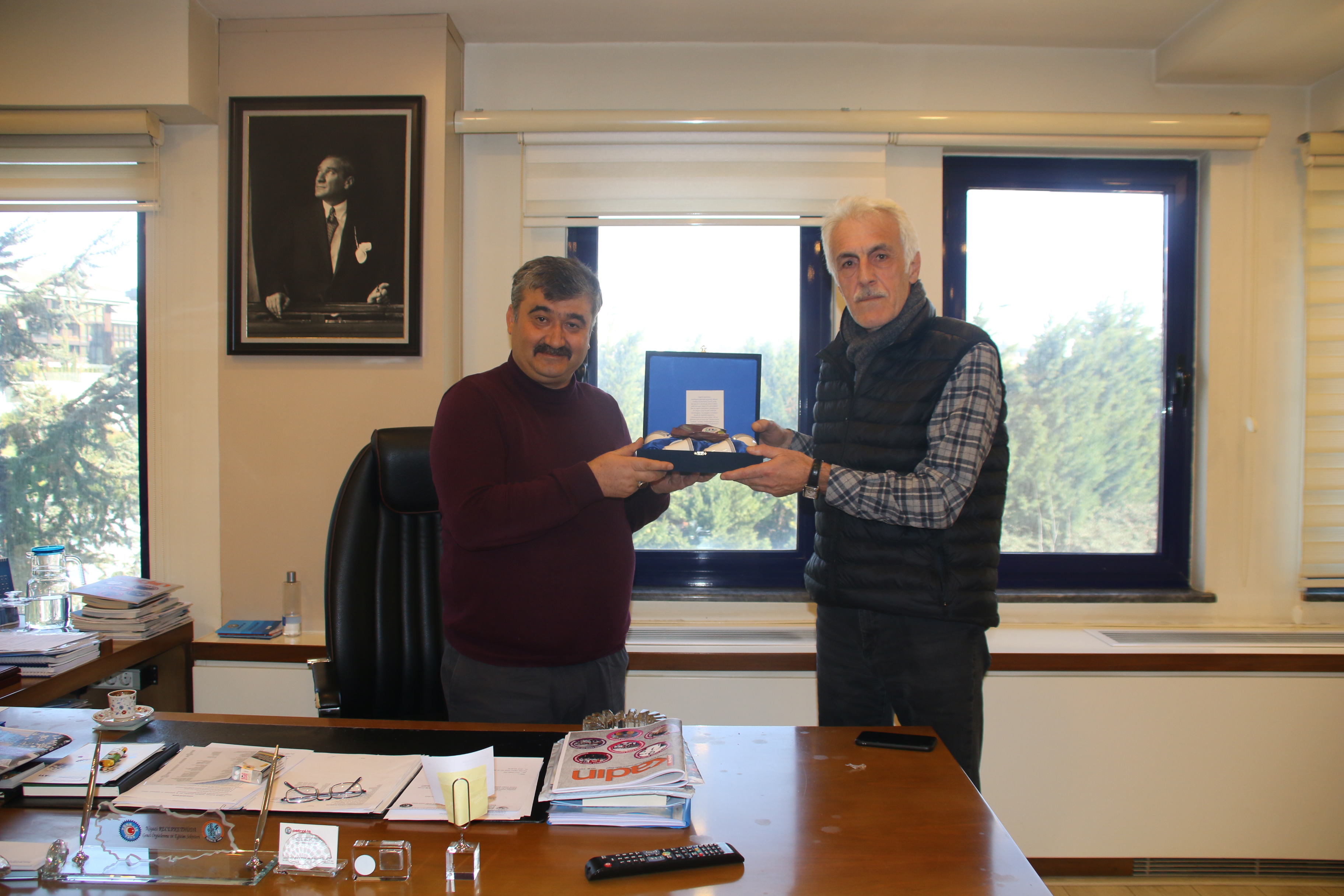 Koop-İş Sendikası İstanbul 1 Nolu Şube Başkanı Aziz Hacısalihoğlu ile Başkan Yardımcısı H. Süleyman Çetin, 6 Mart Cuma günü Genel Örgütlenme ve Eğitim Sekreterimiz Niyazi Recepkethüda’yı makamında ziyaret etti. Sendikal gündemin ve güncel sorunların konuşulduğu sohbette, Aziz Hacısalihoğlu ve H. Süleyman Çetin Genel Örgütlenme ve Eğitim Sekreterimize görevlerinde başarılar dileyerek, hediye takdim ettiler.