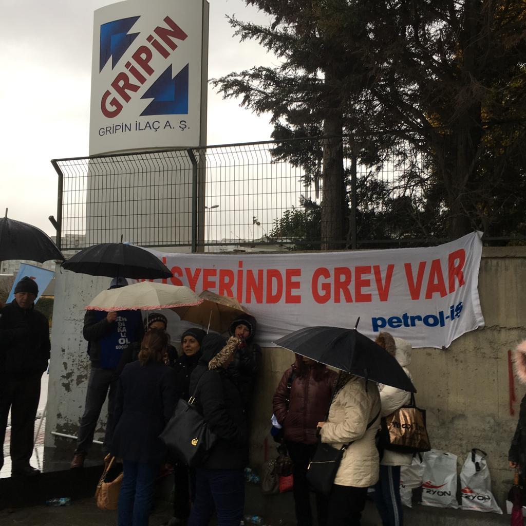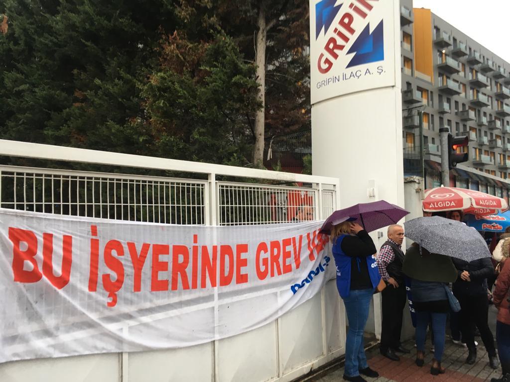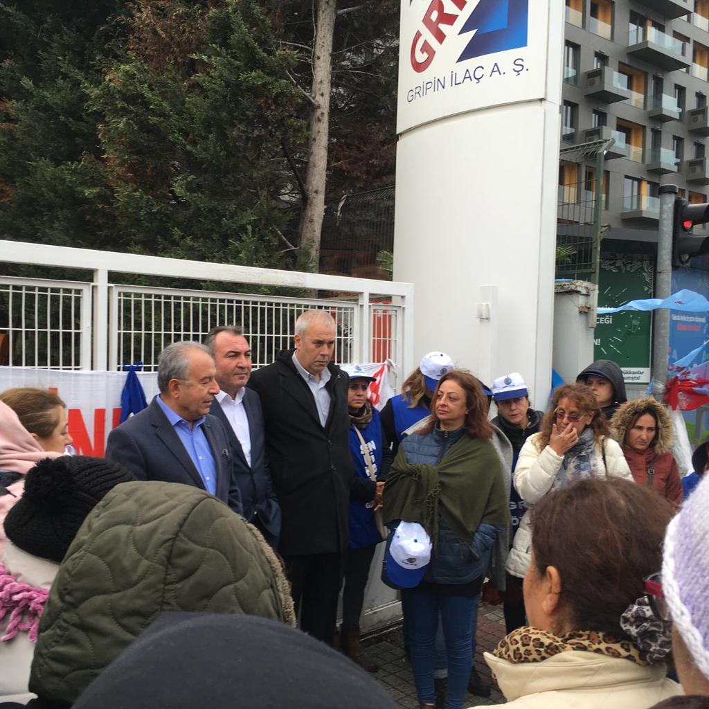 İstanbul 1 Nolu şubemiz kapsamında olan ve 83 üyemizin çalıştığı Gripin İlaç işyerinde bugün(28 Kasım) grev uygulamasına başlandı. Grevin ilk gününde Genel Merkez Yöneticilerimiz de grevci işçileri yalnız bırakmadı. Genel Sekreterimiz Ahmet Kabaca ve Genel Mali Sekreterimiz Turgut Düşova grevin ilk gününde, fabrika önünde grevci işçilerle biraraya gelerek, grevlerinde başarılar dilediler.