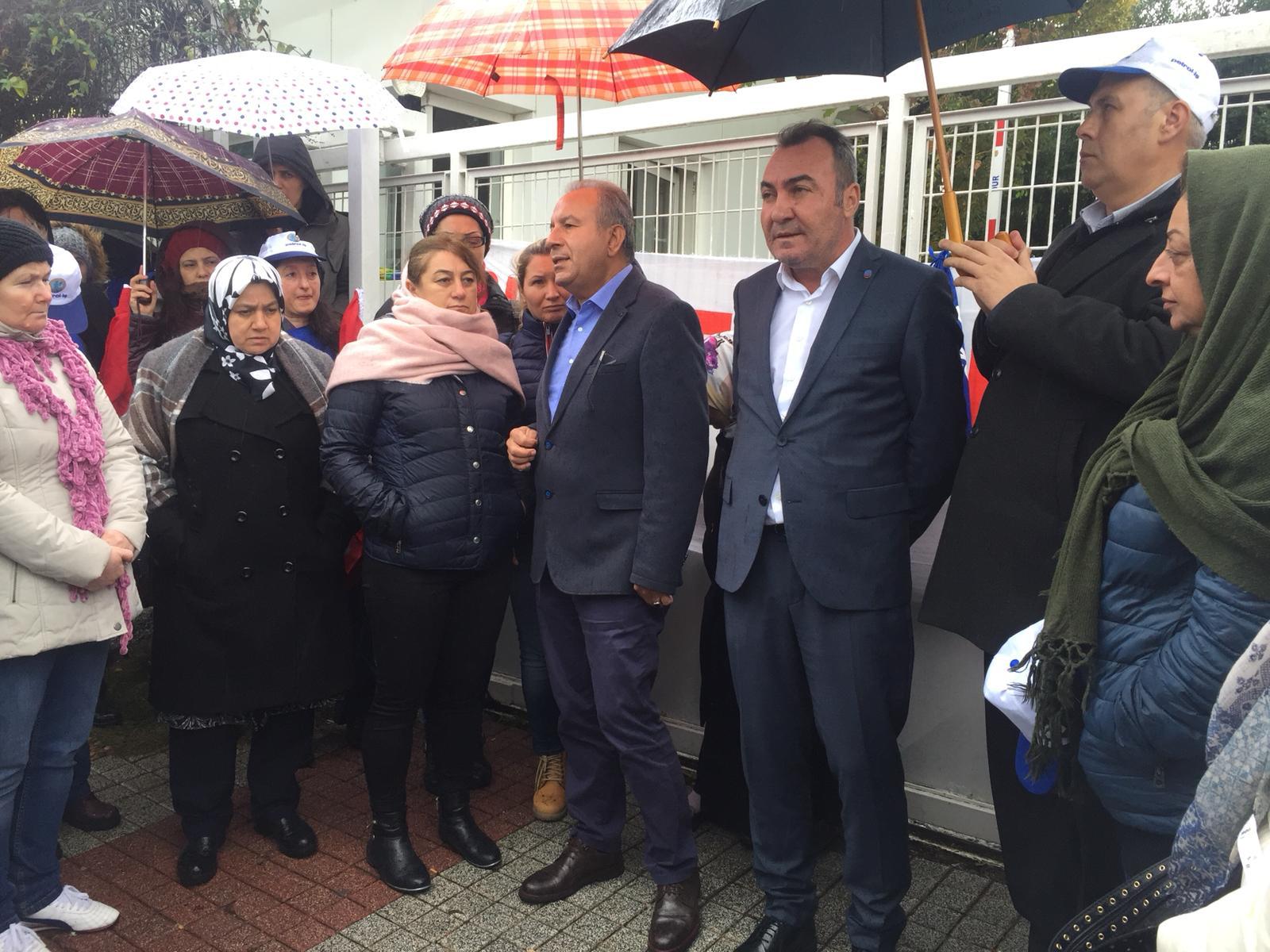 Genel Mali Sekreterimiz Turgut Düşova konuşmasına grevci işçileri selamlayarak ve kardeş işyerlerinden selamlar getirdiğini söyleyerek başladı. Ekonomik koşulların kötü olduğu, alım gücünde %50 oranında kayıpların yaşandığı böylesi bir dönemde bazı taleplerin işveren tarafından karşılık görmediğini belirtti. Konuşmasının devamında “Biz taleplerimizde çok haklıyız, haklıysak da direneceğiz ve haklı olan mutlaka mücadeleyi kazanır” dedi. Düşova konuşmasını grevci işçilere “Asla yanlız değilsiniz, Petrol-İş Sendikası maddi ve manevi olarak ve 40 bin üyesiyle bu grevin arkasındadır.” diyerek sonlandırdı.