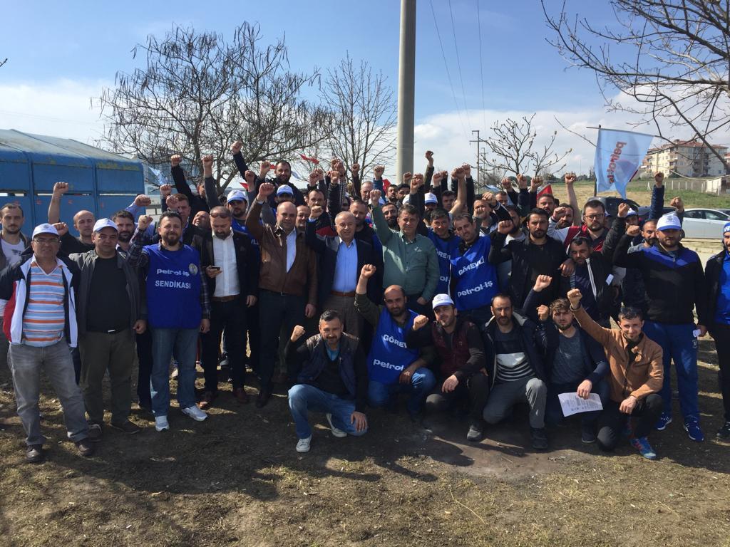 Koşullara dur demek, patronun karşısına örgütlü bir şekilde çıkmak ilk adımlar, yaz aylarında Trakya Şubemizin örgütlenme faaliyetleri ile başladı. Sendikamız kısa sürede yetkiyi alacak sayıya ulaştı ve 12 Ekim 2018’de Çalışma Bakanlığı Petrol-İş’i yetkili sendika olarak tespit etti. İşverenin bu yetki tespitine cevabı iki işçiyi işten çıkarmak ve yetki tespitine itiraz etmek oldu. Patronun yasal süreci uzatma girişimlerine Kale Kayışları işçileri daha etkili bir silahla, üretimden gelen güçlerini kullanarak cevap verdile. İşçiler 14 gündür fabrikanın önünde direniş mücadelelerini kararlılıkla sürdürüyorlar.