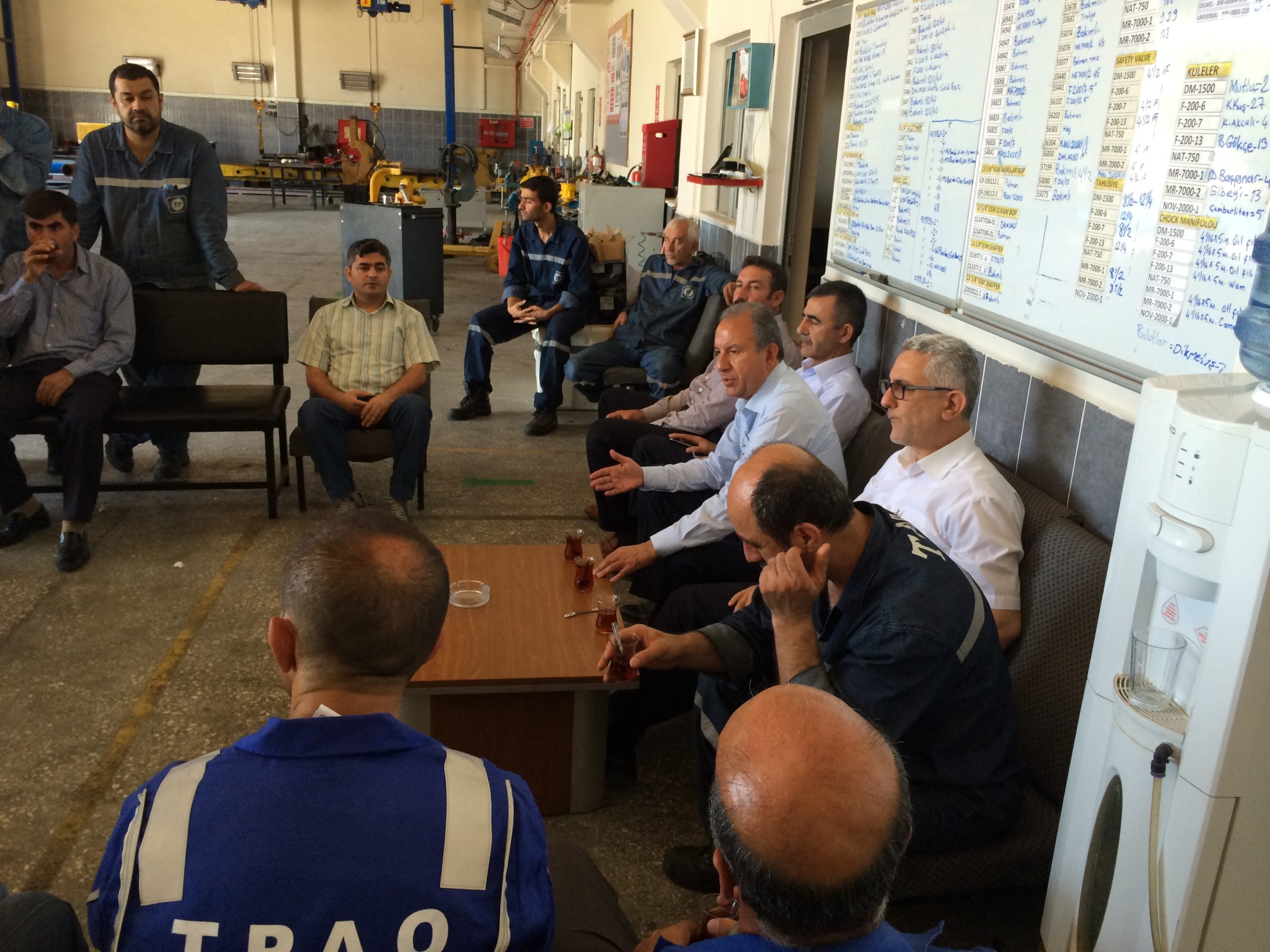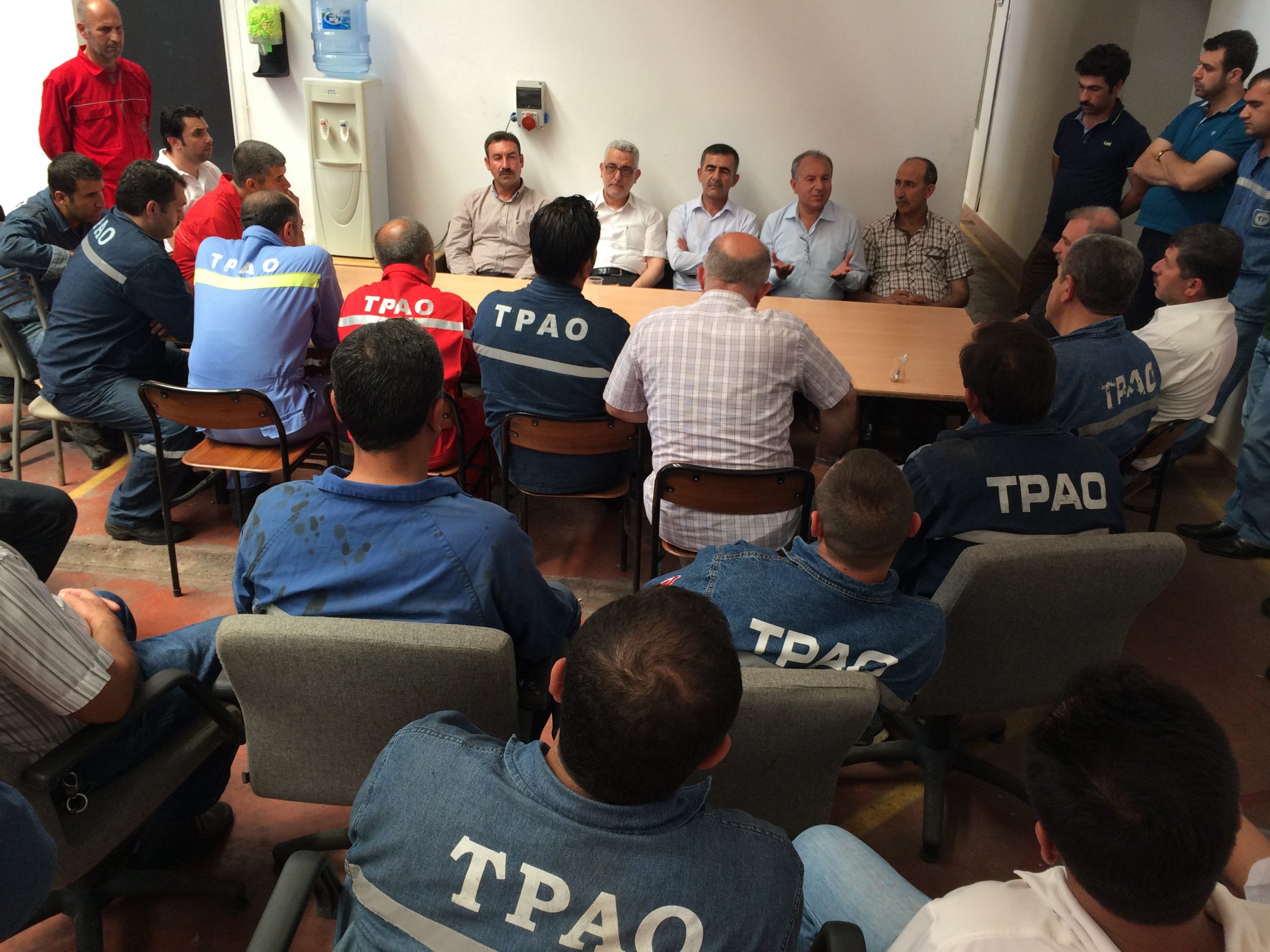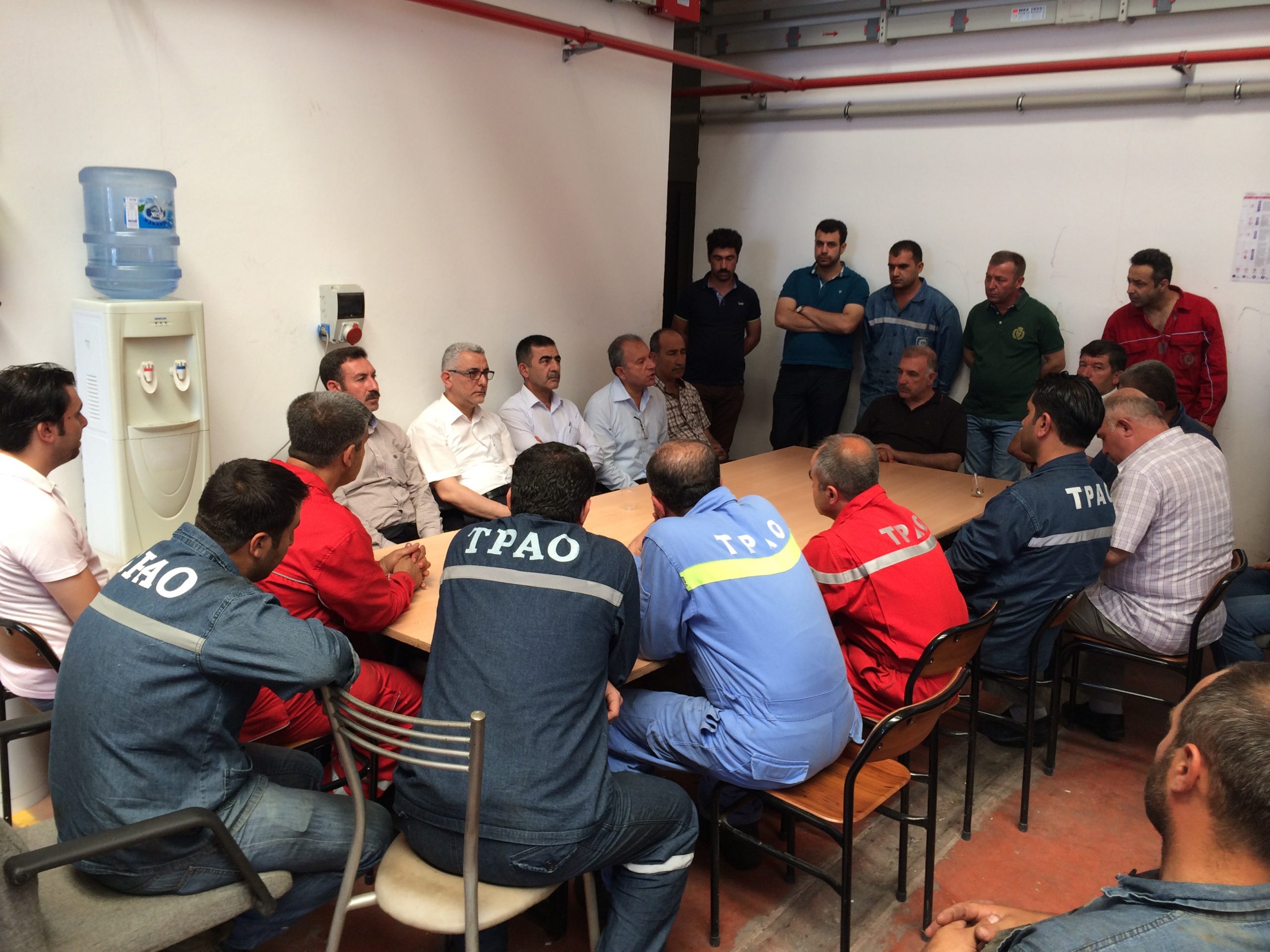 Merkez yöneticilerimiz; temsilci ve üyelerimiz ile birlikte TPAO’ da Bütünsel Dönüşüm Programı ve buna sendikamızın itirazlarını,  taşeron sistemi, iş güvenliği, skala değerlendirmeleri, itibari hizmet süreleri konuları hakkında değerlendirmelerde bulunarak üyelerimizin sorularını cevaplandırdılar.