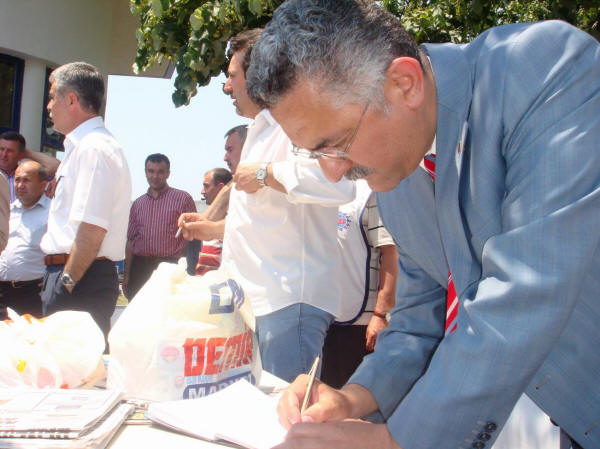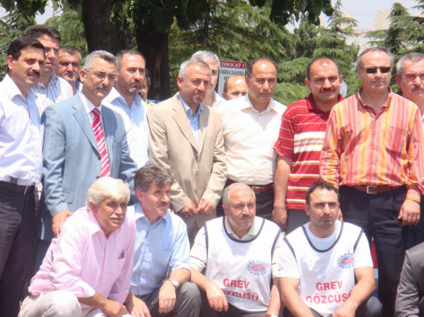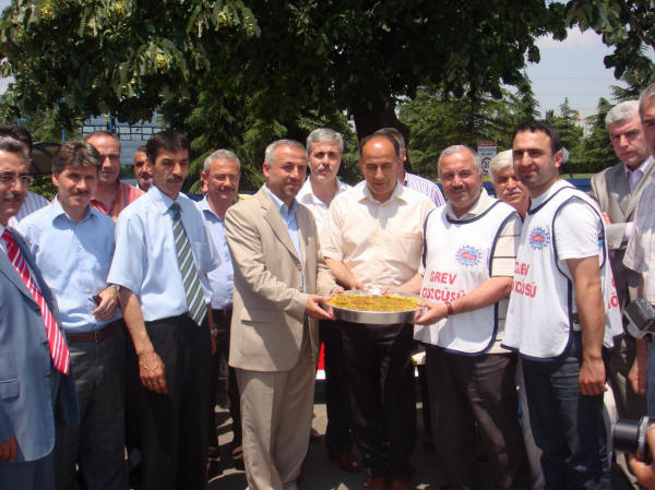 Grev işçilerine baklavalı destek 05.06.2008 Şube Başkanımız Ali Ufuk Yaşar’ın da aralarında bulunduğu Türk-İş’e bağlı sendikaların Kocaeli ve Gebze Şubesi Başkanları ile Türk-İş Bölge Temsilciliği, grevde bulunan Goodyear, Pirelli ve Brissa işçilerini ziyaret etti. Başkanları, ziyaretleri sırasında Lastik-İş Şube Başkanı Hasan Hüseyin Çakar, İdari Sekreter Erol Erdem, Mali Sekreter İsmail Kandaz ağırladılar. Başkanlar kardeş konfederasyon olan DİSK’e bağlı Lastik-İş Sendikası’nın yaptığı grevi sonuna kadar destekleyeceklerini belirterek grev defterine destek mesajlarını yazdılar. Ayrıca başkanlar grev gözcülerine baklava ikram ettiler.