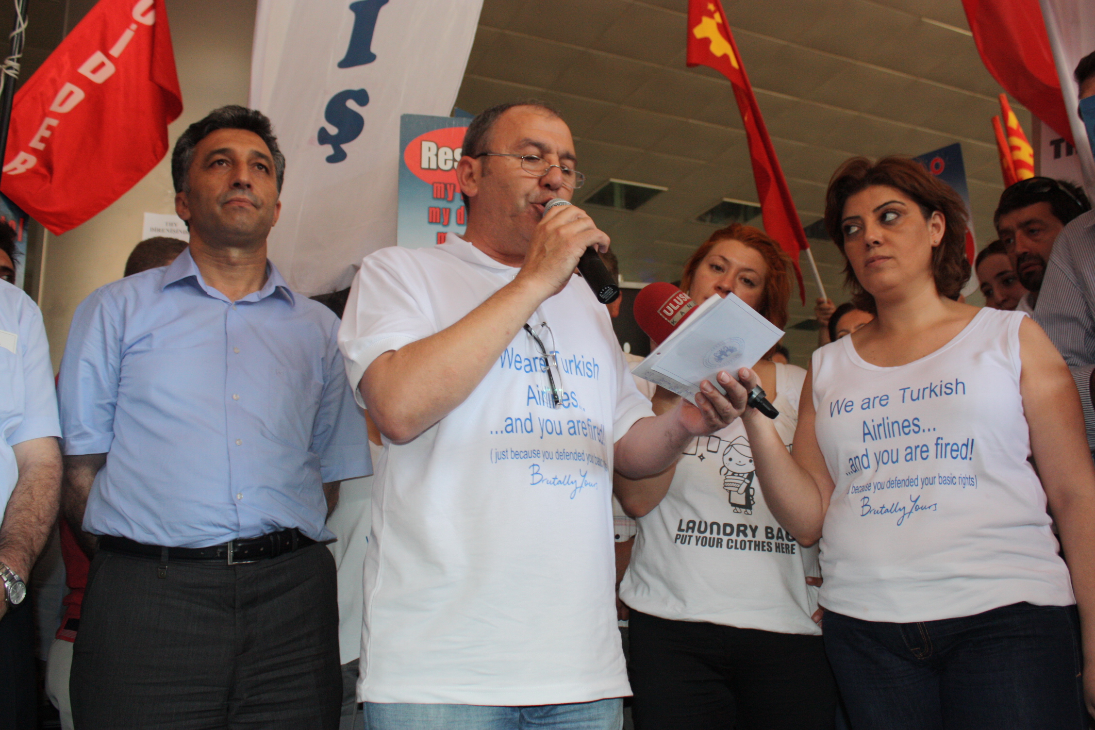 Hava-İş Sendikası Genel Başkanı Atilay Ayçin’in küresel bir destek ve eylem kararı için yurtdışında bulunması nedeniyle katılmadığı açıklamayı Hava-İş Sendikası Teşkilatlanma Genel Sekreteri Kaya Sayın yaptı.