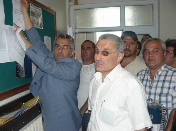 Konuşması Gübretaş çalışanları tarafından coşkuyla alkışlanan Yaşar daha sonra beraberindeki İdari Sekreter Salih Efe, Mali Sekreter Tekin Kara, Şube Yönetim Kurul Üyesi Recep Kurt, işyeri Baştemsilcisi Cengiz Karagöz Temsilci Şeref Yaşar ve çalışanlar ile işyeri ilan tahtasına grev ilanını astı.
