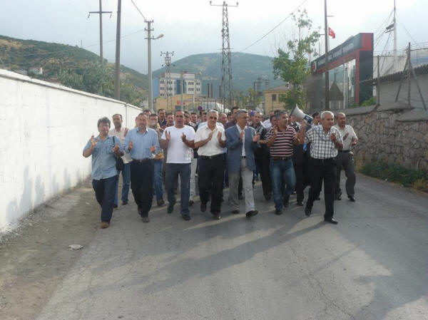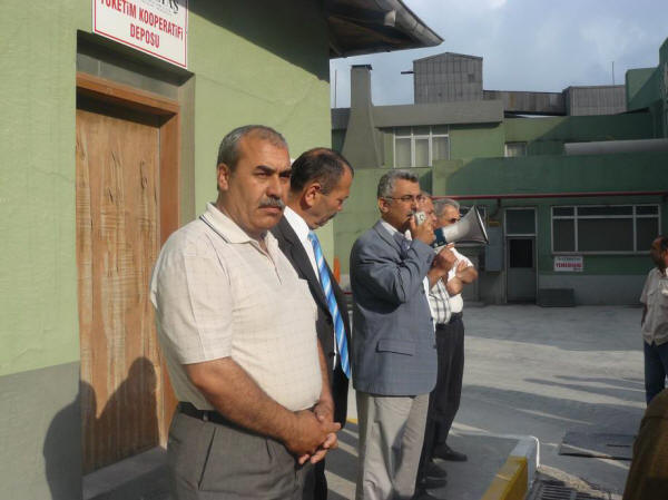 08.00 vardiyası çalışanları fabrika kapısına gelmeden servislerden inerek Şube Başkanımız Ali Ufuk Yaşar, İdari Sekreter Salih Efe, Mali Sekreter Tekin Kara ve temsilcilerle beraber çeşitli sloganlar eşliğinde yemekhane önüne kadar geldiler. Burada toplanan fabrika çalışanlarına Şube Başkanı Ali Ufuk Yaşar “Krizin sorumlusu işçi değildir. Geçmişteki kazanılmış haklardan vermek adına fedakarlık bugün işverendedir. Grev bir amaç değildir ama bu araç en iyi şekilde de kullanılacaktır. 0 zam kesinlikle kabul edilemez” dedi. Hükümetin kıdem tazminatlarının fona devri ile alakalı yapılan açıklamalarını da eleştirerek bunun genel grev kararı olacağını söyledi.