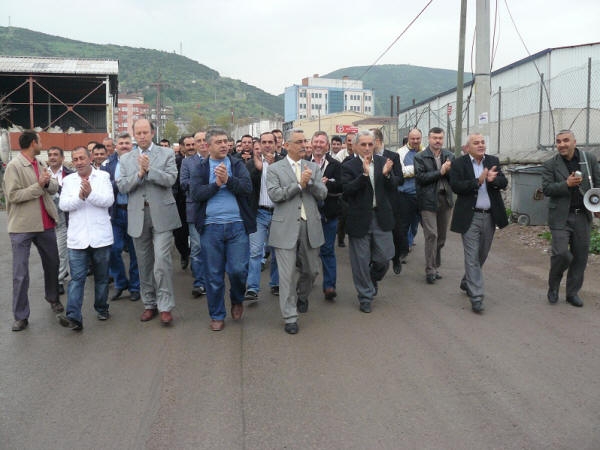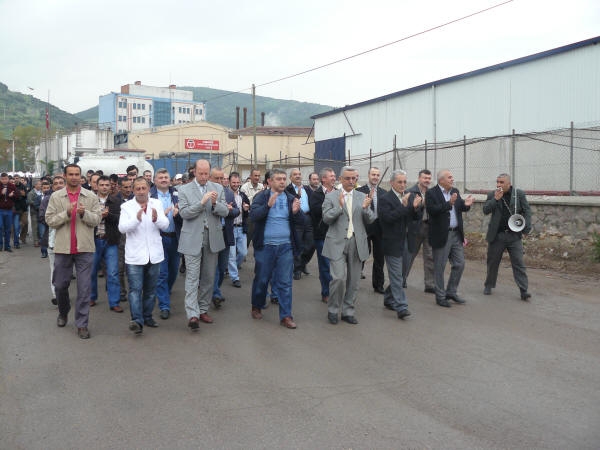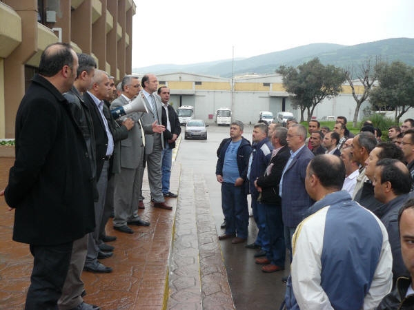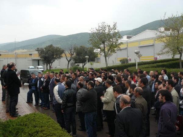 04.05.2011 tarihinde 08.00-16.00 vardiyası, gündüz vardiyası çalışanları D-100 kenarında servislerden inerek sloganlar atarak alkışlar eşliğinde fabrika önüne kadar yürüdüler. 00.00-08.00 vardiyasından çıkan çalışanların da katılımı ile fabrika önünde toplanıldı. Şube Başkanı Ali Ufuk YAŞAR burada sendika üyelerine hitaben konuşmasında; Toplu sözleşme görüşmeleri hakkında sendika üyelerini bilgilendirerek şunları söyledi: