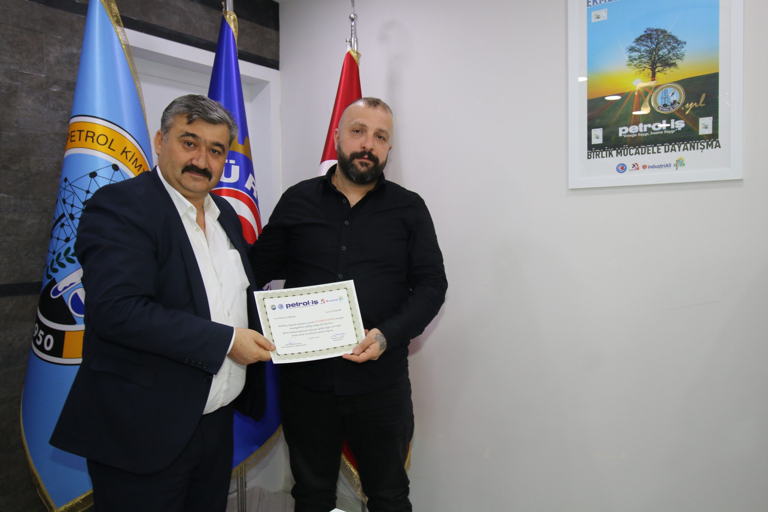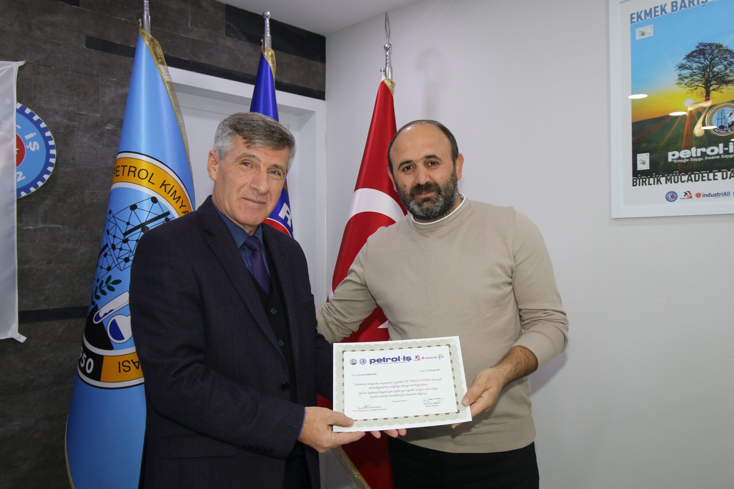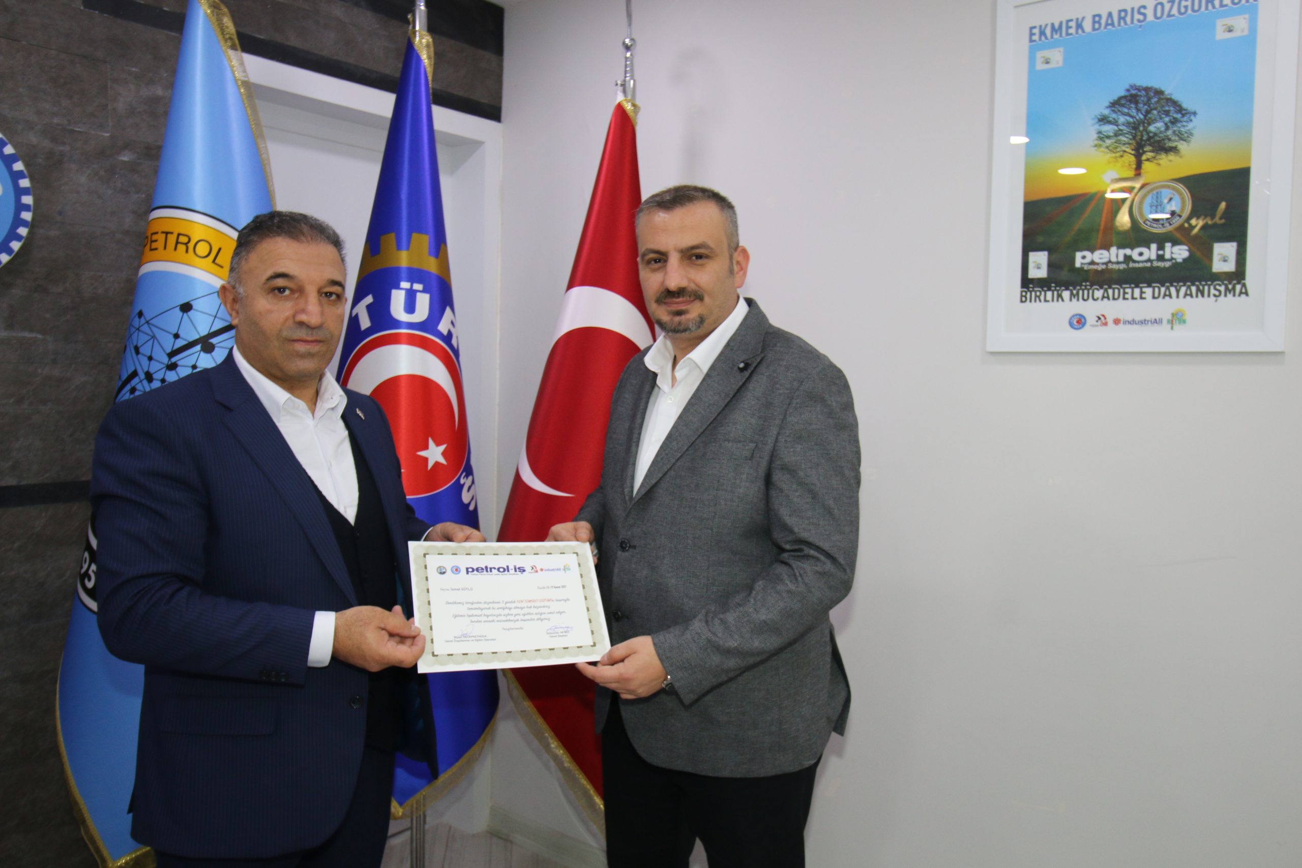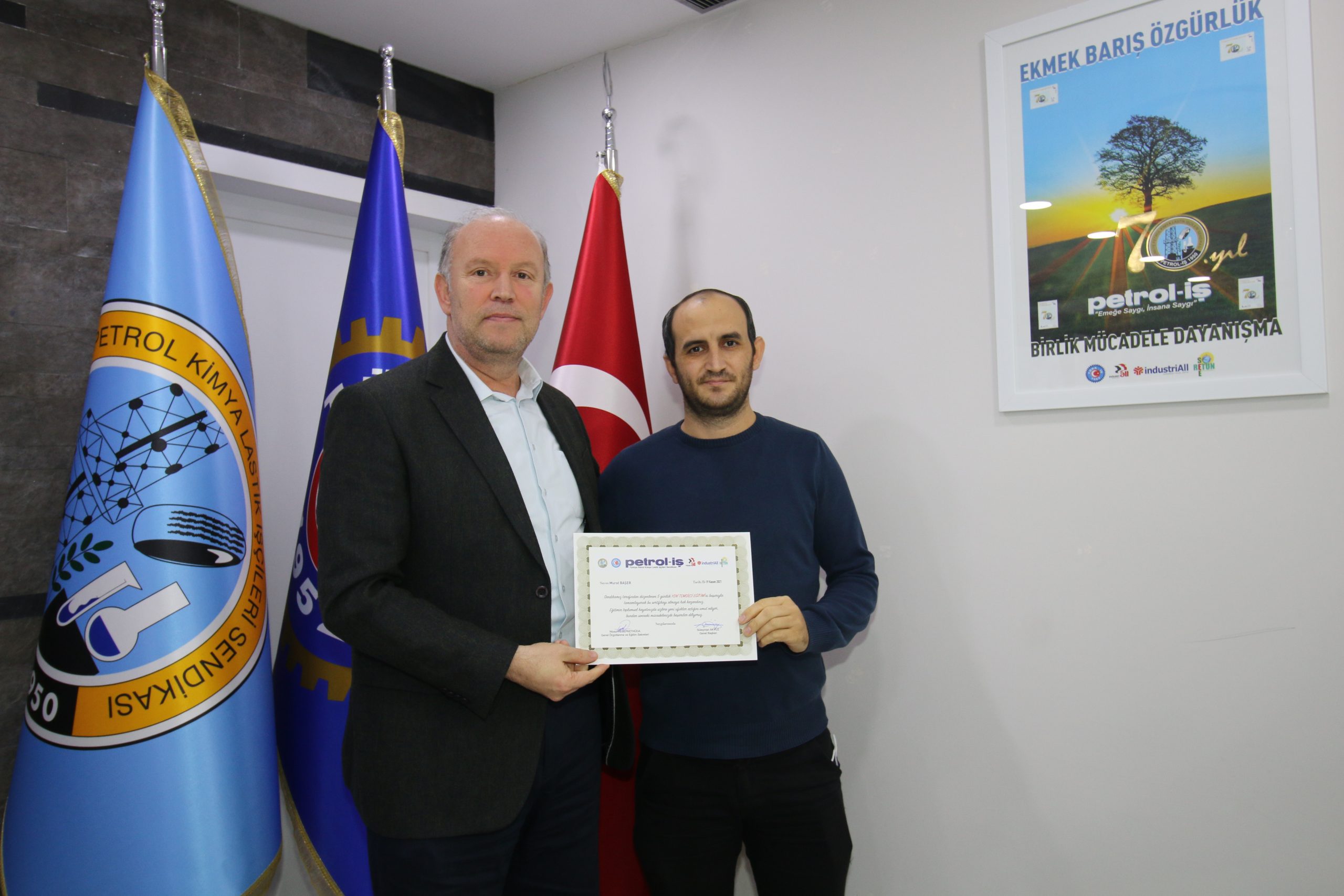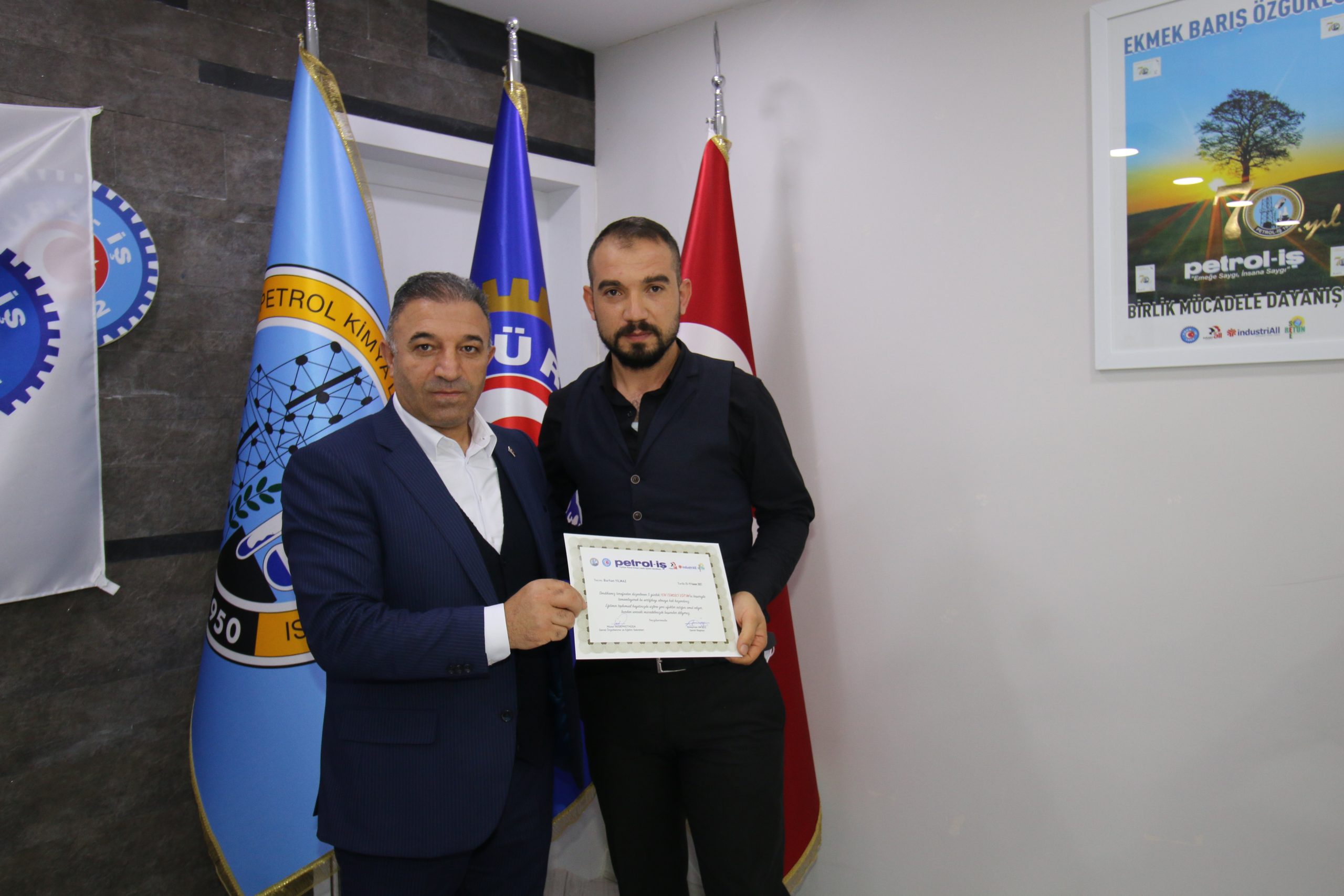 2021 yılı güz dönemi Yeni Temsilci Eğitiminin dördüncü grubu, 15 Kasım günü başladıkları eğitimi bugün başarılı bir şekilde sonlandırdı. Eğitimin son gününde Merkez Yönetim Kurulu üyelerimiz temsilcilerimizle biraraya geldi. Saat 09.30’da Merkez Yönetim Kurulunun selamlaması ile başlayan toplantı, Genel Başkanımız Süleyman Akyüz’ün emeğin gündemi, Petrol-İş’in idari ve örgütsel yapısı üzerine yaptığı değerlendirme ile devam etti. Temsilcilerden gelen soruların yanıtlanmasının ardından Merkez Yönetim Kurulu Üyelerimiz temsilcilere sertifikalarını verdiler.