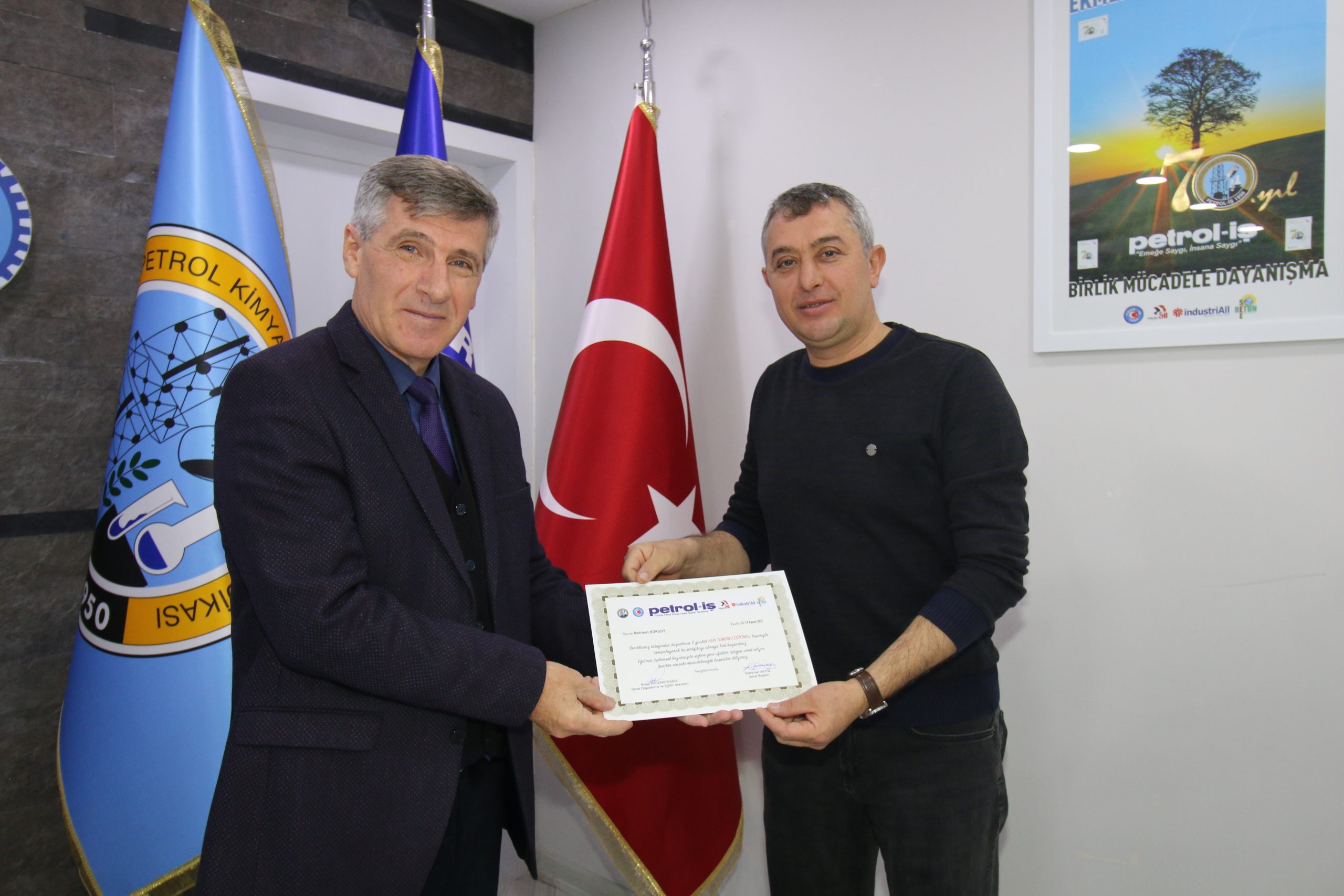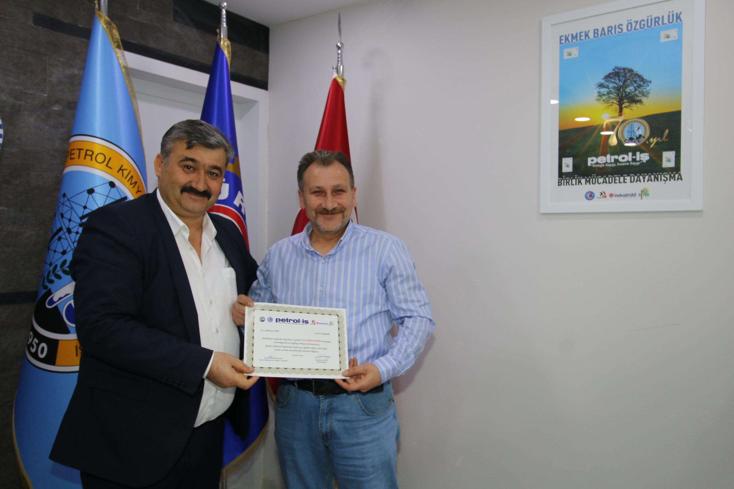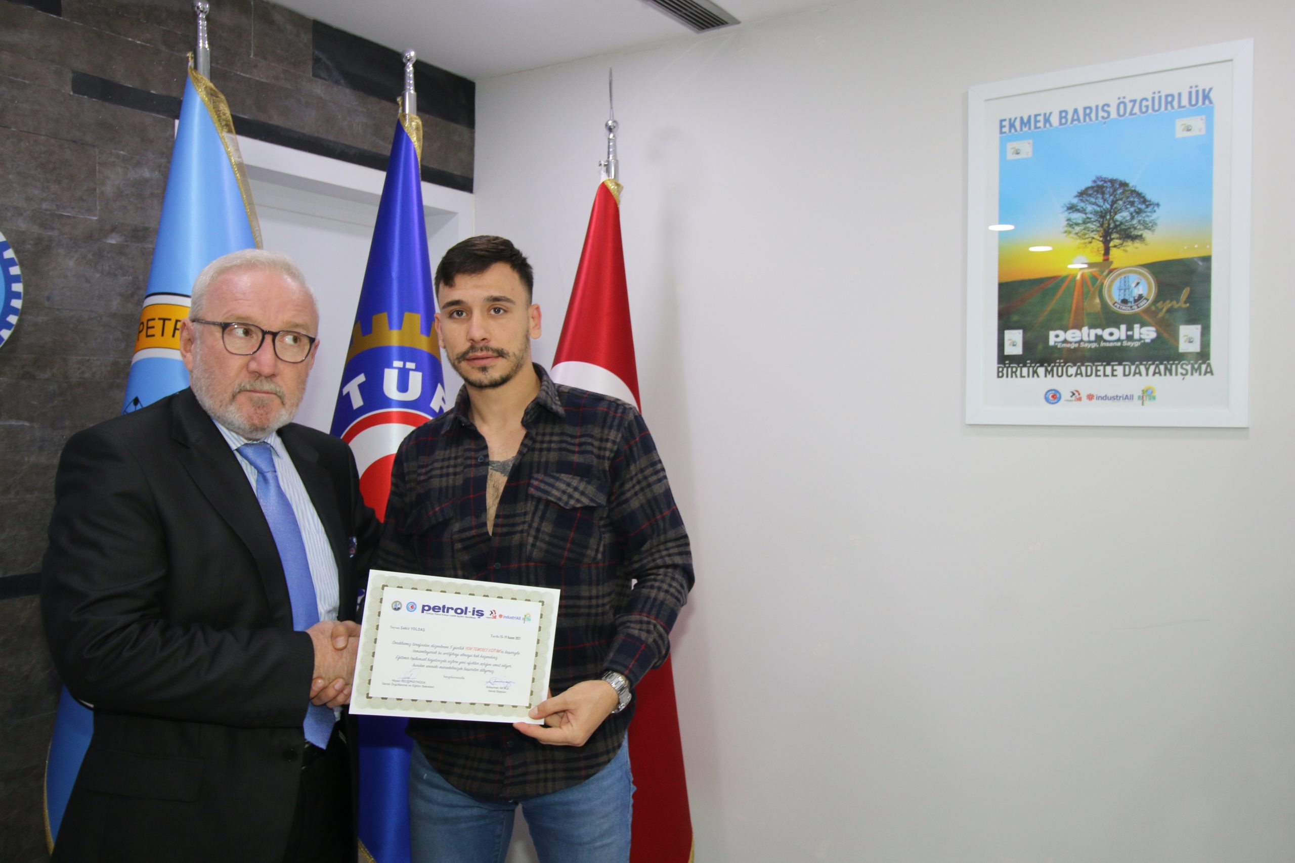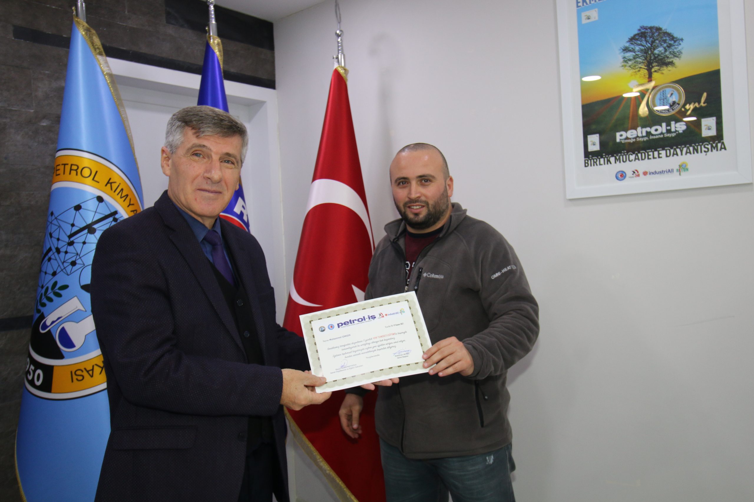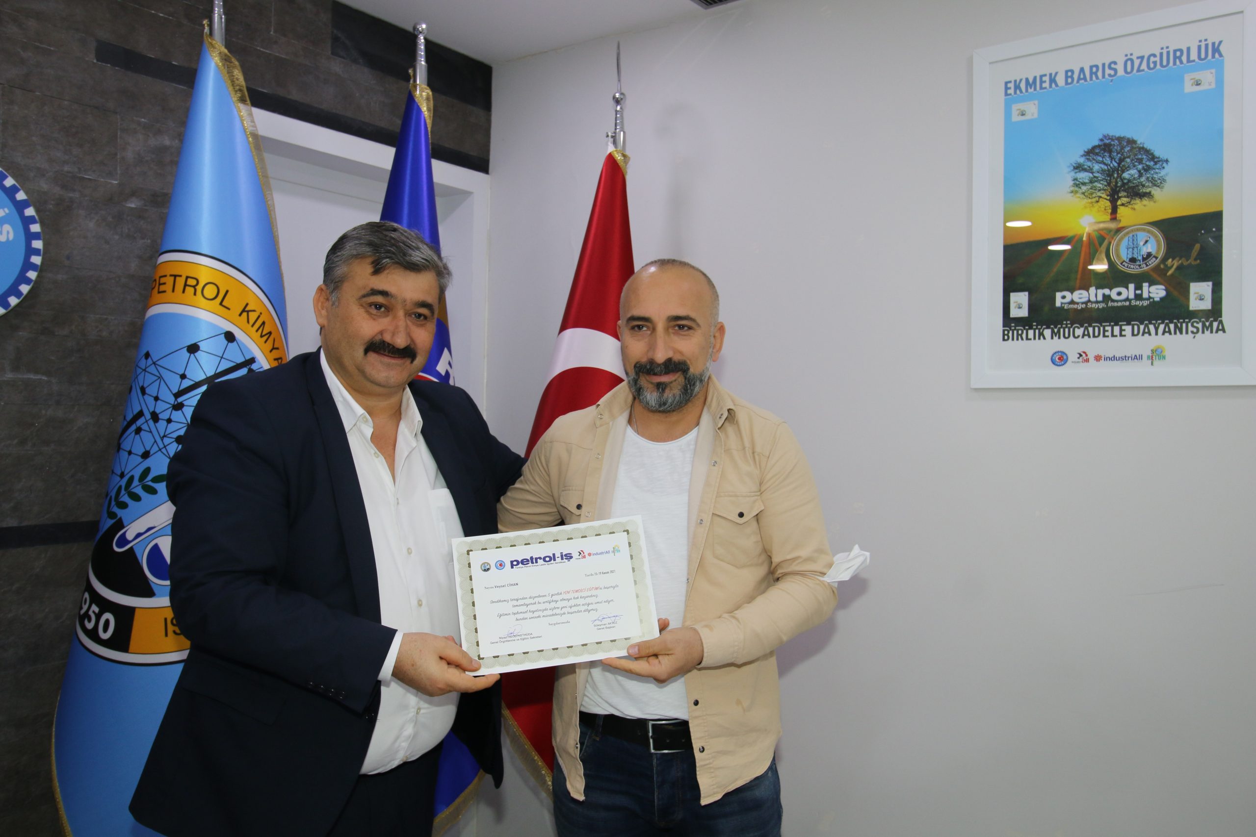 2021 yılı güz dönemi Yeni Temsilci Eğitiminin dördüncü grubu, 15 Kasım günü başladıkları eğitimi bugün başarılı bir şekilde sonlandırdı. Eğitimin son gününde Merkez Yönetim Kurulu üyelerimiz temsilcilerimizle biraraya geldi. Saat 09.30’da Merkez Yönetim Kurulunun selamlaması ile başlayan toplantı, Genel Başkanımız Süleyman Akyüz’ün emeğin gündemi, Petrol-İş’in idari ve örgütsel yapısı üzerine yaptığı değerlendirme ile devam etti. Temsilcilerden gelen soruların yanıtlanmasının ardından Merkez Yönetim Kurulu Üyelerimiz temsilcilere sertifikalarını verdiler.