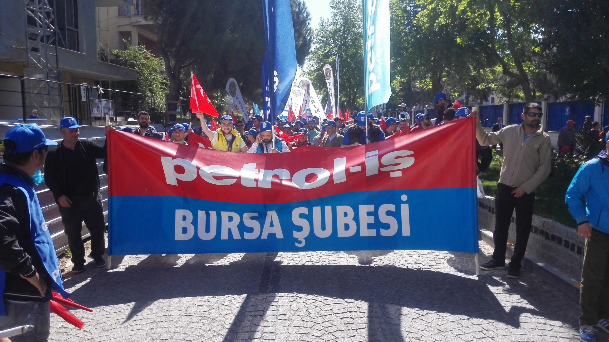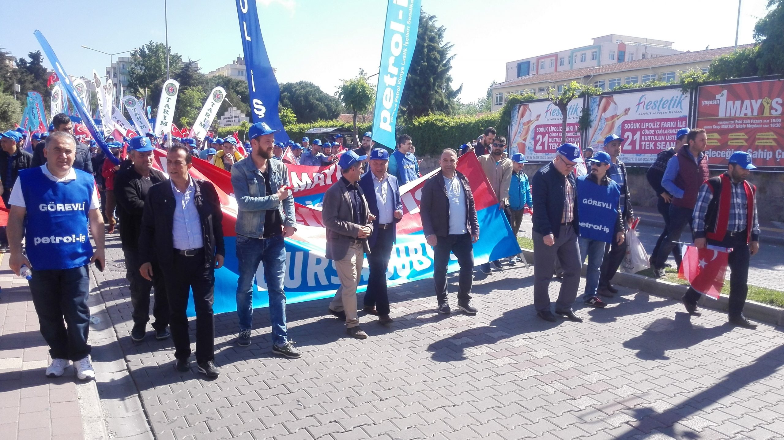 Sendikamız Merkez Denetim Kurulu Başkanı Yusuf Ziya Kahyaoğlu’nun da yer aldığı etkinlikte Bursa, Düzce, Bandırma, Kocaeli, İstanbul 1 Nolu, İstanbul 2 Nolu Şube Başkanlarımız, Şube Başkan Yardımcılarımız ve şube üyelerimiz de yerlerini aldılar. Coşkulu ve kitlesel bir kortej oluşturan Petrol-İş üyeleri, bu İşçi Bayramı’nı davul ve zurna ile değil, şehitlerimizi anarak kutladı.