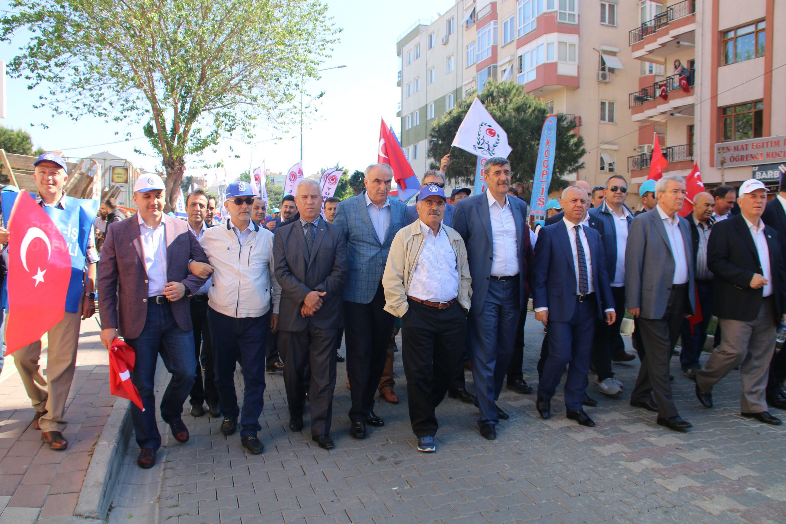 Sabah 9.00′ da Salı Pazar’ında bir araya gelen Petrol-İş merkez yöneticilerimiz, şube başkanlarımız, temsilcilerimiz ve üyelerimiz saat 9.30’dan itibaren yürüyüşe geçti. Genel Başkanımız Ali Ufuk Yaşar, Genel Sekreterimiz Ahmet Kabaca, Genel Mali Sekreterimiz Turgut Düşova ve Genel Yönetim Sekreterimiz Ünal Akbulut da Çanakkale’deydi.