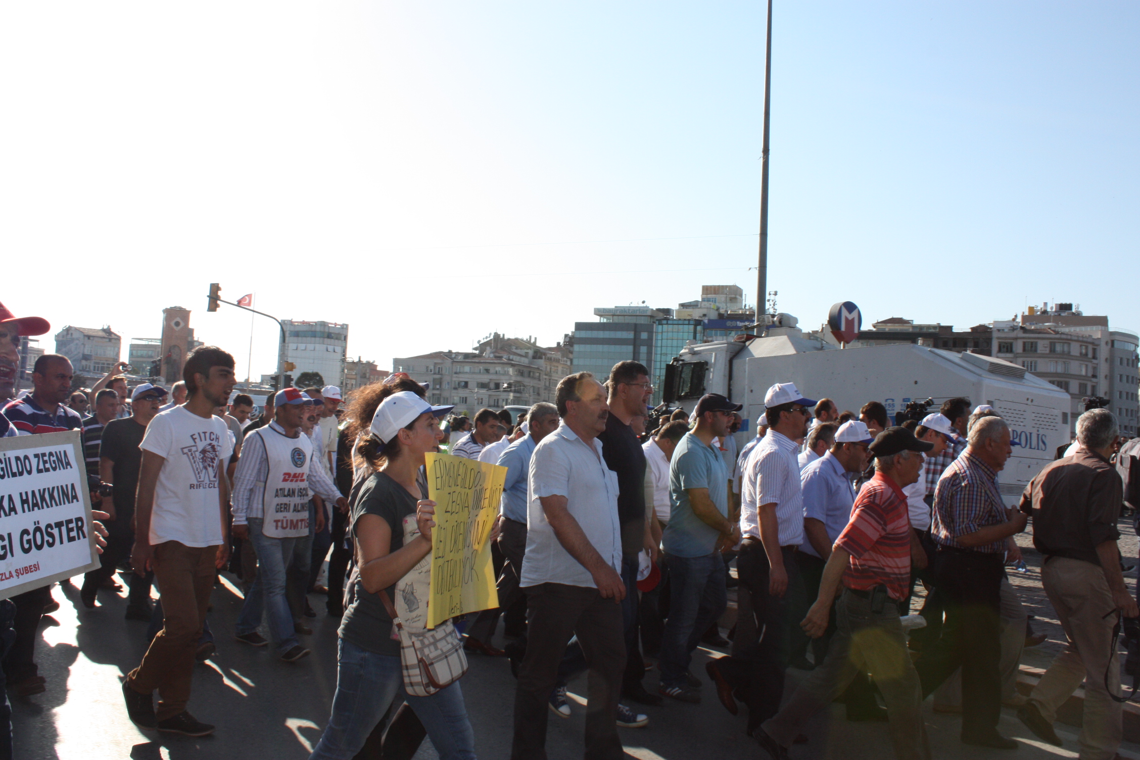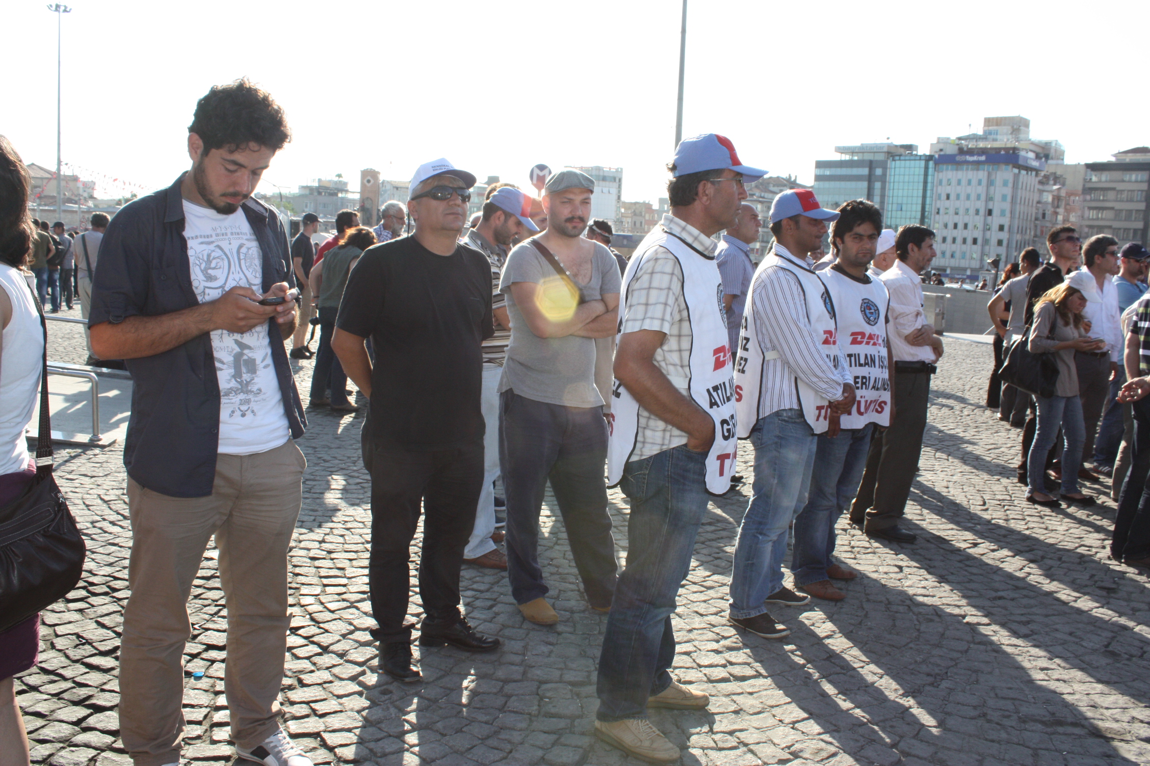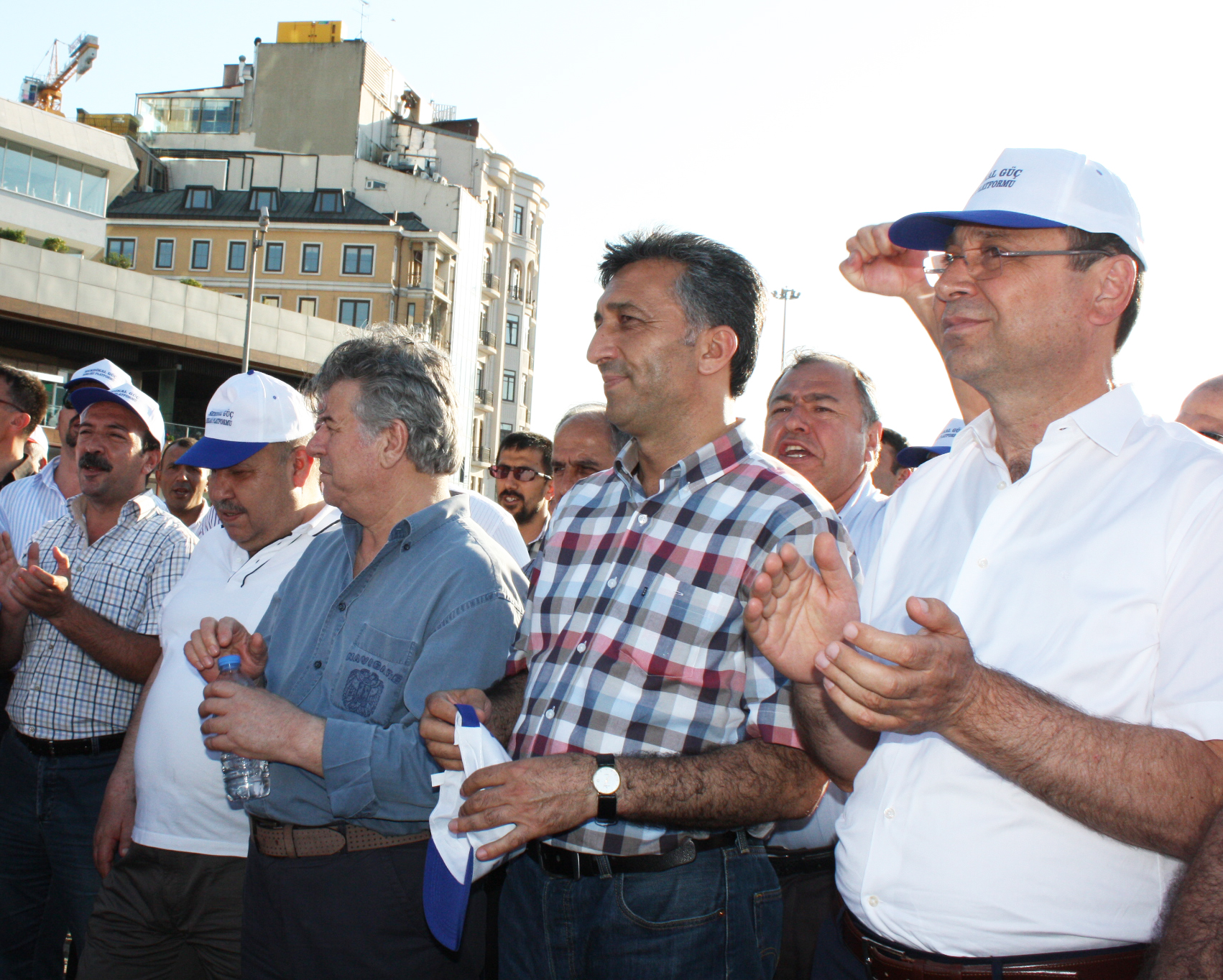 Sendikal Güç Birliği Platformu’nu oluşturan sendikaların genel başkanları 25 Haziran 2013 Salı günü saat 18.00′de Taksim Tramvay Durağı’nda buluşarak Atatürk Kültür Merkezi önüne yürüdüler ve burada bir saatlik “Duran Adam” eylemi gerçekleştirdiler. Eyleme Sendikamız Genel Başkanı Mustafa Öztaşkın, Deri-İş Sendikası Genel Başkanı Musa Servi, Kristal-İş Sendikası Genel Başkanı Bilal Çetintaş, Tek Gıda-İş Sendikası Genel Başkanı Mustafa Türkel, Tez Koop-İş Sendikası Genel Başkanı Osman Gürsu ve TÜMTİS Genel Başkanı Kenan Öztürk katıldı.