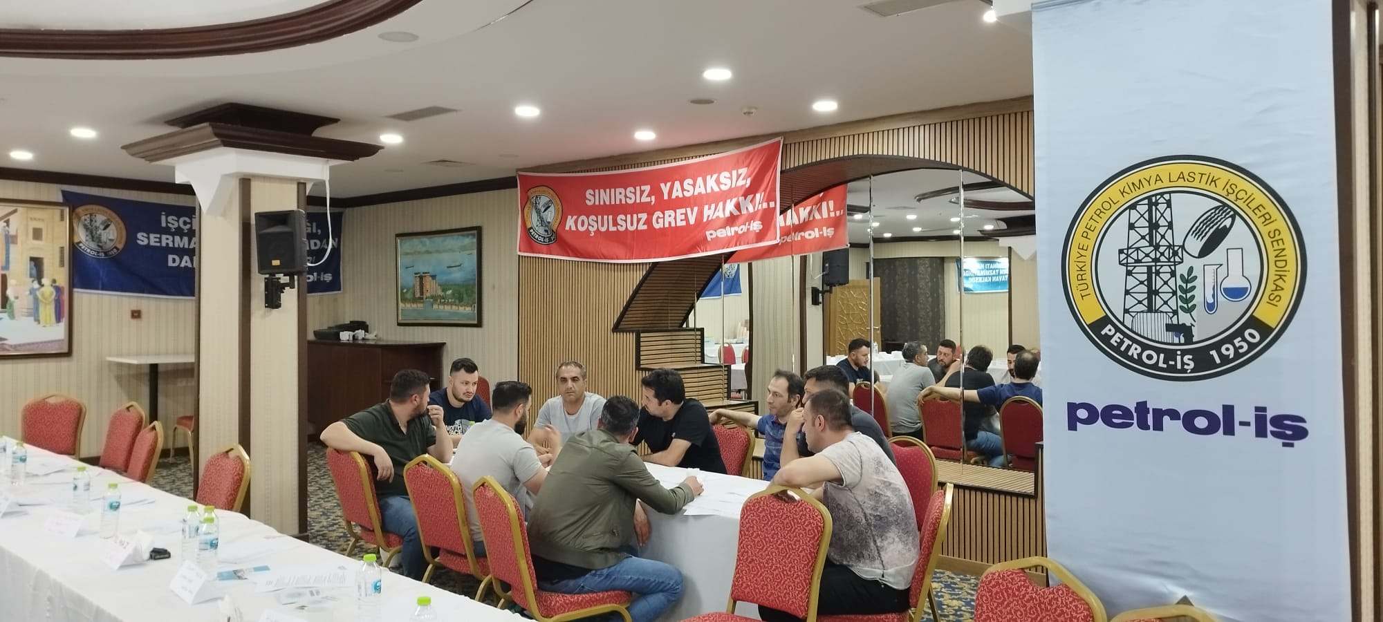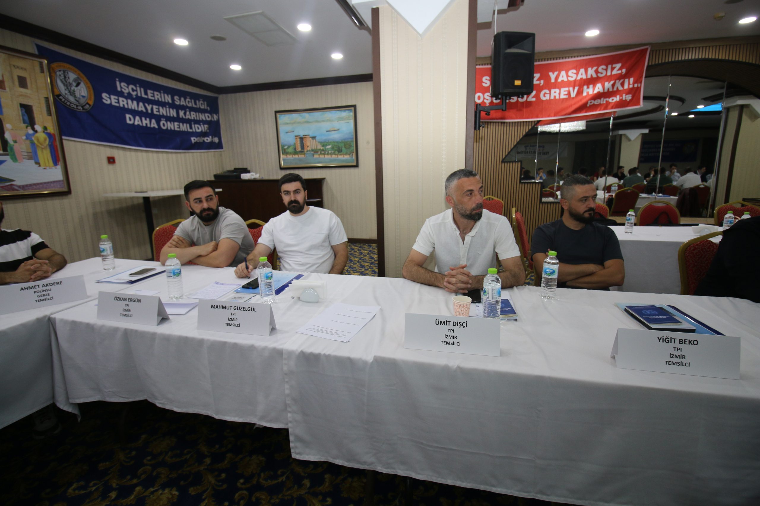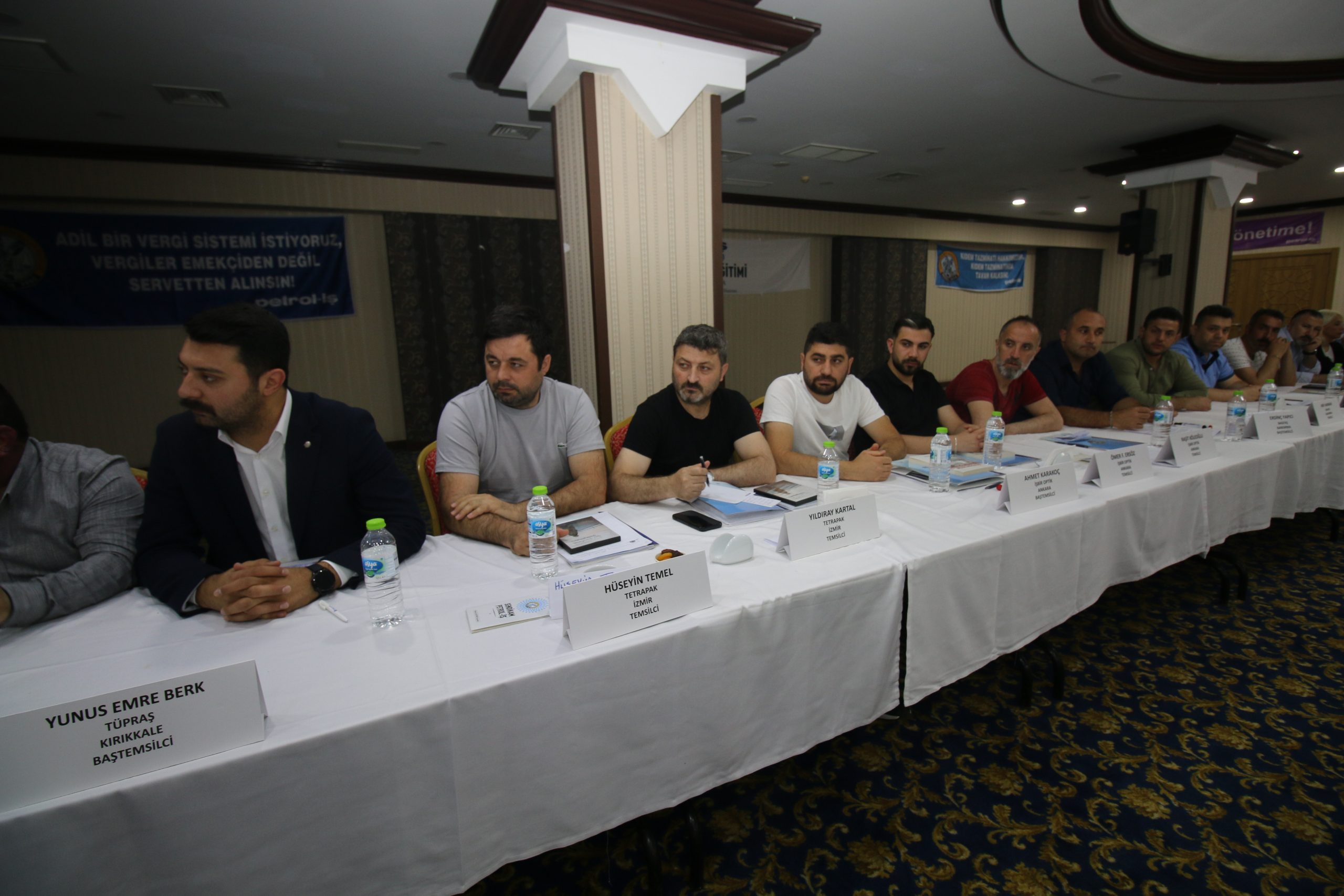 Saat 09.30’da başlayan toplantıda, Petrol-İş eğitimleri başta olmak üzere örgütlenme, toplu sözleşme süreçleri, emek gündemine ilişkin genel politik atmosferin sendikalara ve işçi sınıfına nasıl yansıdığı üzerine değerlendirmelerde bulunuldu.
