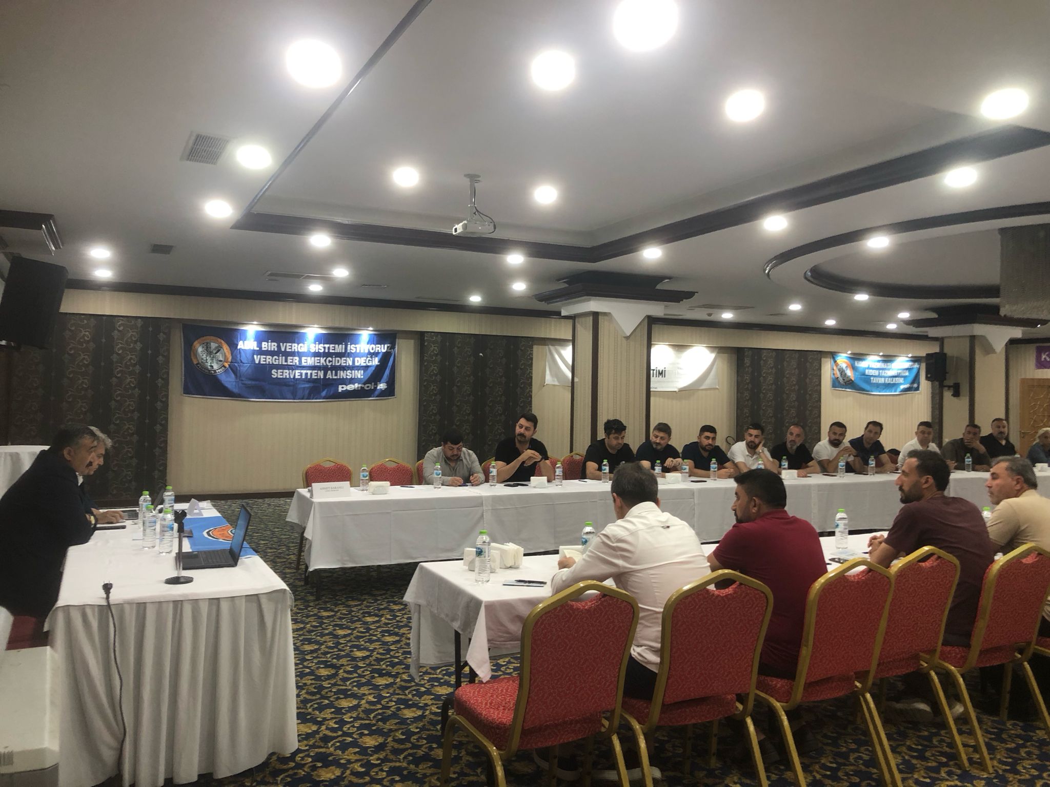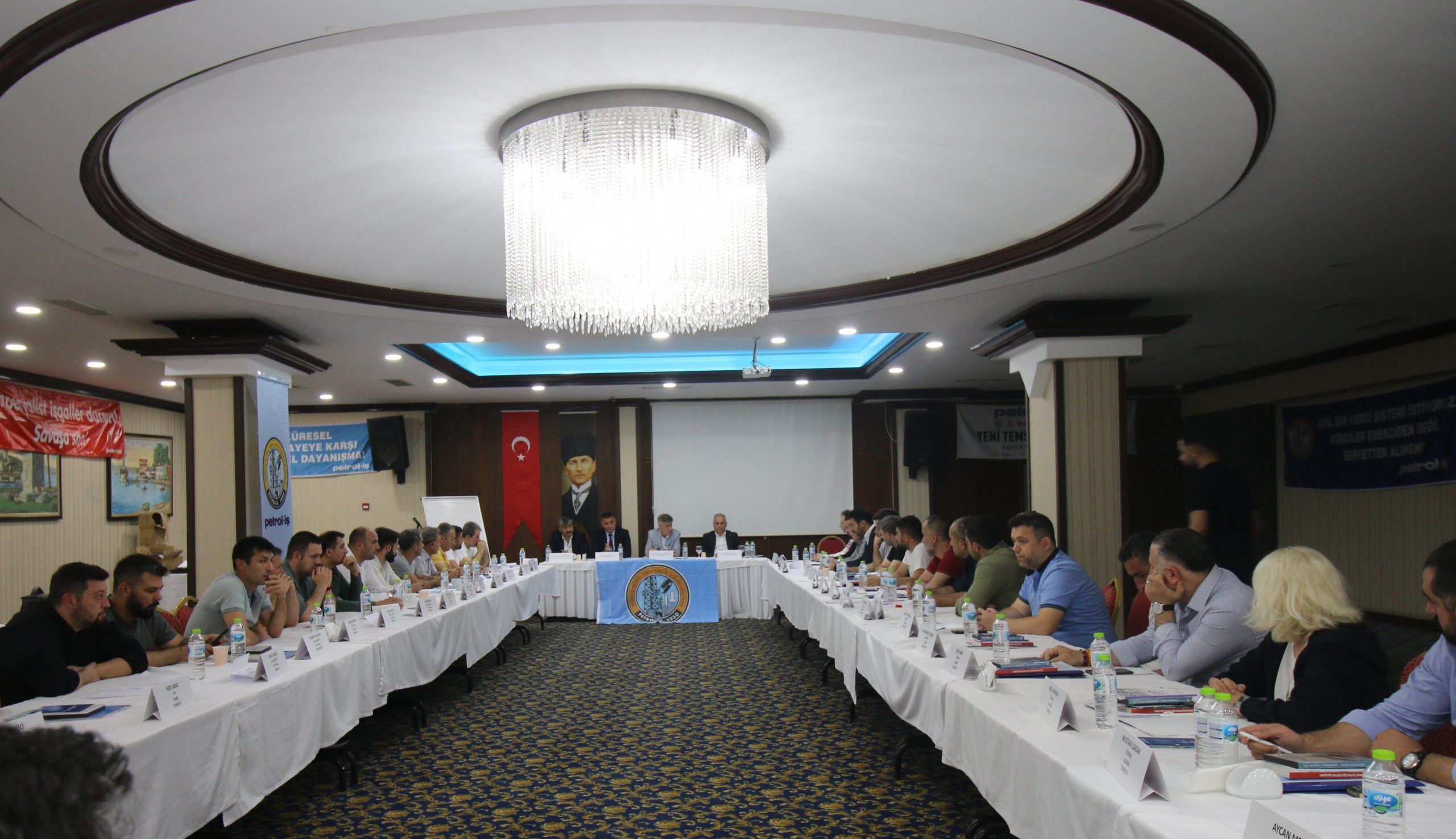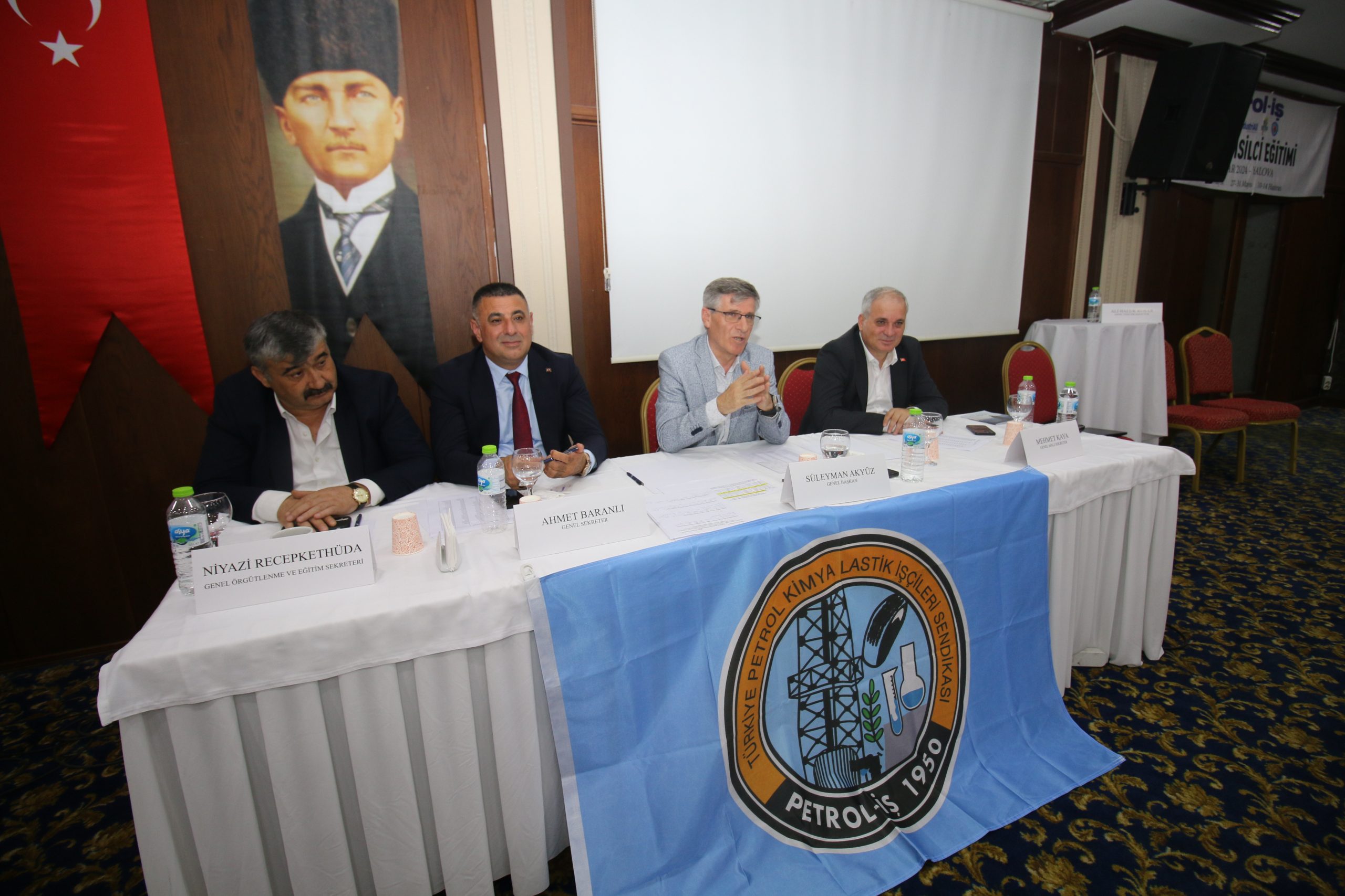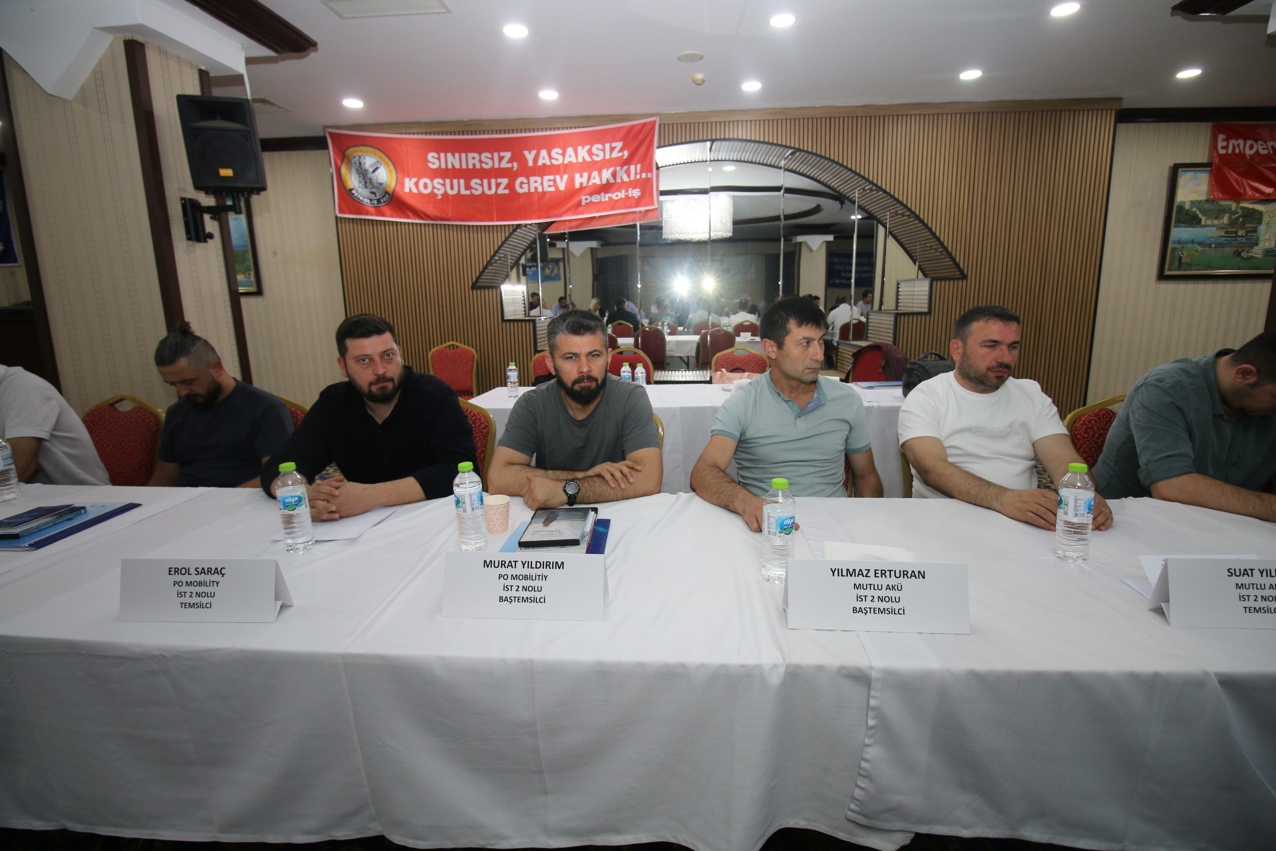 Saat 09.30’da başlayan toplantıda, Petrol-İş eğitimleri başta olmak üzere örgütlenme, toplu sözleşme süreçleri, emek gündemine ilişkin genel politik atmosferin sendikalara ve işçi sınıfına nasıl yansıdığı üzerine değerlendirmelerde bulunuldu.