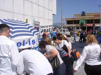 Aliağa şubesi 7-8-10-11 Mayıs 2004 günlerinde İzmir Kemeraltı Çarşı girişi ve Karşıyaka Çarşı girişinde imza standları açtı. Tüpraş özelleştirmesine karşı 12500 imza toplandı. El ilanları, Sendikamızın halka dönük hazırladığı kitapçıklar dağıtıldı.