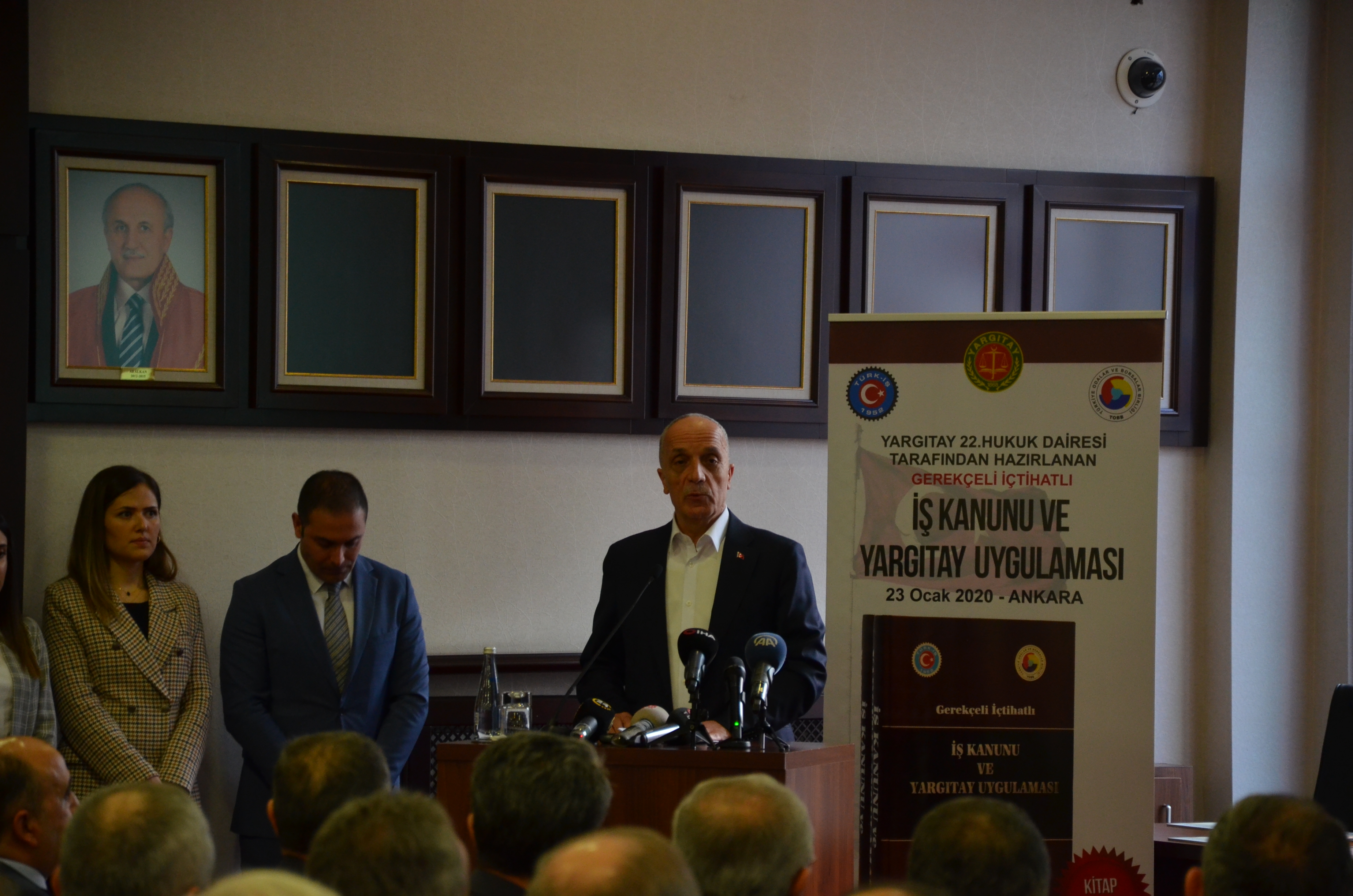 Yargıtay Başkanı CİRİT konuşmasında, birinci ve ikinci sanayi devrimiyle çalışma hayatındaki şartların değiştiğini, işçi ve işveren ilişkilerinin karmaşık bir hale dönüştüğünü ve sendikaların kurulmasıyla bu durumun düzelmesi için bir adım atıldığını ancak dördüncü sanayi devrimini yaşadığımız bugünlerde halen ideal noktaya gelinmediğini aktardı.