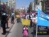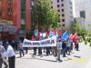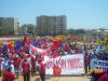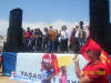 Mersin’de son 10 yılın en yoğun katılımı ile 1 Mayıs coşkuyla kutlandı. Tertip komitesi başkanlığını Şube Başkanımız Adil Alaybeyoğlu’nun yaptığı miting saat 11.00 de Devlet Hastanesi önünden başlayıp metropol miting alanında devam etti. İstanbul’da yaşanan AKP faşizmi protesto edilerek sorumluların derhal istifası istendi. Mitingte bir konuşma yapan Adil Alaybeyoğlu “çocuklarımıza yaşanası bir dünya için verdiğimiz mücadeleyi bugüne kadar kimse durduramadı. Bugün AKP’nin ve işbirlikçilerinin de gücü yetmeyecek diyerek AKP’nin emek düşmanı politikalarını vurgulayarak ayaklar baş olsun dünya yıkılsın, yıkılacak olan dünya sermayenin AKP’nin dünyası olacak” dedi.