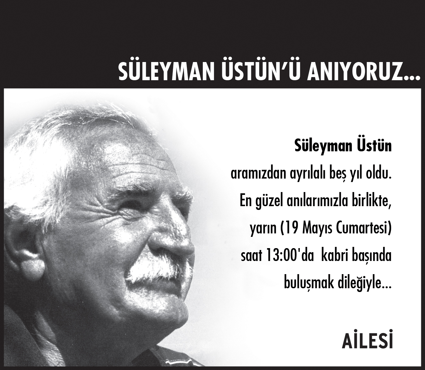 Sendikamız eğitimcisi Süleyman Üstün Hocamızı ölümünün beşinci yılında Zincirlikuyu Mezarlığı’ndaki kabri başında, ailesi ve sevenleriyle birlikte anıyoruz.