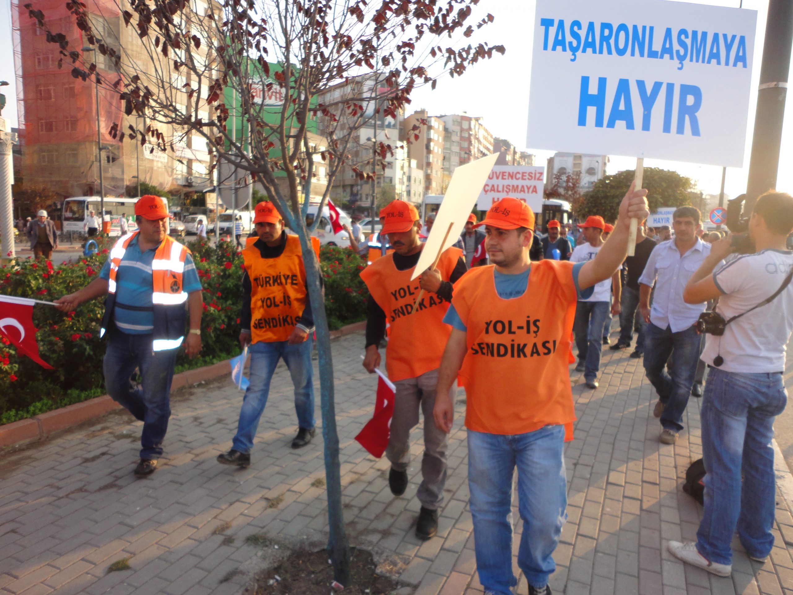 Daha sonra konuşan Yol-İş 1.nolu Şube başkanı Muharrem Yıldız ise “Yol-İş in hukuk kazanımlarının ortadan kaldırma noktasında sürdürülen yasal düzenlemeler ve ardından hayata geçirilmek istenen yeni iş kanunu ile gerek kamu, gerekse özel sektörlerin eylem ve direnme gücü kırılmış çalışan kesimle donatılacak işçi çalıştırma ofislerinin oluşturulacağını, bu uygulamanın kelimenin tanımı ile yeni köle düzeni olduğunu” söyledi. Yıldız “Yapılmak istenen hırsızlıkları kent kent gezerek AKP teşkilatları önlerinde vatandaşa anlattıklarını birçok kentte Bandırma da olduğu gibi iktidarın kamu gücünü kullanarak parti teşkilatlarının önlerinde eylem yaptırmadığını” söyledi. İktidarın bu köle düzenini bozmak adına verdikleri mücadelenin, Hem hukuk, hem de eylem bazındaki mücadelenin devam edeceğini belirten başkan Yıldız yeni oluşturulmak istenen işçi ofisleri ile çalışan kesimi ıslah ederken, Devletin trilyonluk iş makinelerinin de depolarda saklanarak kısa bir süre sonra iş satın alımı yöntemi ile yandaşlara ihale edilecek yol yapım çalışmaları için bu kişilere iş makinelerinin peşkeş çekileceğini söyledi.
