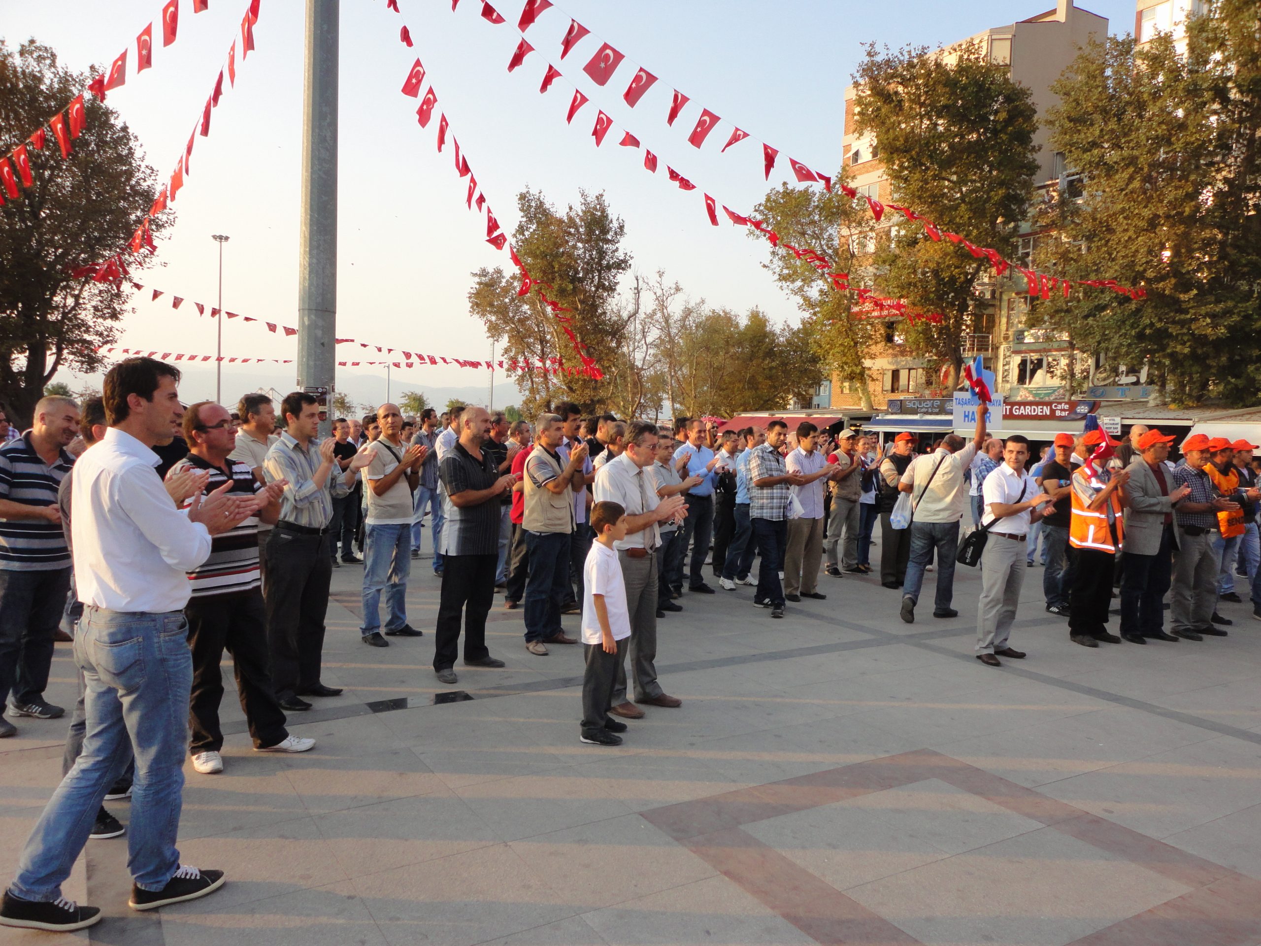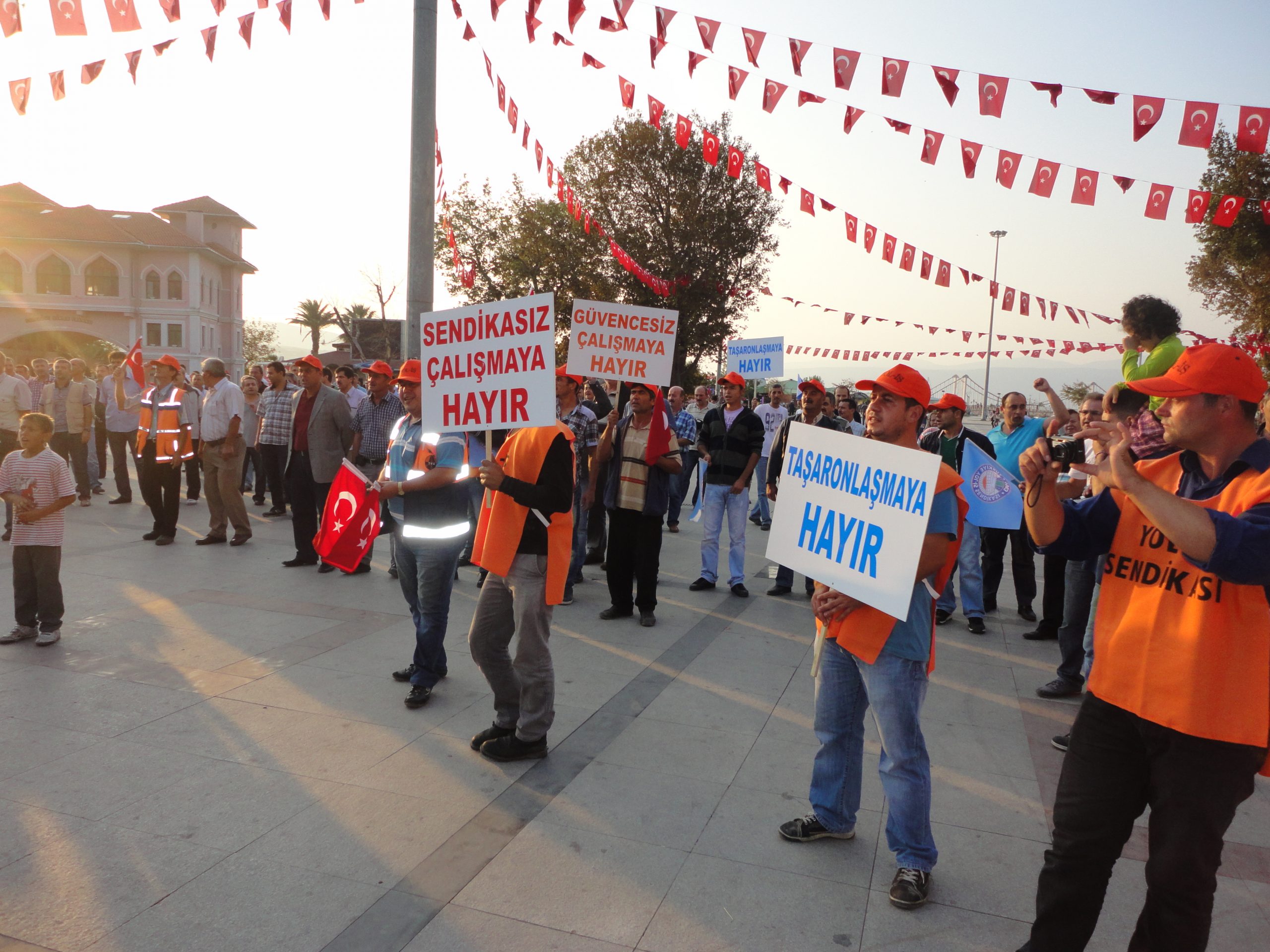 Örgütlü toplum bilincini benimsemiş Bandırma’lı işçiler mesai bitimi toplandıkları Menderes meydanından Cumhuriyet alanına yürüdüler.