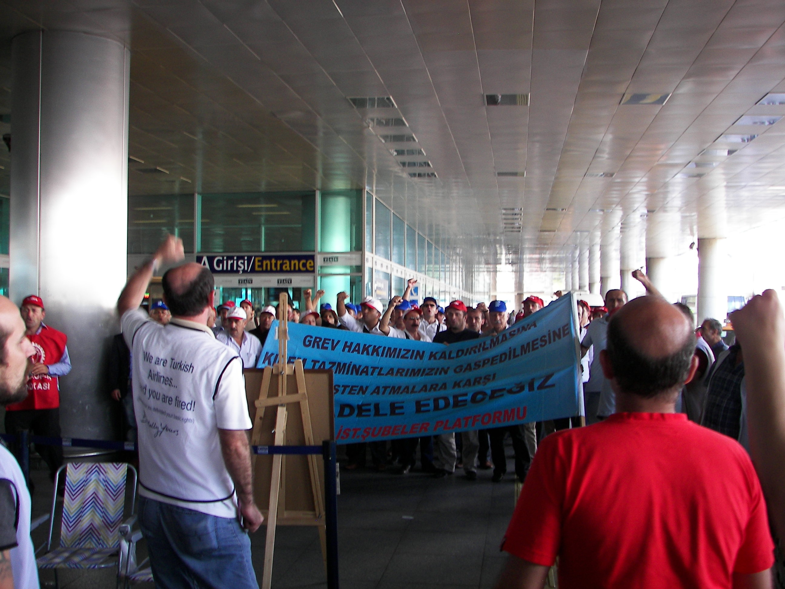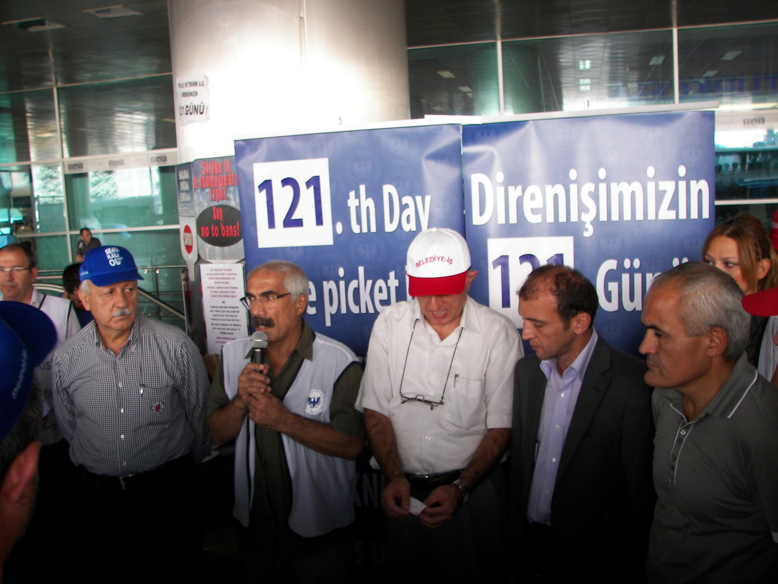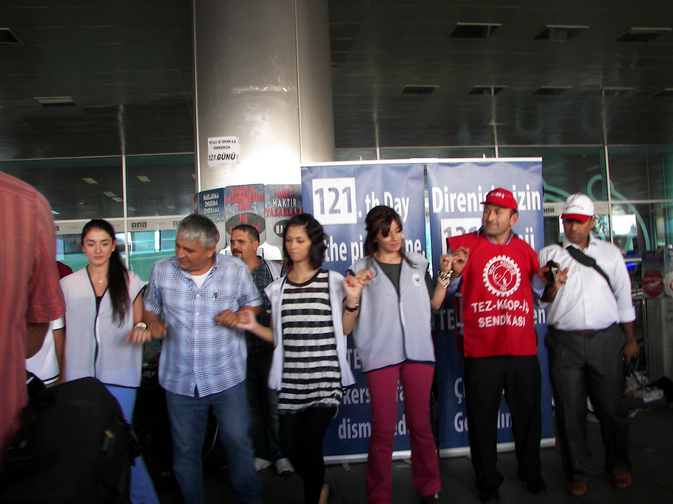 Daha sonra Atatürk Havalimanına bir yürüyüş düzenleşerek 121 gündür direnen yiğit Hava-İş üyesi işçilere dayanışma ziyaretinde bulunan emekçileri, buradaki THY işçileri coşkuyla karşıladı. Emekçilere bu ziyaretlerinden dolayı teşekkür eden Hava-İş Genel Başkanı Atilay Ayçin burada yaptığı konuşmada, Türk-İş’in THY işçilerinin direnişini görmezden gelmesini eleştirerek, “Yeter ki sınıf kardeşlerimiz aramızda olsunlar” dedi. Ayçin şöyle konuştu: