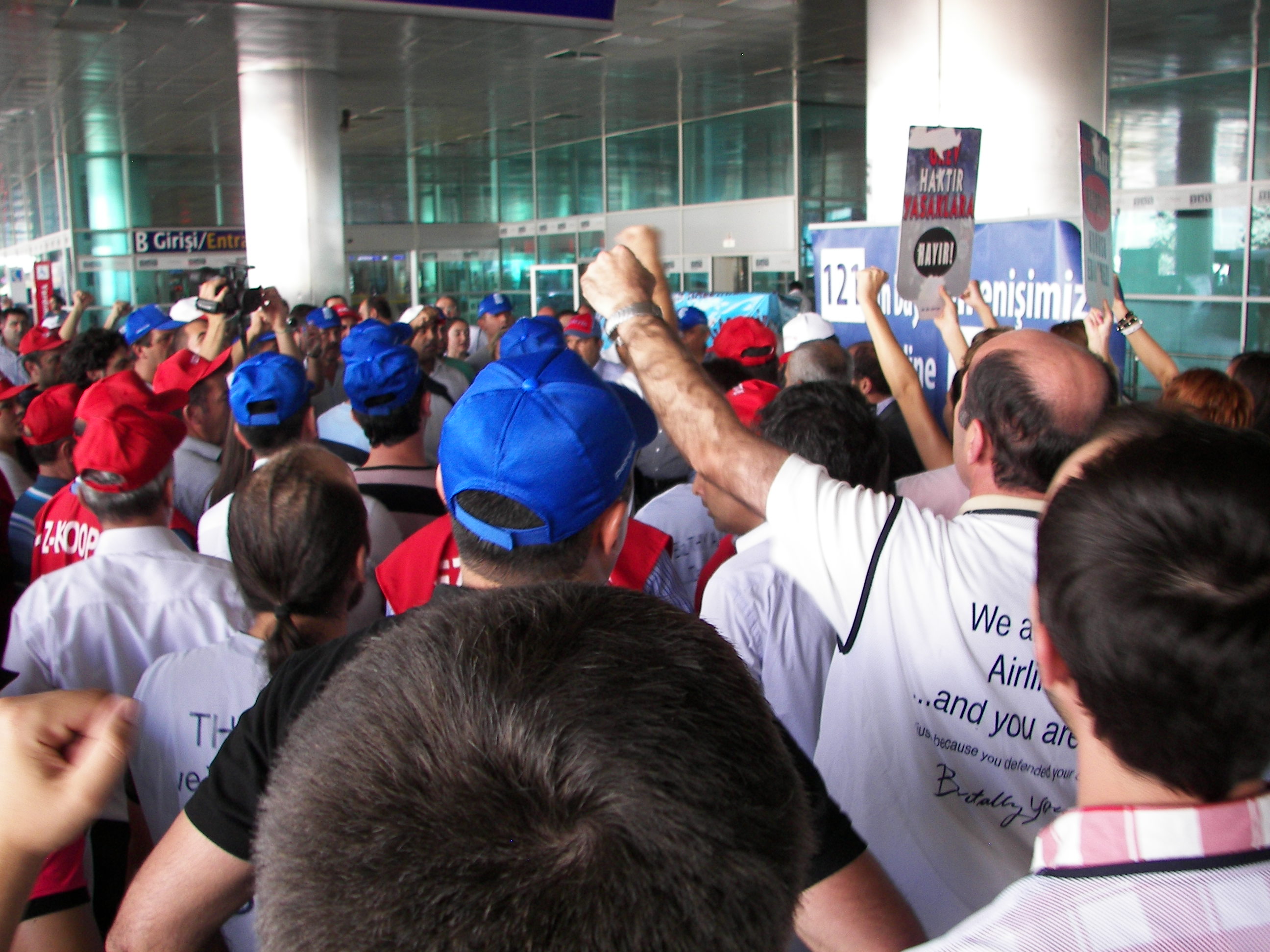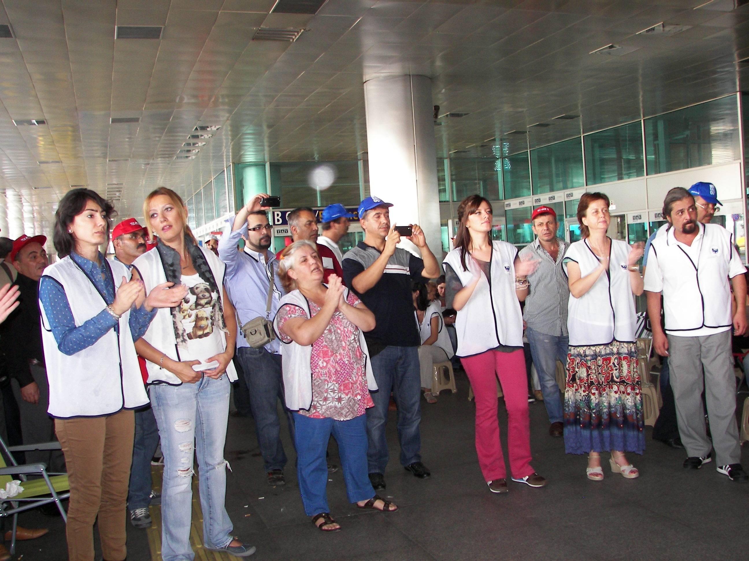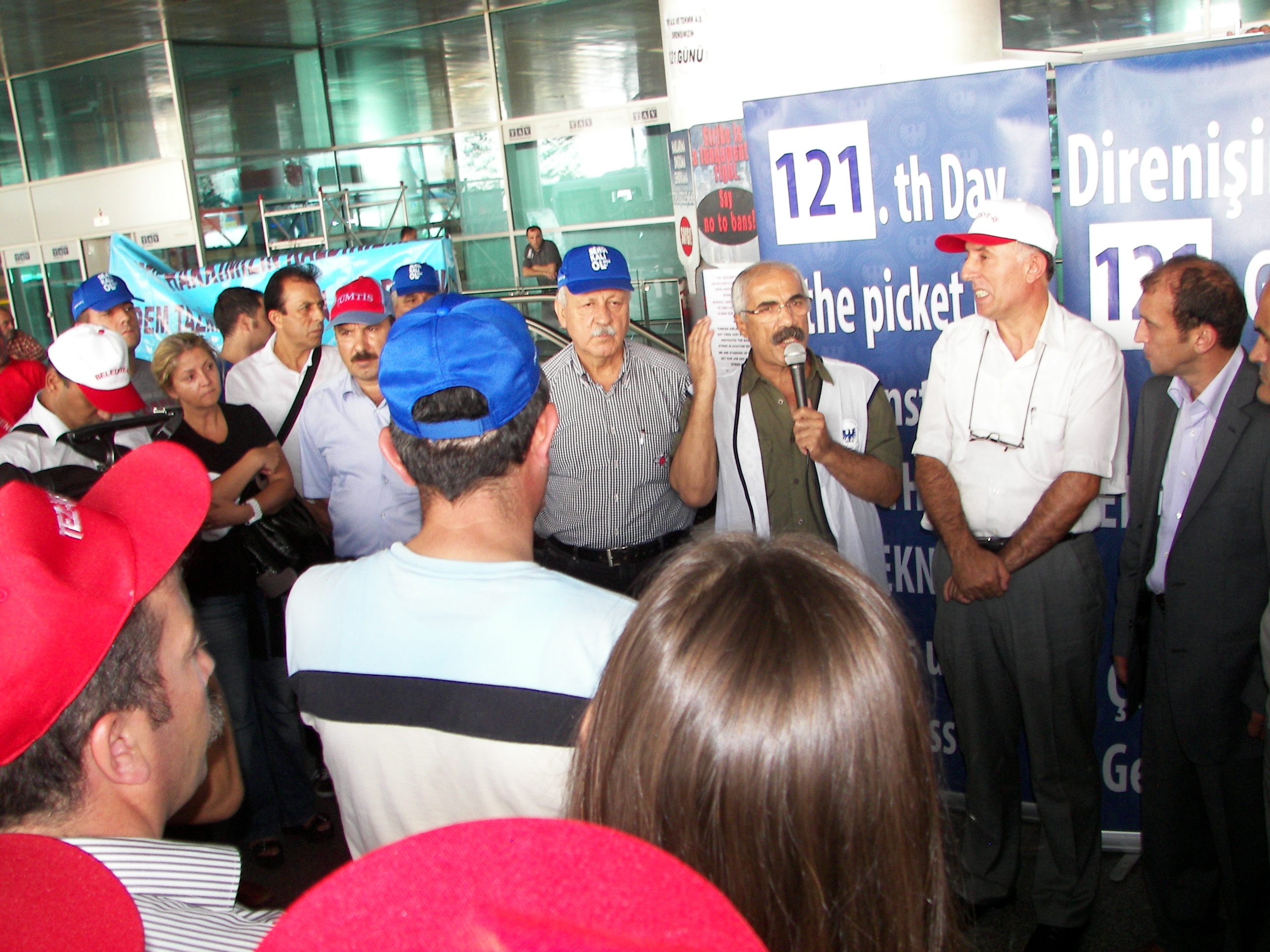 Daha sonra Atatürk Havalimanına bir yürüyüş düzenleşerek 121 gündür direnen yiğit Hava-İş üyesi işçilere dayanışma ziyaretinde bulunan emekçileri, buradaki THY işçileri coşkuyla karşıladı. Emekçilere bu ziyaretlerinden dolayı teşekkür eden Hava-İş Genel Başkanı Atilay Ayçin burada yaptığı konuşmada, Türk-İş’in THY işçilerinin direnişini görmezden gelmesini eleştirerek, “Yeter ki sınıf kardeşlerimiz aramızda olsunlar” dedi. Ayçin şöyle konuştu: