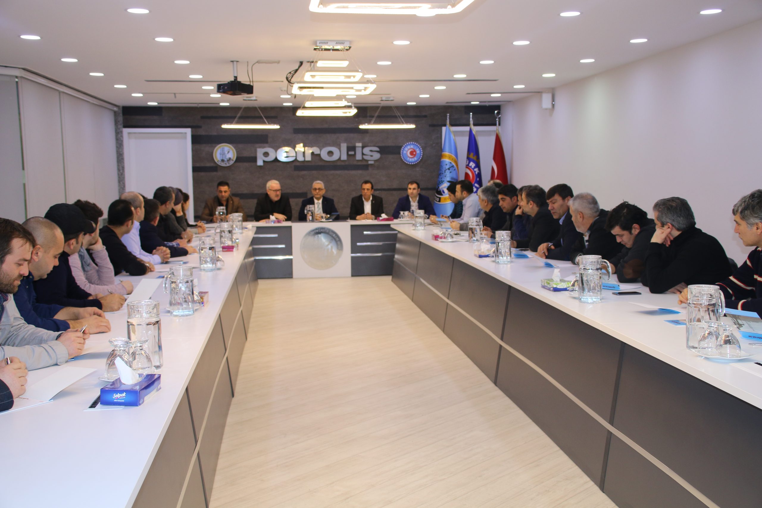 İstanbul 1 Nolu Şubemizin Temsilciler Kurulu toplantısı 28 Şubat Salı günü Genel Merkezimizde yapıldı. Genel Başkanımız Ali Ufuk Yaşar, Genel Yönetim Sekreterimiz Ünal Akbulut’un katılımıyla gerçekleşen toplantıda İst 1 Nolu Şube Başkanımız Ahmet Baranlı, Şube Başkan Yardımcımız Yılmaz Akay, Şube Başkan Yardımcımız (Mali) Abidin Kaya ve İşyeri Temsilcileri de yer aldı.Toplantının açılış konuşmasını Genel Başkanımız Ali Ufuk Yaşar yaptı. Ardından toplu iş sözleşmeleri görüşmelerine, işyerlerinde yaşanan sorunlara, ülke ve sendika gündemine dair değerlendirmeler yapıldı. Genel Başkanımız Ali Ufuk Yaşar, İstanbul 1 Nolu Şube Yöneticilerimize ve üyelerimize yeni dönemin hayırlı olmasını diledi.