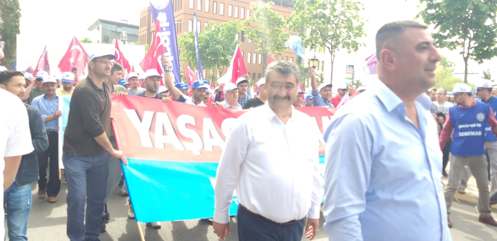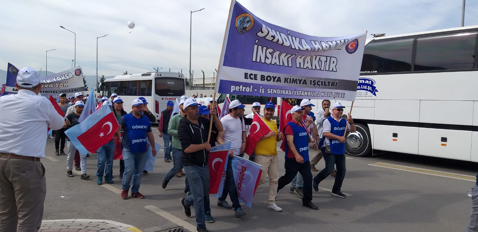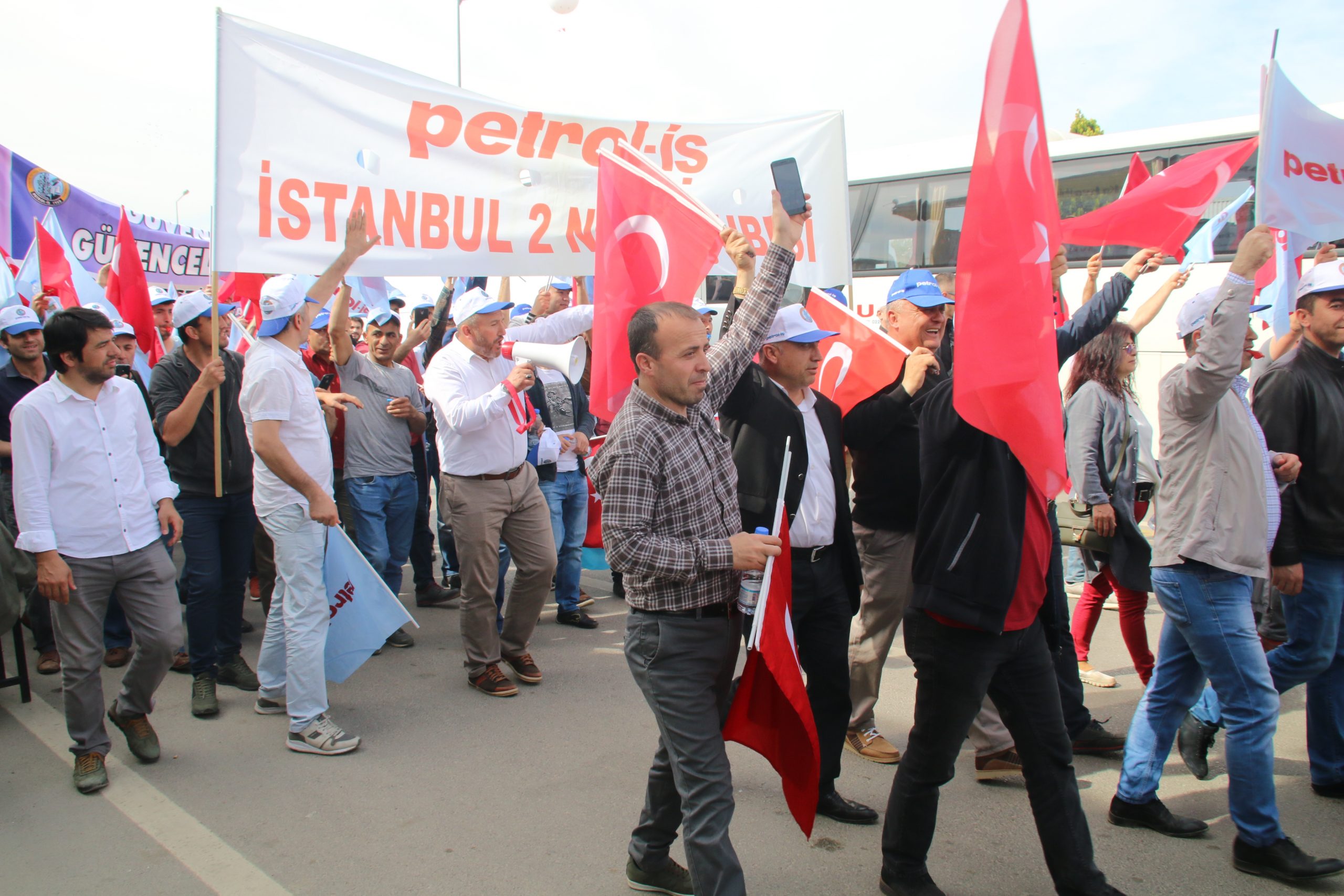 Merkez Yönetim Kurulu Raportörü Yavuz Katırancı ve Merkez disiplin Kurulu Başkanı Hasan Akçay’ın da yer aldığı etkinlikte sendikamızı temsilen Ankara, Bursa, Düzce, Kocaeli, Gebze, İstanbul 1 ve İstanbul 2 Nolu Şube Başkan Yardımcılarımız ve şube üyelerimiz de yerlerini aldılar. Coşkulu ve kitlesel bir kortej oluşturan Petrol-İş üyeleri, İtfaiye Müdürlüğü Meydanı’ndan miting alanına kadar davullar zurnalar eşliğinde yürüdüler .