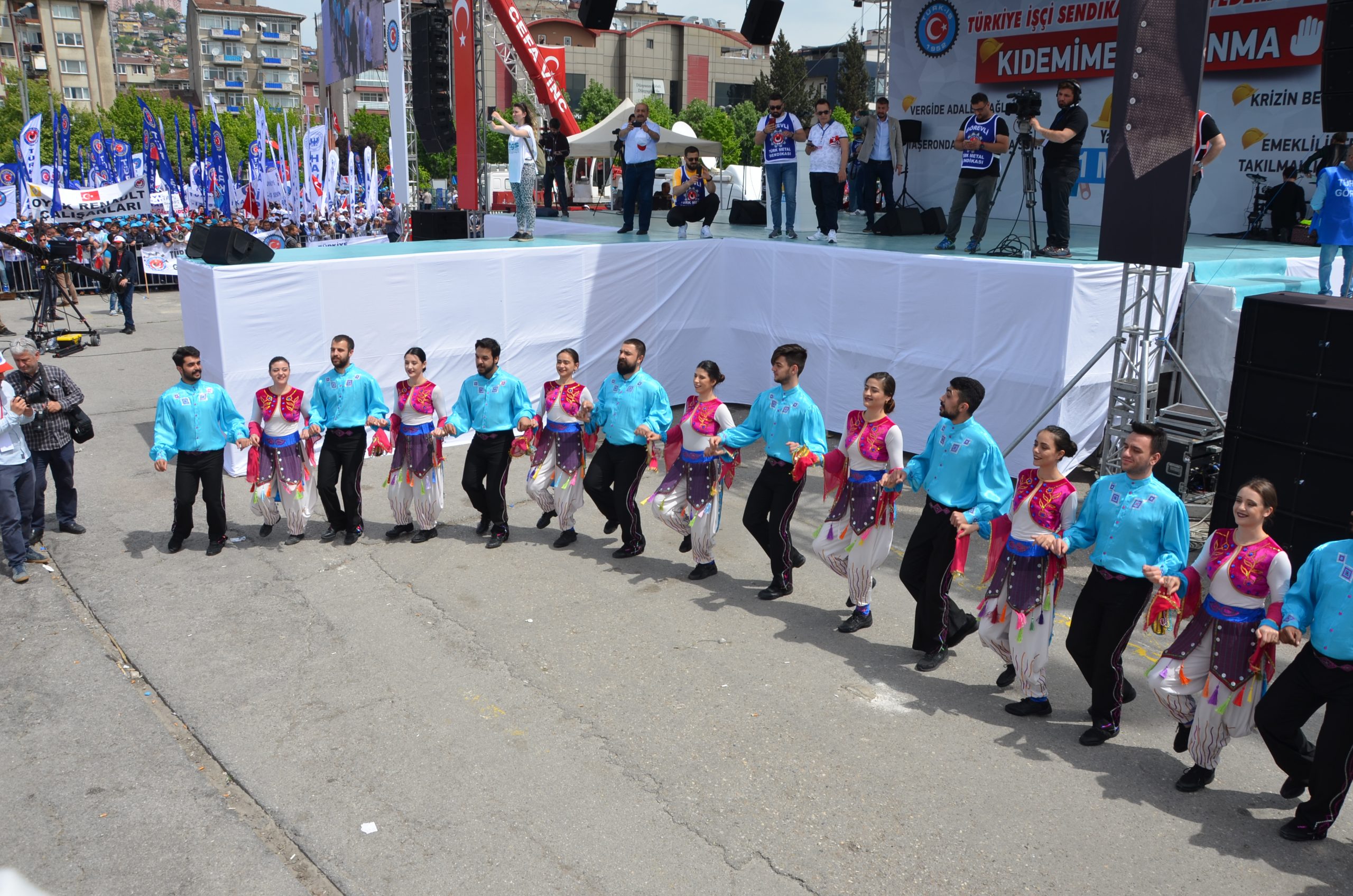 En önde Türk-İş’e bağlı tüm sendikaların genel başkanlarının aralarında Genel Başkanımız Ali Ufuk Yaşar’ın bulunduğu kortej ile yürüyüşün ardından  miting meydanına ulaşıldı. Program öncesi Metalin Sesi Grubu konser verdi, dans topluluğu gösteri yaptı. Saygı duruşunda bulunulması ve İstiklal Marşı’nın okunmasıyla başlayan programda, platformun yan tarafına dev “Kıdemime Dokunma” pankartı asıldı.