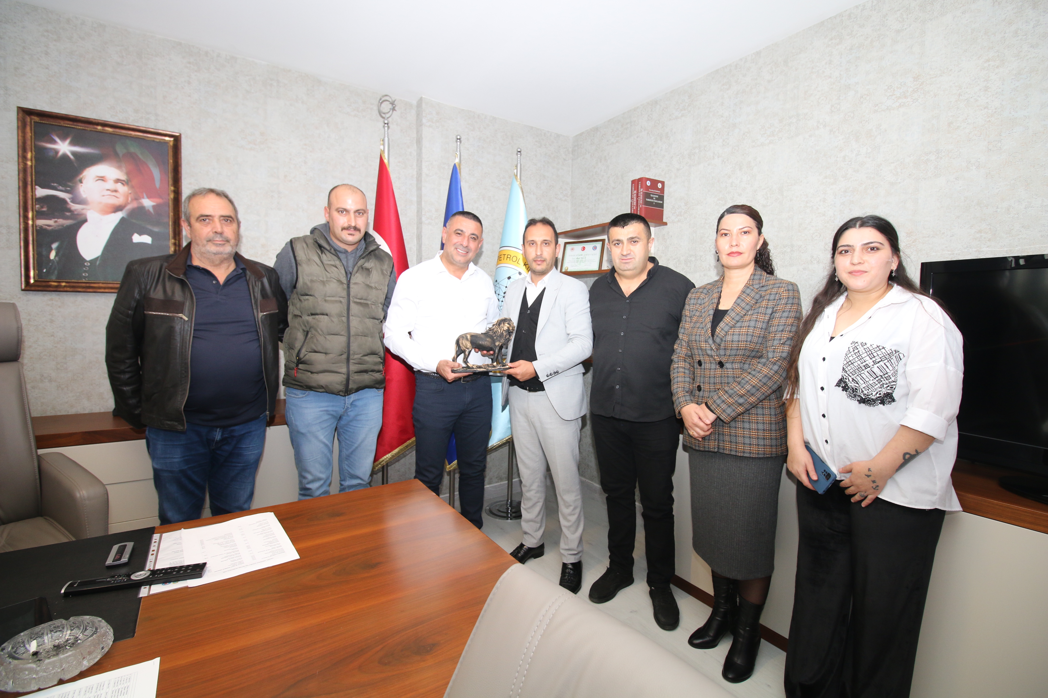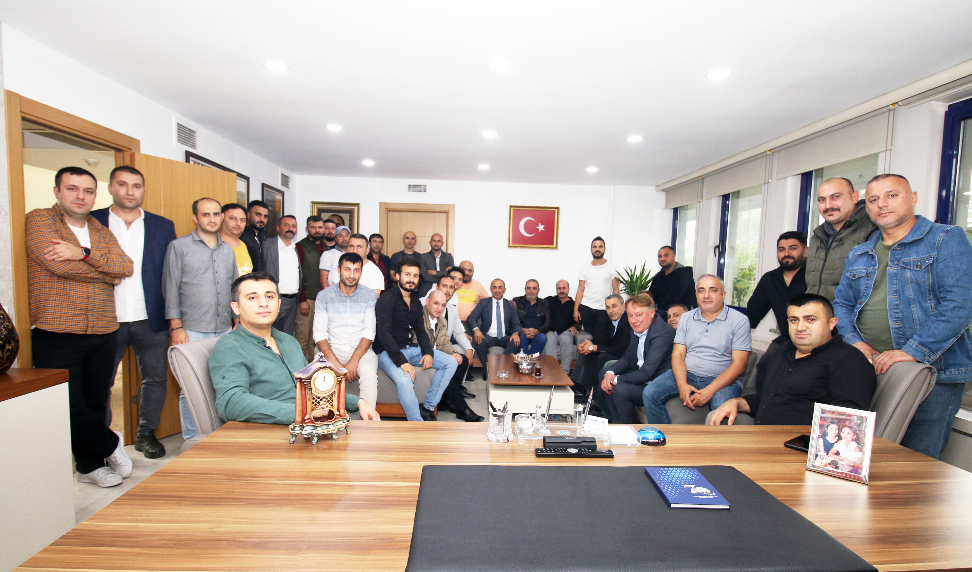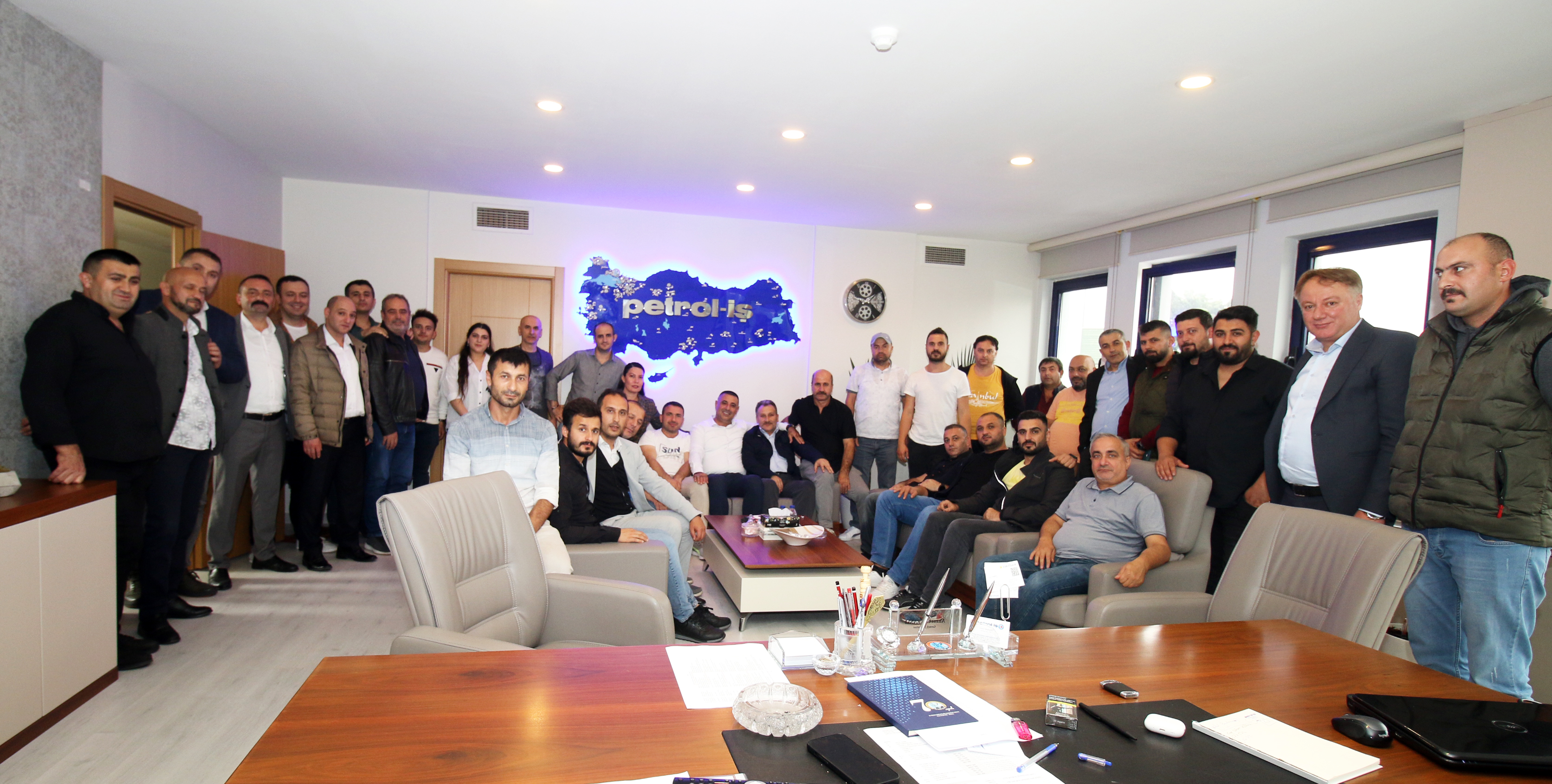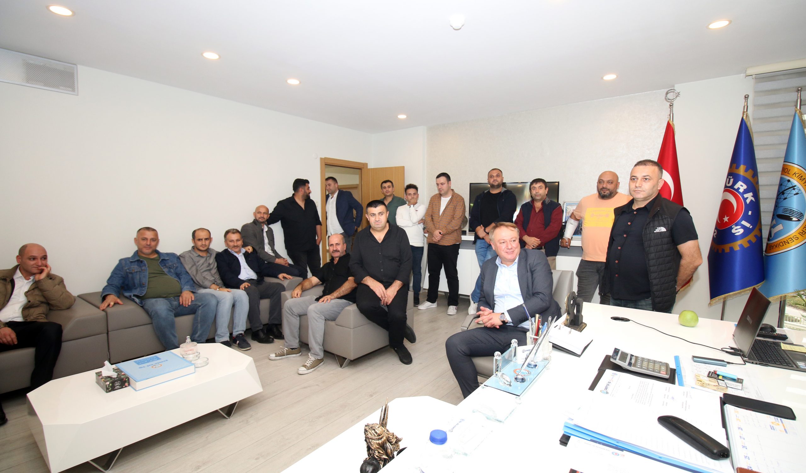 Sendikamız İstanbul 2 Nolu Şube Yönetim, Denetim ve Disiplin Kurulları ile şubemizin örgütlü olduğu işyerlerinden temsilciler 26 Ekim Perşembe günü Genel Merkez Yöneticilerimizi ziyaret ettiler. Genel Başkan Süleyman Akyüz, Genel Sekreter Ahmet Baranlı, Genel Mali Sekreter Mehmet Kaya ve Genel Yönetim Sekreteri Ali Haluk Koşar ile biraraya gelen şube heyeti Genel Merkez Yöneticilerine görevlerinde başarılar dilediler. Hediye takdiminin ardından ziyaret iyi dilek temennilerinin iletilmesinden ardından sona erdi.