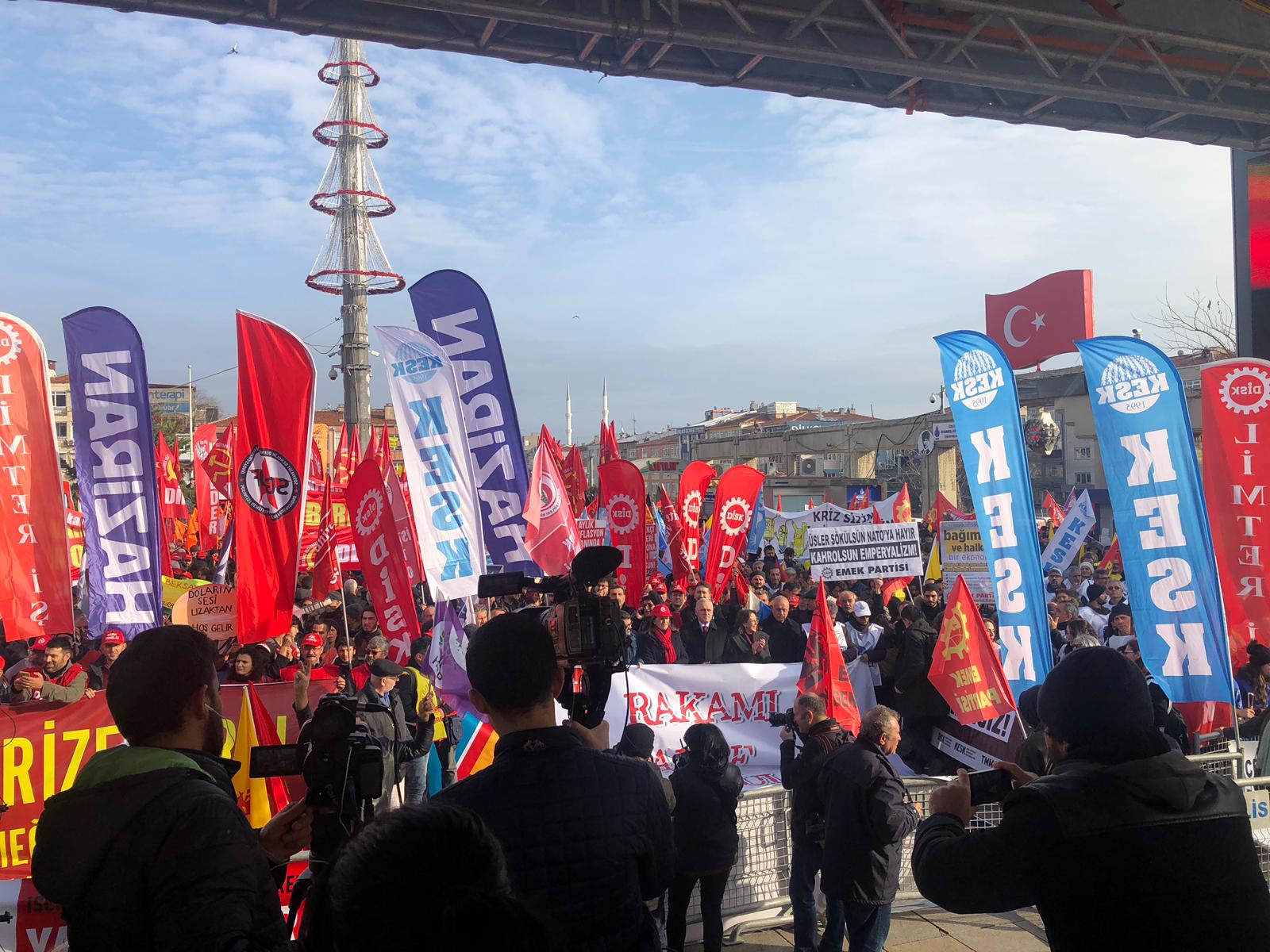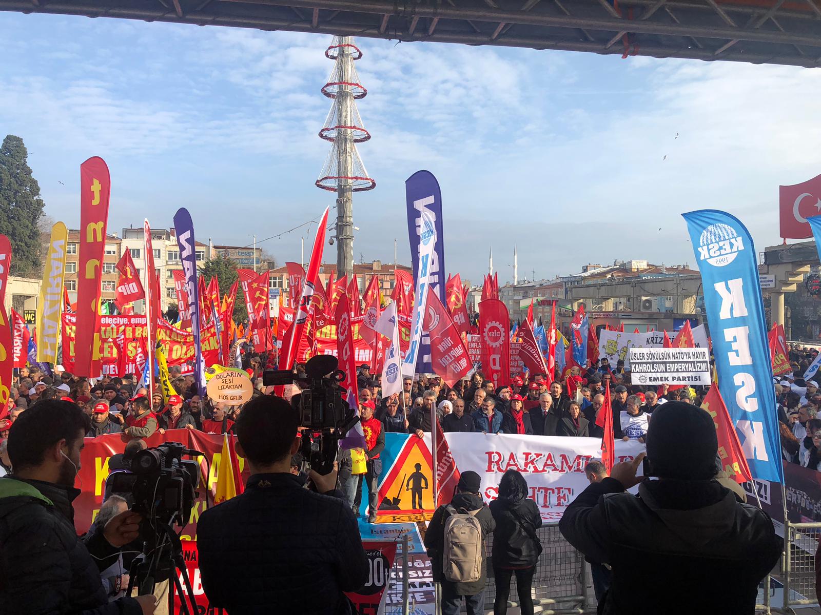 22 Aralık Cumartesi günü Bakırköy’de, Devrimci İşçi Sendikaları Konfederasyonu (DİSK), Kamu Emekçileri Sendikaları Konfederasyonu (KESK), Türk Mühendis ve Mimar Odaları Birliği (TMMOB) ve Türk Tabipler Birliği (TTB) öncülüğünde İstanbul Bölge Mitingi düzenlendi. Türk-İş’e bağlı sendikaların yönetici ve üyelerinin de yer aldığı miting korteji “Krizin Bedelini Ödemeyeceğiz” şiarı ve binlerce kişinin katılımıyla ile İncirli Caddesi’nden Bakırköy Özgürlük Meydanı’na yürüdü.