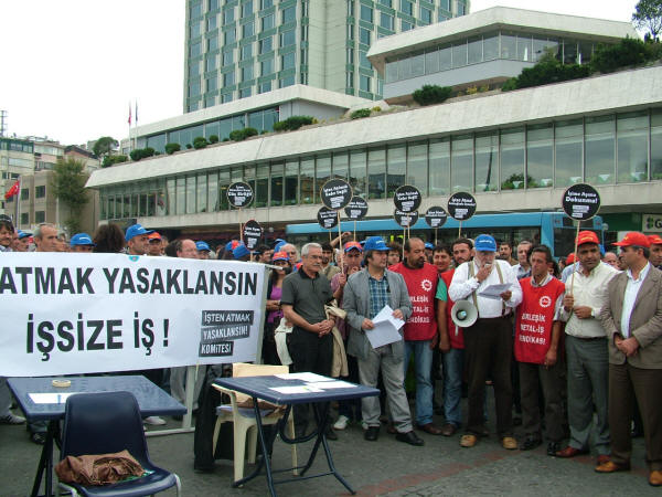 Oysa, “biz işçi sınıfıyız, bu bizi zerre kadar ilgilendirmediği halde, siz kâr edesiniz diye, size sattığımız emeğimizin karşılığı olarak, sizden insanca yaşamamızı sağlayacak bir ücret ve bu ücreti alacağımız işin güvencesini talep ediyoruz” diyerek harekete geçen biz emekçi örgütleri ve onların yandaşları olarak oluşturmuş olduğumuz “İŞTEN ATMAK YASAKLANSIN KOMİTESİ” şu andan itibaren Türkiye çapında “İşten Atmak Yasaklansın! Herkese İş!” şiarıyla bir imzakampanyasını başlatmış bulunmaktadır. Bundan sonra da bu yolda mücadele edecek her işçi örgütünün katılımına açık olan bu komitenin hedefi 2009 yılının sonuna kadar geçecek olan süre içinde yukarıdaki talep doğrultusunda bir yasanın çıkartılması için mücadele etmek ve böyle bir yasanın imzalarını mümkün olduğunca kitlesel bir katılımla Ankara’ya ulaştırmak olacaktır. Komiteye katılan sendikalar aşağıdaki metni bütün üyelerine imzalatmayı taahhüt etmiş bulunmaktadırlar. Komite işçi sendikalarının yanı sıra her il, ilçe, belde, mahalle ve köyde “İşten Atmak Yasaklansın Komiteleri”ni oluşturmayı ve bu komitelerin ülke çapında biraraya getirilmesini sağlamayı hedeflemektedir. Sendikalı-sendikasız bütün işçileri, bütün kamu çalışanlarını, bütün banka ve sigorta şirketi çalışanlarını, bütün kadınları, emeklileri, işsizleri, gençleri ve yoksul köylülerle çiftçileri bu kampanyaya destek vermeye ve bölgelerinde kampanyanın komitelerini oluşturmaya davet ediyoruz.