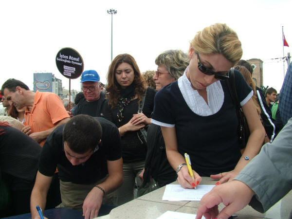 Kriz bahanesiyle milyonlarca kişinin işten atıldığı, her beş kişiden birinin işsiz olduğu, halen çalışanların da atılma tehdidi altında bulunduğu bir ülkede yaşıyoruz. Artık susmayacağız. Biz aşağıda imzası bulunanlar işten atmaların yasaklanması için TBMM’nin en kısa zamanda bir yasa çıkarmasını ve işsizlere yeni iş olanaklarının yaratılmasını istiyor, bu konuda her türlü mücadeleyi destekleyeceğimizi beyan ediyoruz.