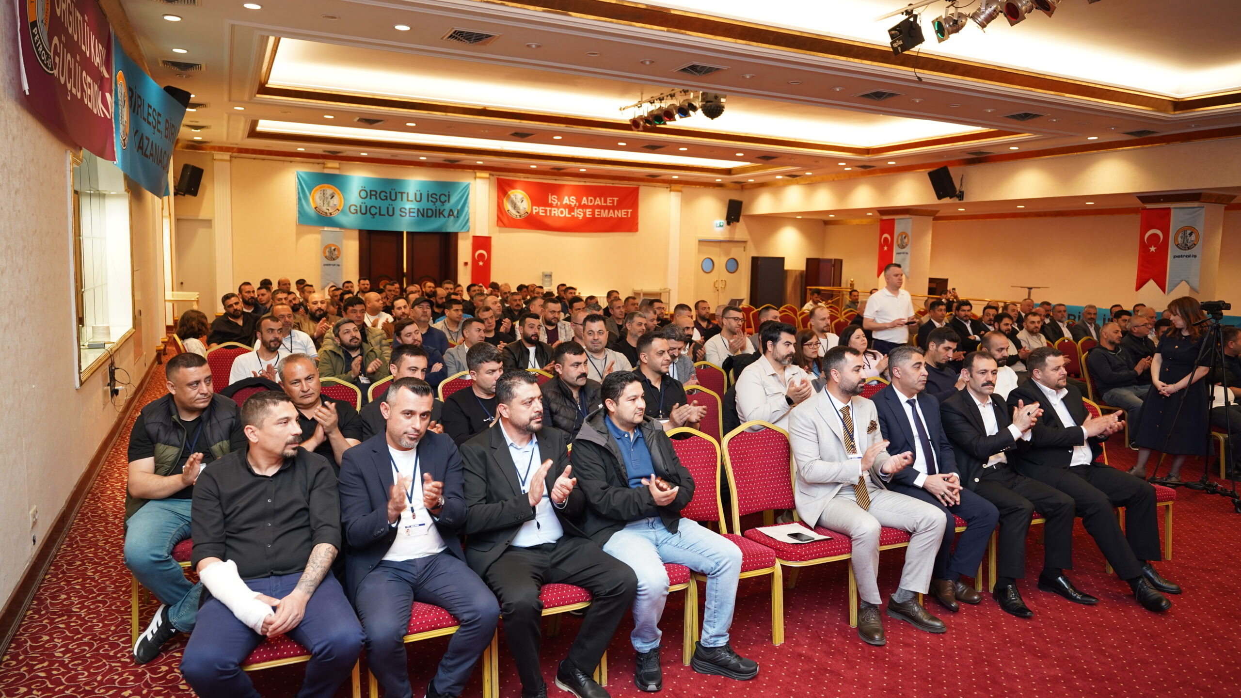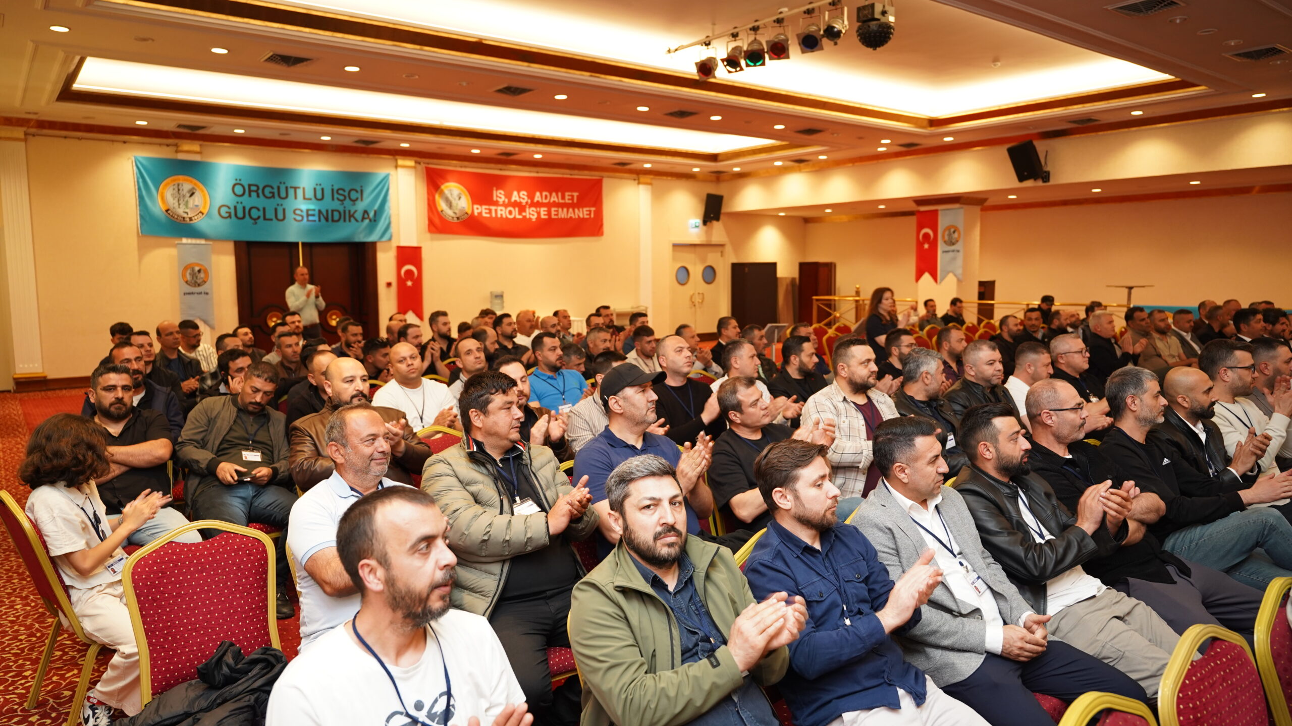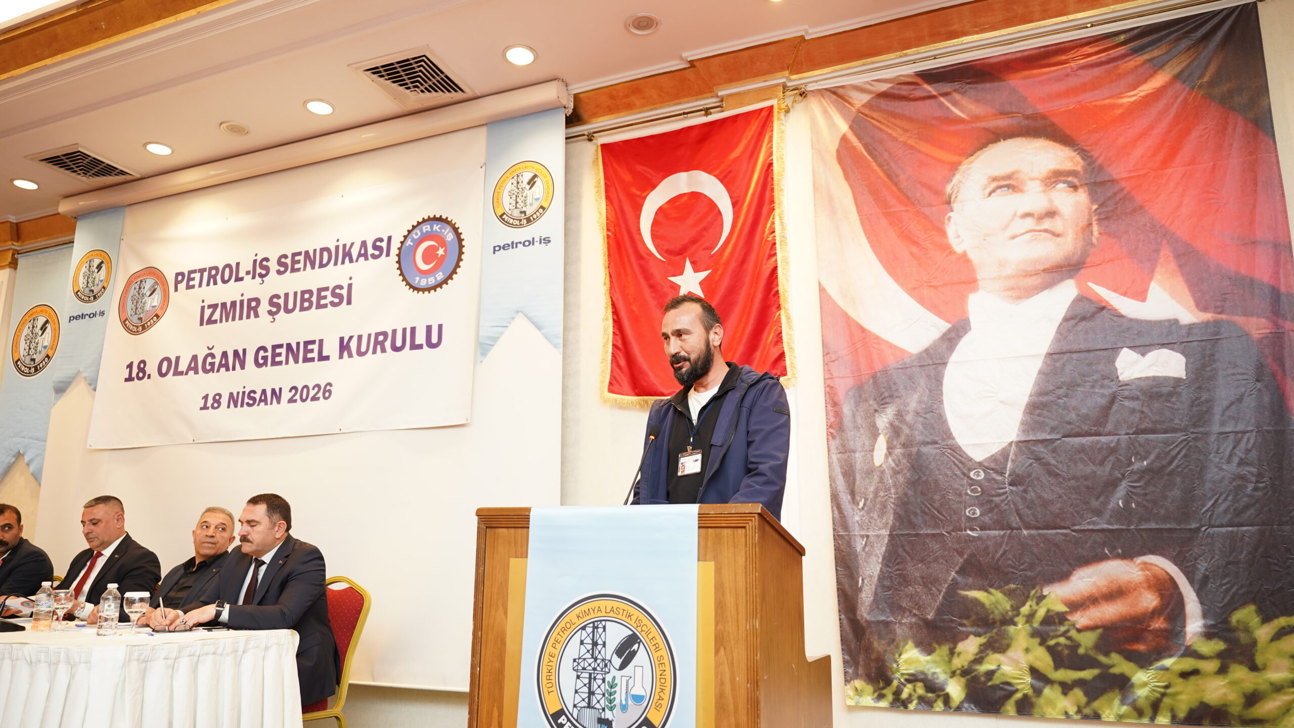 İzmir Şube Başkanı Cem Turan, konuşmasına son dört yıllık döneme ilişkin değerlendirmelerle başladı. Bu süreçte ortak akıl, demokratik katılım, üye ve temsilcilerle kurulan güçlü iş birliği sayesinde önemli kazanımlar elde ettiklerini vurgulayan Turan, İzmir Şubesi olarak yürüttükleri mücadeleyi ve toplu sözleşmelerle sağlanan kazanımları önümüzdeki dönemde daha da büyütme kararlılığında olduklarını ifade etti. 2025 yılında Dyo Boya’da 43 gün süren ve kazanımla sonuçlanan grevin kendileri için öğretici olduğunu belirten Turan, TPI örneğinin ise çıkarılması gereken önemli dersler barındırdığını söyledi. Uluslararası sermayenin pervasız tutumlarına karşı daha güçlü düzenlemelere ihtiyaç olduğunu dile getiren Turan, konuşmasını Genel Kurulun İzmir Şubesi, Petrol-İş Sendikası ve Türkiye işçi sınıfı açısından hayırlı olması temennisiyle tamamladı.