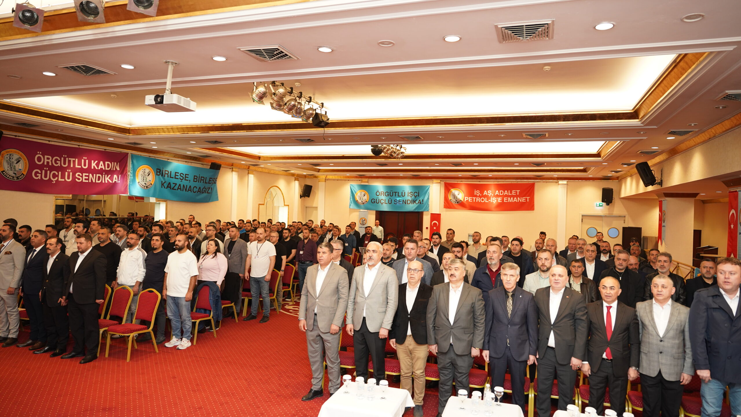 Divan Başkanı Ahmet Baranlı katılımcıları başta Cumhuriyetimizin kurucusu Gazi Mustafa Kemal Atatürk ve silah arkadaşları olmak üzere vatan savunmasında şehit düşenler ve iş cinayetlerinde hayatını kaybeden emekçiler için saygı duruşuna davet etti ve ardından İstiklal Marşı okundu.