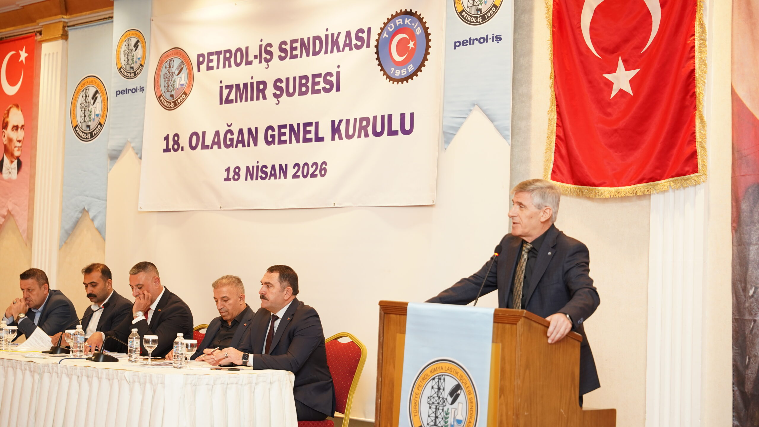 İzmir Şube’nin tarihsel önemine dikkat çeken Akyüz, genel kurulun şubenin kuruluşunun 70. yılına denk gelmesini “anlamlı bir tesadüf” olarak nitelendirdi. İzmir Şube’nin, Petrol-İş Sendikası’nın İstanbul dışına taşarak Anadolu’daki işçi havzalarına açıldığı ilk önemli merkezlerden biri olduğunu vurgulayan Akyüz, şubenin sendika tarihindeki mücadelelerde kritik bir rol oynadığını ifade etti. 1987’deki “63 Grev” sürecinde İzmir Şubesi’nin öncü konumuna da değinen Akyüz, “Onca zorluğa rağmen sendikamızın bayrağı İzmir’de dalgalanmaya devam ediyor” dedi.