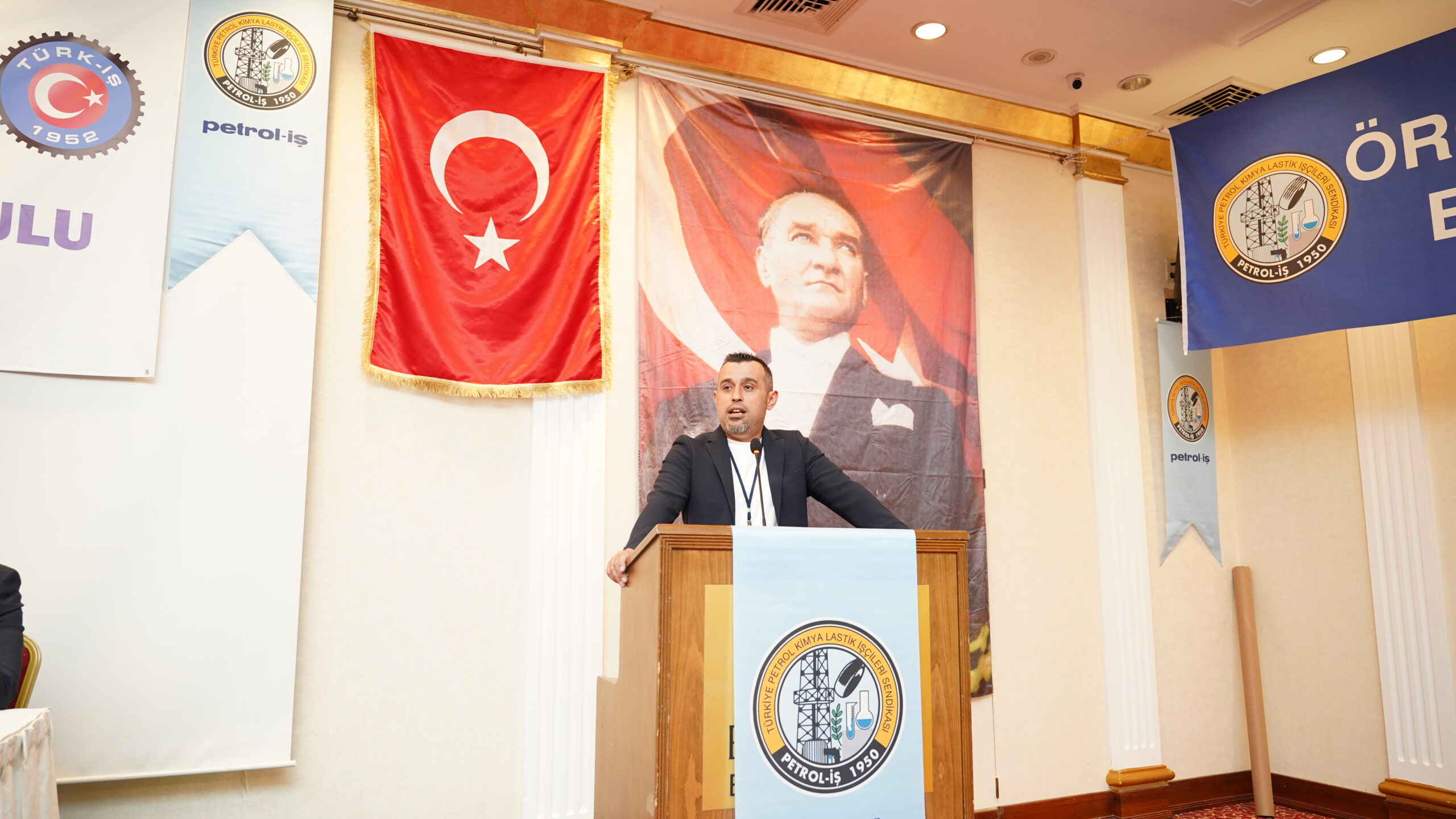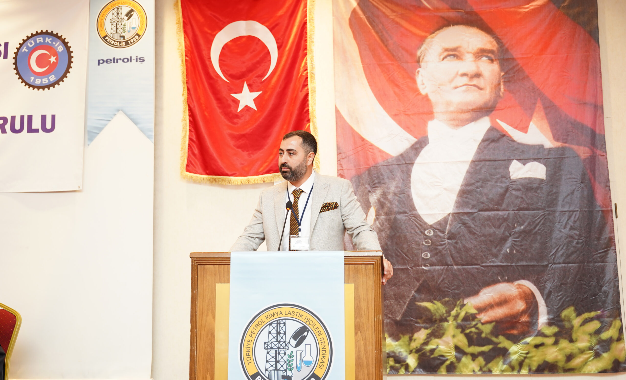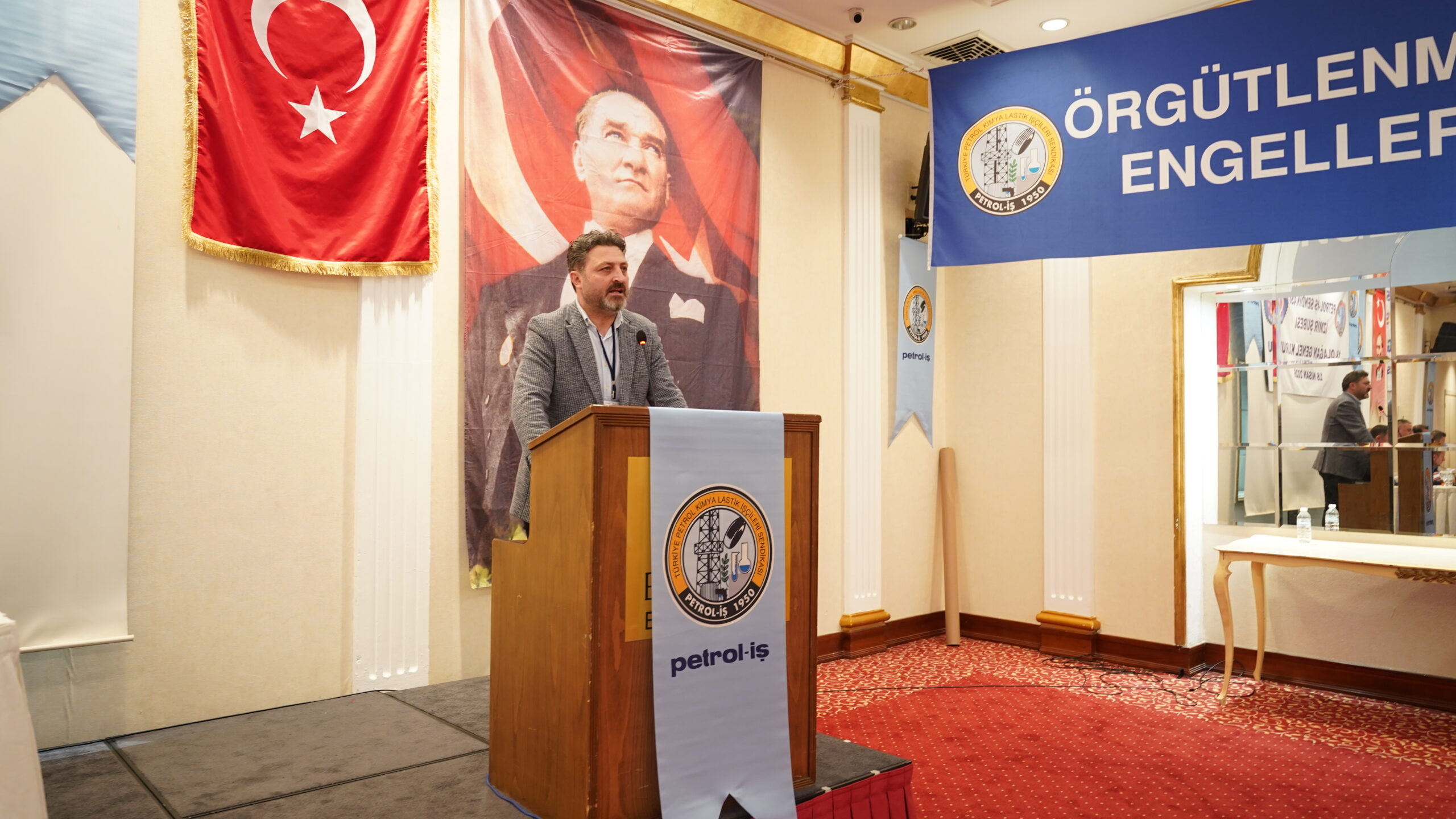 Genel Başkanın konuşmasının ardından kürsüye gelen Türk-İş Ege Bölge Temsilcisi Hayrettin Çakmak, İzmir’in son yıllarda önemli işçi mücadelelerine sahne olduğunu vurguladı. Bu mücadelelerin önemli bir bölümünün Petrol-İş öncülüğünde gerçekleştiğini belirten Çakmak, İzmir Şube’nin öncülüğünde DYO ve TPI işyerlerinde aylar süren grevlerin yaşandığını hatırlattı. Aliağa Şube tarafından sürdürülen Temel Conta grevinin ise 500’üncü gününe yaklaştığını ifade eden Çakmak, direnişteki işçileri selamladı.