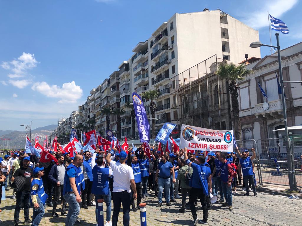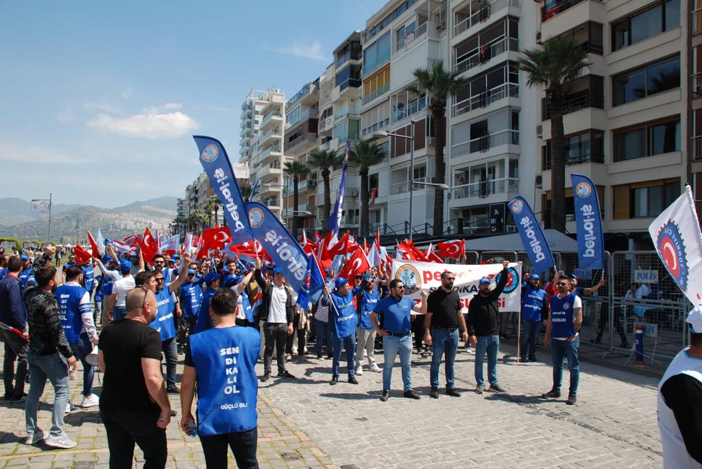 1 Mayıs İşçilerin Uluslararası Birlik, Mücadele ve Dayanışma günü İzmir’de, Gündoğdu Meydanın’da coşkulu bir şekilde kutlandı. Sendikaların öncülük ettiği 1 Mayıs kutlamasına katılım oldukça fazlaydı. Sendikamız İzmir Şube Yöneticileri ve Şubemize bağlı işyerlerinden üyelerimiz de haklarını korumak, taleplerini dile getirmek için Gündoğdu Meydanın’daydılar.