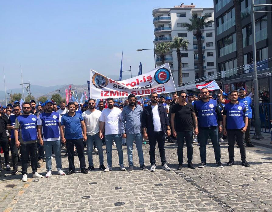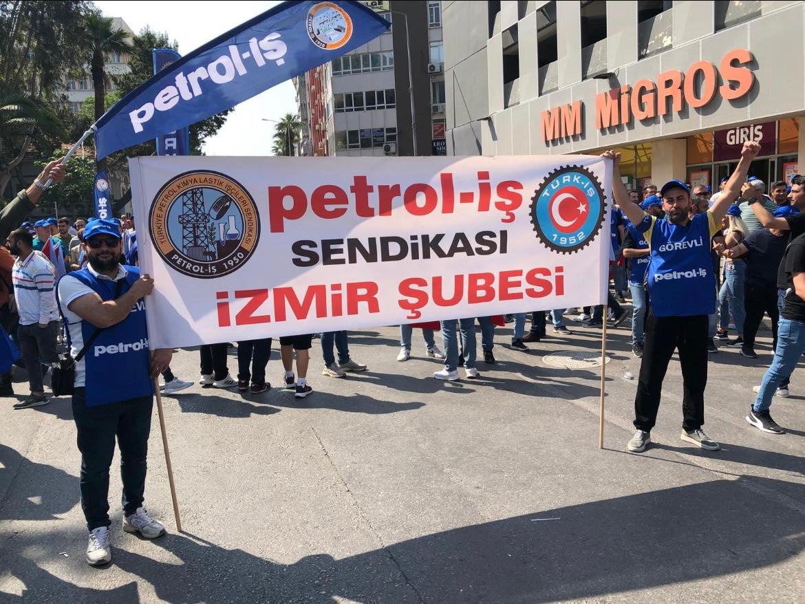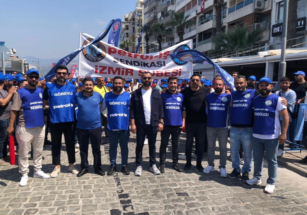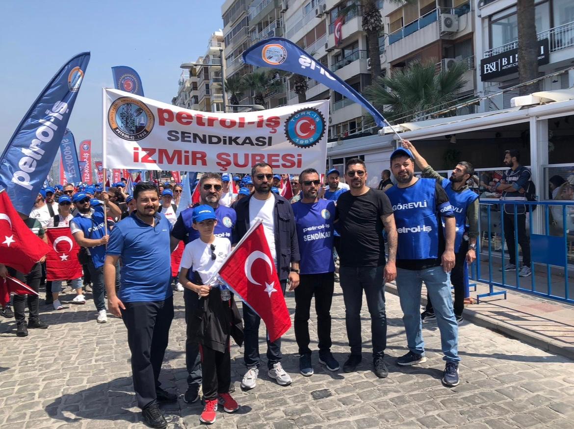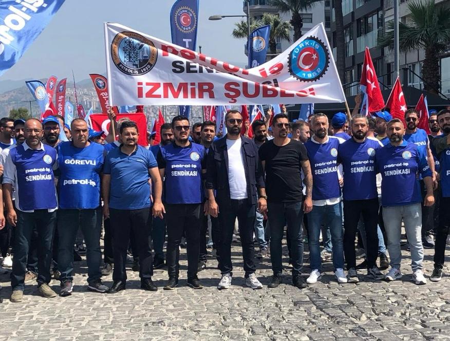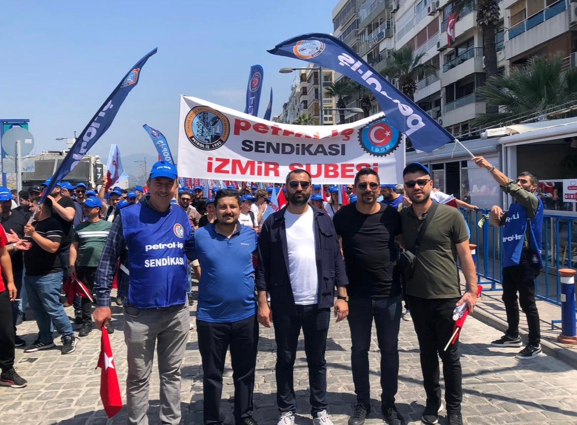 Sendikamız İzmir Şubesi 1 Mayıs İşçilerin Uluslararası Mücadele ve Dayanışma günü için Gündoğdu Meydanı’nda bir araya geldi. 1 Mayıs Tertip Komitesi tarafından organize edilen kutlamaya İzmir Şube Yöneticileri ve şubemizin örgütlü olduğu işyerlerinden üyelerimiz yoğun katılım gösterdiler. iş cinayetlerinin son bulması, vergide adaletin sağlanması ve insanca geçinebilecek bir ücret talep edildi.