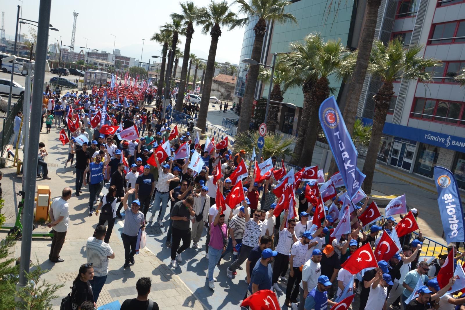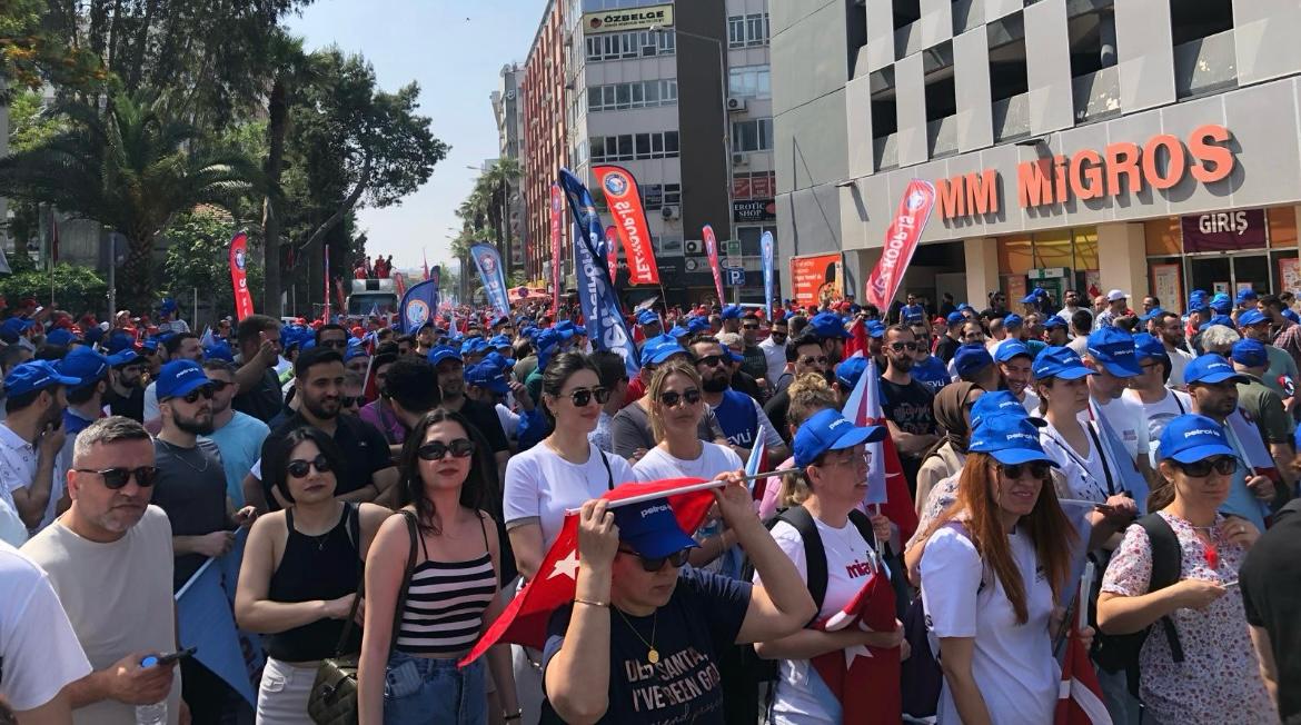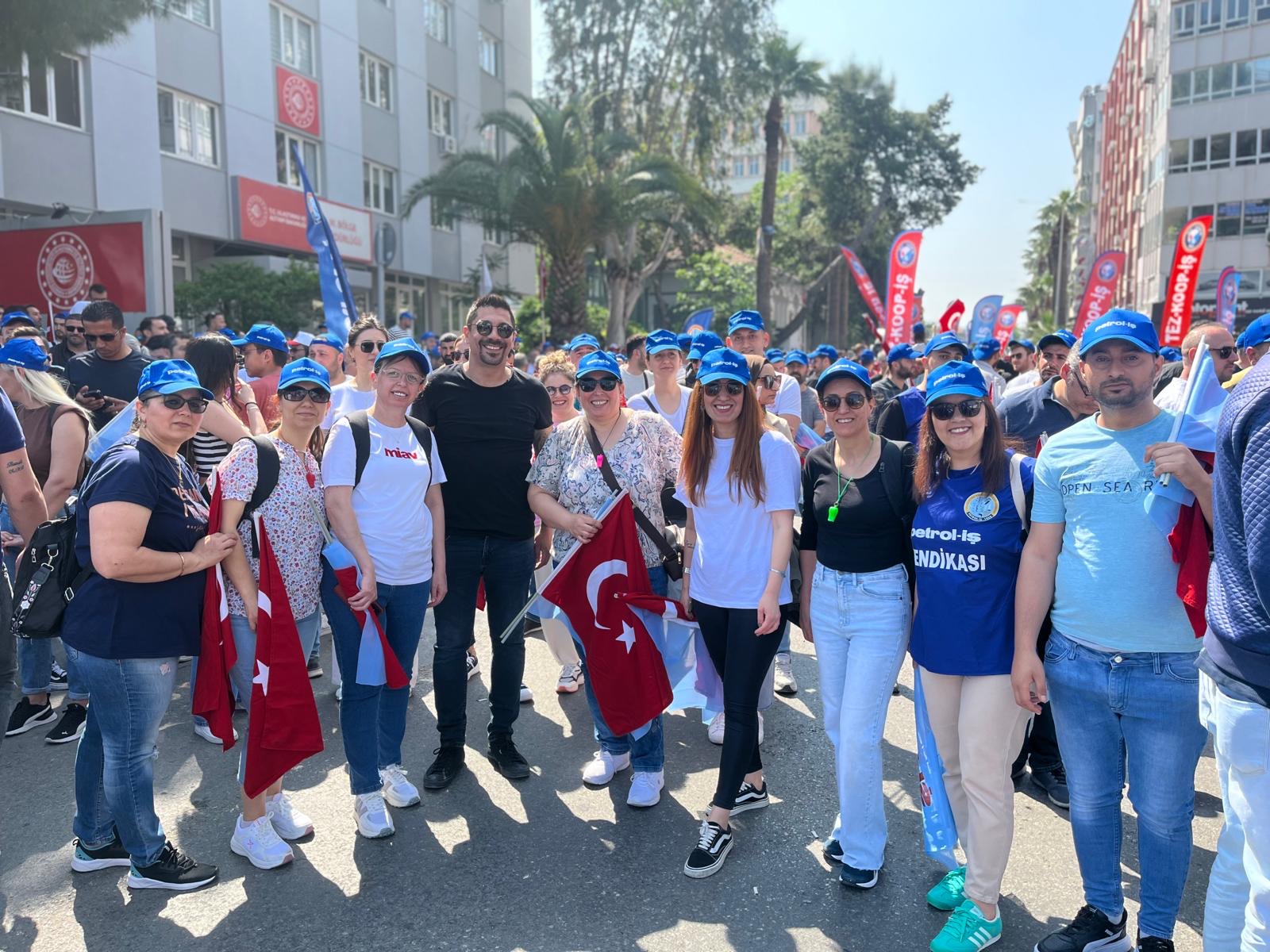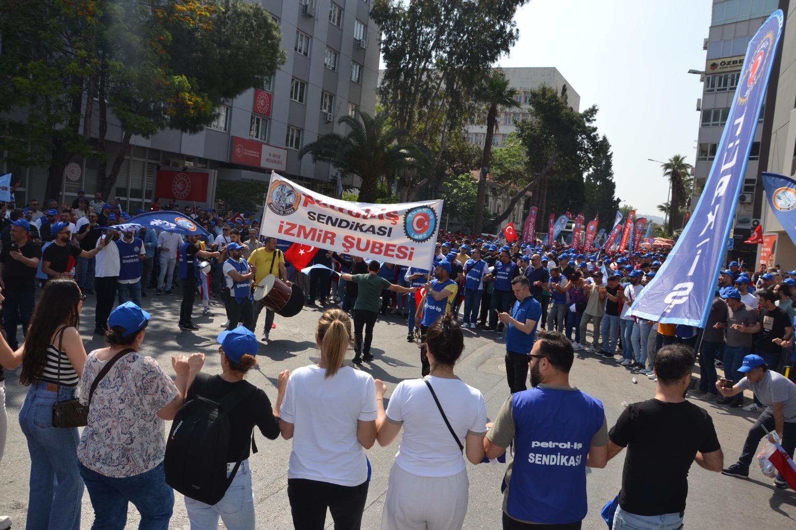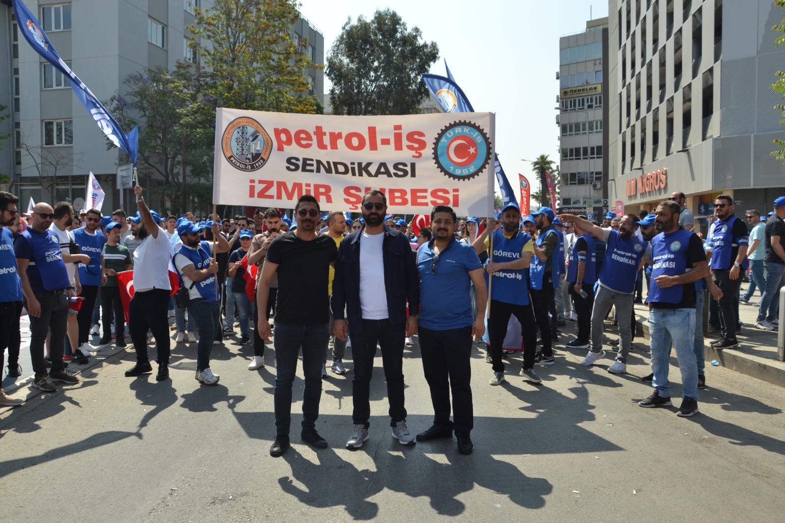 Sendikamız İzmir Şubesi 1 Mayıs İşçilerin Uluslararası Mücadele ve Dayanışma günü için Gündoğdu Meydanı’nda bir araya geldi. 1 Mayıs Tertip Komitesi tarafından organize edilen kutlamaya İzmir Şube Yöneticileri ve şubemizin örgütlü olduğu işyerlerinden üyelerimiz yoğun katılım gösterdiler. iş cinayetlerinin son bulması, vergide adaletin sağlanması ve insanca geçinebilecek bir ücret talep edildi.